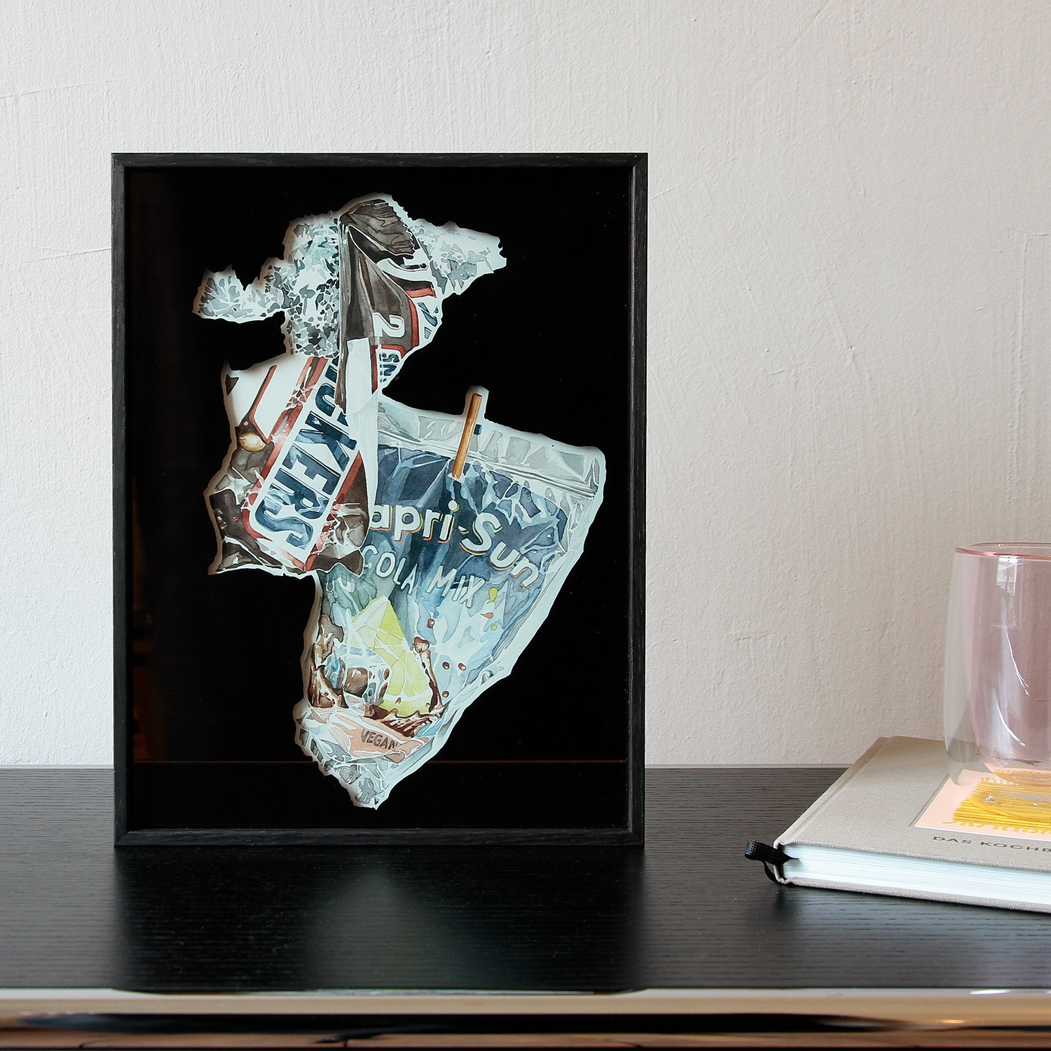 Achim Riethmann Süßigkeiten V, 2020 Material Aquarell auf Papier hinter lackiertem Glas Herstellungsmethode signiert und datiert Auflage 1 Maße 30 x 23 cm UNIKAT inklusive Rahmen Details zum Rahmen Schwarzer Holz-Rahmen, Außenmaße ca 30 x 23 cm Die neue Art, Kunst zu kaufen Handverlesene, exklusive Editionen Limitierte, signierte Auflagen Top-KünstlerInnen und Rising Stars Schnell registrieren, um Preis und Verfügbarkeit zu sehen. Jetzt kostenlos Mitglied werden Bereits Mitglied? Über den Künstler und das Werk Achim Riethmann beeindruckt mit seinen Werken schon auf den ersten Blick: Mithilfe feinster Pinselstriche und kleiner Farbflächen arbeitet der in London geborene Berliner Künstler seine Motive heraus. In ihrer Detailliertheit und ihrer Farbigkeit sind sie bestechend schön. In ihnen deuten sich jedoch Geschichten an, bei denen es nicht nur um diese vordergründige Schönheit geht, in der die Vergänglichkeit schon mitschwingt. Der ehemalige Meisterschüler von Leiko Ikemura zeigt die abgebildeten Gegenstände oder Figuren vor monochromen Hintergründen, oft auch nur unvollständig. Dadurch entstehen Leerstellen, die Raum und Möglichkeiten eröffnen für eigene Assoziationen. Zerknüllte Süßigkeitenverpackungen, eine zertretene Cola-Dose oder – vielleicht weggeworfene – weiße Nelken werden so schnell zum Ausgangspunkt einer imaginierten Erzählung. Verführung und Melancholie liegen hier nah beieinander. Durch den speziellen Spiegeleffekt des um die Motive herum innenseitig schwarz lackierten UV-Glases werden wir sogleich auch visuell ein Teil davon. Es ist das alte Zusammenspiel von Kunst und Betrachter, das hier auf ganz eigene Weise fasziniert. Der mehrfach ausgezeichnete Künstler erhielt u.a. den „Walter-Koschatzky-Kunstpreis“ des Rotary Club Wien-Albertina und den "Losito Kunstpreis" der Losito Kressmann-Zschach Foundation. Achim Riethmann wird von Galerien in Berlin und Hamburg vertreten. Noch bis zum 1. November ist bei der Galerie Russi Klenner in Berlin die Einzelausstellung " Sehnsucht" zu sehen. Ausstellungen (Auswahl) Aktuell sind Werke von Achim Riethmann in der Galerie Russi Klenner in Berlin zu sehen: https://russiklenner.de/exhibitions/achim-riethmann-sehnsucht-2020-09/photos 2020 stellte Achim Riethmann u.a. in der „Aquarell“ betitelten Ausstellung in der Neuen Sächsischen Galerie in Chemnitz aus: https://www.neue-saechsische-galerie.de/details-ausstellungen/aquarell.html 2018 waren Werke von Achim Riethmann in der Ausstellung „Junge Sammlungen 05. What Paradise? – Sammlung Peters-Messer“ im Weserburg Museum in Bremen zu sehen: http://www.museeninbremen.de/junge-sammlungen-05-what-paradise-sammlung-peters-messer/ Lesenswerte Artikel / Links Webseite von Achim Riethmann Künstlerseite bei der Berliner Galerie Russi Klenner Mehr Kunst entdecken Pipilotti Rist Du wirst sorglos sein, 2015 Achim Riethmann Süßigkeiten VI, 2020 Achim Riethmann Im Hof II, 2020