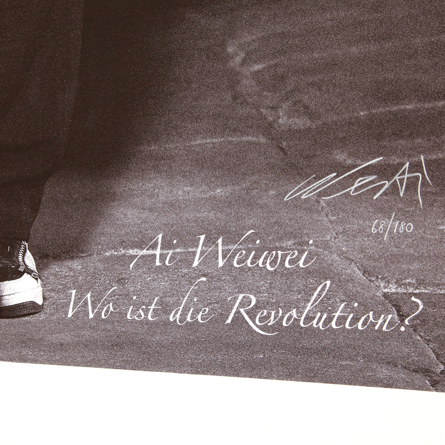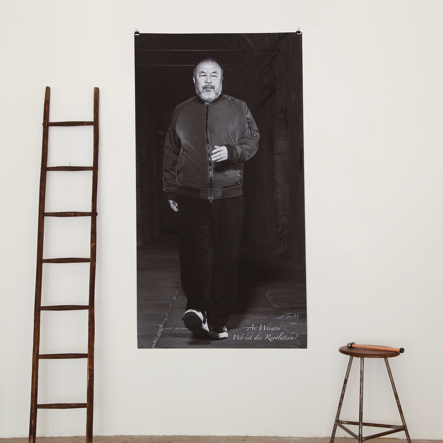 Ai Weiwei Wo ist die Revolution?, 2019 Material Inkjet-Druck auf Canson ipf pro 6000, Canson PJ Posterpapier matt 180 g/m2 Herstellungsmethode Druck: Grieger, Düsseldorf Auflage 180 Maße 190 × 100 cm Auflage 180 + 10 AP vorderseitig handsigniert und nummeriert Die neue Art, Kunst zu kaufen Handverlesene, exklusive Editionen Limitierte, signierte Auflagen Top-KünstlerInnen und Rising Stars Schnell registrieren, um Preis und Verfügbarkeit zu sehen. Jetzt kostenlos Mitglied werden Bereits Mitglied? In den Warenkorb Über die Edition Wir sehen einen Mann in Bewegung: Für seine große Ausstellung in der Kunstsammlung Nordrhein-Westfalen hat Ai Weiwei ein neues fotografisches Selbstporträt geschaffen, in dem er dem Betrachter frontal entgegentritt. Das Zitat von Joseph Beuys’ berühmtes Plakat „La rivoluzione siamo Noi“ von 1971 ist eine große Referenz an den Bruder im Geiste – aber markiert auch die Differenz im politischen Bewußtsein. Während der Beuysche Slogan noch aus dem Selbstbewußtsein arbeitet, dass Kunst revoutionäre Veränderung schaffen kann, speist sich die Frage „Where´s the revolution?“ fast ironisch vom politischen Pragatismus eines von der chinesischen Kultur-Revolution verfolgten Aktivisten. Dem Optimismus des Motivs nimmt das nichts: Dieser Mann ist auf der Suche, er ist unterwegs, was Ai Wei Wei durch sein vielfältiges Werk immer aufs neue beweist. Gleichzeitig ist unsere exclusive Edition des hochwertigen Inkjet-Drucks durch ihre Maße (190x 90) ein humorvoller Kommentar auf seinen Status als Star der Kunstwelt. Ein lebensgroßes Portrait-Poster von Ai Wei Wei – every houshold should have one. Über den Künstler „Ich bin ein Konzeptkünstler ohne Konzept“ – so die verwirrend bescheidene Selbstauskunft von Ai Weiwei, der inzwischen weltweit als einer der einflußreichsten zeitgenössischen Künstler gilt. Der Aktivist, Architekt, Filmregisseur und Fotograf wurde als Sohn des berühmten Dichters und Regimekritikers Ai Qing 1957 in Beijing geboren, wuchs während dessen Verbannung in Nordchina auf, und kehrte erst 1976 mit der Familie nach Beijing zurück. Von seiner Zeit in New York und der dortigen Begegnung mit Konzeptkunst und Pop Art geprägt, wird seine künstlerische Praxis zunehmend von gesellschaftlichen und politischen Themen bestimmt, mit denen Europa und das heutige China gleichermaßen ringen: die Ausbreitung autokratischer Macht, das Verschwinden der chinesischen Kulturgeschichte, die Sorge um Menschenrechte, Flucht und Armut. Sein unerbittlicher Kampf gegen das Regime in China ließen ihn in den letzten Jahren zu einem Pop-Star der Medien und einem Internet-Star werden. Hinter all dem Star-Status um Ai Wie Wei tritt uns jedoch im Werk selbst – nicht nur im Print unserer Edition - ein stiller radikaler Künstler entgegen, dessen Installationen und politische Aktionen bei aller konzeptioneller Durcharbeitung oft erstaunlich zugänglich und immer verblüffend sinnlich sind. Deshalb glauben wir ihm kein Wort, wenn er - wie vor kurzem - behauptet, sein Werk sei nur „ein dummer Bubenstreich.“ Ausstellungen (Auswahl) Ai Weiwei ist weltweit in den größten Kunstsammlungen vertreten. Seine wichtigsten Ausstellung 2024 sind: Ai Weiwei: know thyself. Galerie Neugerriemenschneider, Berlin In Search of Humanity (seine bisher umfassendste Retrospektive), Kunsthal Rotterdam Ai vs AI : 81 Questions for Artificial Intelligence: CIRCA public screenings u.a.: London, Picadilly lights, NYC Times Square, Berlin, Kurfürstendamm Transcending Borders – europäische Kulturhauptstadt Bad Ischl. ab 13.6. – 27.10.24 Mythical creatures: China and the World (Gruppenausstellung) Philadephia Museum of Art 12/23 – 6/25 Lesenswerte Artikel / Links Trailer für das screening „81 days – 81 questions“ Interview zu aktuellen politischen Entwicklungen Interview The Oxford Union Interview in der Süddeutschen Zeitung, 2023 Mehr Kunst entdecken Michael McGrath Lessons from a night god, 2021 Georg Baselitz 45 - Juni, 1990 Bettina Krieg Joy revealed, 2024