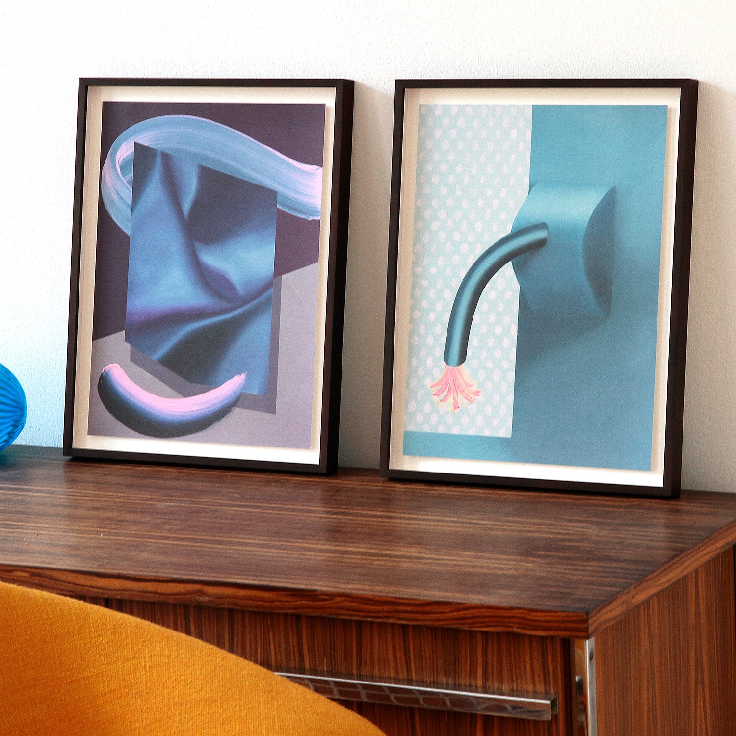 Anna Nero Elvis, 2020 Material Faksimile Print auf Colorplan 270 g Auflage 20 Maße 30 x 40 cm rückseitig signiert, nummeriert und datiert Auflage 20 + 3 ap.p. + 2 p.p. inkl. Publikation Collectors Edition: „Anna Nero. All Things Considered“ Details zum Rahmen Handgefertigter Nussbaum-gebeizter und gewachster Ahorn-Holzrahmen, inkl. 10mm Distanzleiste, hochgestellt montiert, Außenmaße ca. 46 x 36 cm inkl. Museumsglas und rückseitiger Aufhängung, staubdicht verschlossen. Die neue Art, Kunst zu kaufen Handverlesene, exklusive Editionen Limitierte, signierte Auflagen Top-KünstlerInnen und Rising Stars Schnell registrieren, um Preis und Verfügbarkeit zu sehen. Jetzt kostenlos Mitglied werden Bereits Mitglied? Über die Künstlerin und die Edition Es sind merkwürdige Objekte, die uns in den Werken Anna Neros begegnen. Manche erinnern an Dinge, die wir kennen, und doch bleiben es faszinierende Fantasiegebilde. Dass die in Moskau geborene Künstlerin mit Atelier in Frankfurt am Main einen Hang zum Fetischismus hat, ist ihren Bildern anzusehen. Die Beziehung zwischen Menschen und Objekten sieht sie als einen Ursprung der Kunst. „Ich habe keine Lust, nur so formal-ästhetische Wichtigtuer-Malerei zu machen, eine Prise Selbstironie hat noch niemandem geschadet“, meint sie. Titel wie „Jetlag (mit Happy End)“ und „Elvis“ zeugen davon – und bringen noch einmal mehr neue Narrative ins Spiel. Neros Arbeiten wirken durch ihre vermeintliche Dreidimensionalität plastisch, fast dinglich greifbar. Die flächigen, grafischen Hintergründe verankern sie zugleich im Abstrakten. Durch solche Gegensätze und ihre bedeutungsschwangere Rätselhaftigkeit werden wir hineingezogen in diese spannungsgeladene Kunst – beunruhigend wie ein guter Krimi und anregend wie Fantasy. Anna Nero nahm 2019 teil an der viel beachteten Überblicksausstellung „Jetzt! Junge Malerei in Deutschland“, die in den Kunstmuseen von Bonn, Wiesbaden und Chemnitz sowie in den Deichtorhallen Hamburg zu sehen war. Die Künstlerin wird von Galerien in Berlin, Frankfurt am Main und Köln vertreten. Text: Cara Wuchold Ausstellungen (Auswahl) Werke von Anna Nero waren bis vor Kurzem in der Ausstellung „Identität“ im Jewish Community Center Frankfurt am Main zu sehen. Ihre jüngste Einzelausstellung fand unter dem Titel „Res Extensa“ in der Galerie Schierke Seinecke ebenfalls in Frankfurt statt. Die Gruppenausstellung „Jetzt! Junge Malerei in Deutschland“ 2019/20 war ein Gemeinschaftsprojekt des Kunstmuseums Bonn, des Museums Wiesbaden sowie der Kunstsammlungen Chemnitz und wechselte anschließend an die Hamburger Deichtorhallen. Lesenswerte Artikel / Links Webseite von Anna Nero Interview mit Anna Nero bei „Studio Talks“ Mehr Kunst entdecken Anna Nero Jetlag (mit Happy End), 2020 Bianca Kennedy Serie "Portraits of Taking a Bath in Movies": Tystnaden, 2017 Bianca Kennedy Serie "Portraits of Taking a Bath in Movies": Une Colonie, 2021