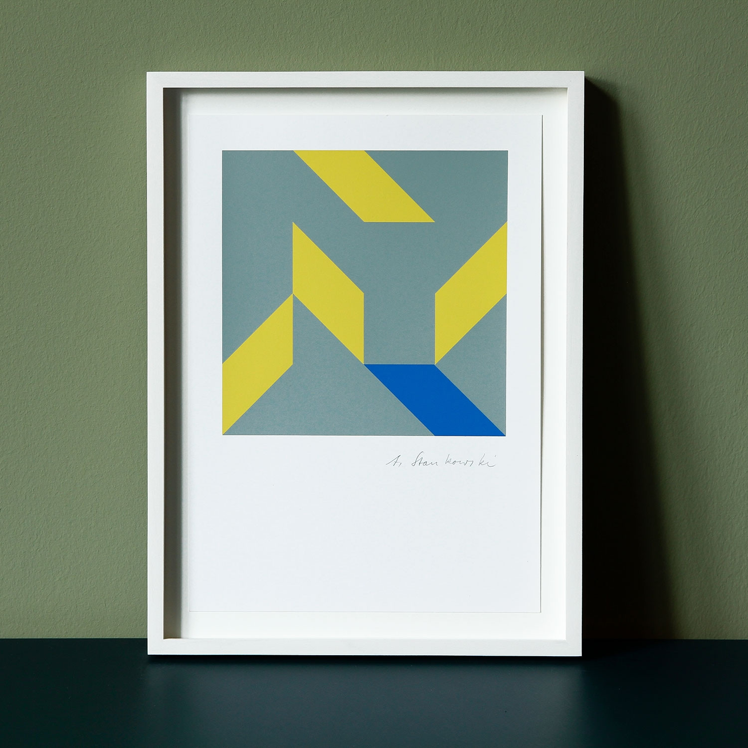 Anton Stankowski Ohne Titel, 1980 Material Farbserigraphie auf Karton Herstellungsmethode signiert Edition Stankowski + Duschek, Grafisches Atelier, Stuttgart Auflage 10 Maße 29,8 x 21 cm Details zum Rahmen Großer, handgefertigter lasierter Rahmen aus Ahornholz, mit 10 mm Distanzleiste. Außenmaße ca. 25,7 x 34,4., inkl. Museumsglas und Rückseitiger Hängeleiste, staubdicht verschlossen. Die neue Art, Kunst zu kaufen Handverlesene, exklusive Editionen Limitierte, signierte Auflagen Top-KünstlerInnen und Rising Stars Schnell registrieren, um Preis und Verfügbarkeit zu sehen. Jetzt kostenlos Mitglied werden Bereits Mitglied? Über die Edition Ein Quadrat – oder doch keines? Vier Farben oder doch viel mehr? Die Formensprache in dieser Edition ist klar, denkbar einfach. Und doch sieht man zweimal, dreimal hin, um die Grafik zu erfassen. Anton Stankowski gelingt es wie kaum einem anderen, die Wirkung von Farbe, Strich und Form bewusst einzusetzen und mit minimalen Mitteln ein kraftvolles Bild zu erschaffen. Und so wie in der Sprache ein Wort erst durch seine Stellung, grammatikalische Form und im Kontext mit anderen Wörtern Sinn ergibt, so erschließt sich in Stankowskis Kunst die Bedeutung eines Bildelements erst aus der Ordnung des ganzen Werks. Es waren vor allem die Jahre zwischen den beiden Weltkriegen, in denen sich – neben Stilrichtungen wie dem Surrealismus, der Neuen Sachlichkeit, dem Spätimpressionismus – das Interesse vieler Künstler, so auch Stankowskis, auf diese Satzlehre der Bildsprache richtete. Die Edition steht beispielhaft für Stankowskis konstruktivistischen Ansatz, bei dem er nicht zwischen Gestaltung oder Werbung und freier Bildkunst unterschied: Er gewann seine Konzepte aus der Grenzzone, in der Design und freie Kunst ineinander übergehen ‒ und damit gab er dem Bild neben einem ästhetischen oft auch einen praktischen Sinn. Über den Künstler Das Logo der Deutschen Bank kennt man auf der ganzen Welt, die Verbindung aus Schrägstrich und Quadrat ist längst zu einem der Symbole des westlichen Kapitalismus geworden. Aber kaum einer kennt den Namen, der dahintersteht: Anton Stankowski (geb. 1906 in Gelsenkirchen, gest. 1998 in Esslingen) war einer der Wegbereiter auf dem Gebiet des Grafikdesigns, aber auch Maler, Zeichner, Funktionsgrafiker und unermüdlicher Ideenfinder. Die Grenze zwischen freier und angewandter Arbeit galt weder für sein Selbstverständnis noch für die Rezeption seiner Entwürfe. Der gelernte Dekorations- und Kirchenmaler studierte Grafik, Typografie sowie Fotografie an der Folkwangschule in Essen und vollendete in Zürich seine „Gestaltungslehre“, die bereits die grundlegenden Ausdrucksformen seiner Arbeiten enthielt. Nach einer dunklen Zeit als Soldat und Kriegsgefangener begann er nach 1948 neu als Schriftleiter, Grafiker und Fotograf für die „Stuttgarter Illustrierte“. Vor Ort war er einer der Köpfe in einem illustren Freundeskreis, zu dem auch Willi Baumeister, Max Bense, Egon Eiermann, Mia Seeger und Walter Cantz gehörten. Ab Mitte der 1970er Jahre wandte er sich schließlich mehr und mehr der bildenden Kunst zu und schuf konstruktiv-konkrete Gemälde und Objekte. Seine Erfahrungen als Grafikdesigner befruchteten seine Arbeiten als Maler und Bildhauer und umgekehrt. Dabei schwang immer auch eine Ahnung von Revolution in seinem Werk mit: Stankowski war geprägt von den Ideen des Konstruktivismus und der russischen Avantgarde. Er hat für unzählige Unternehmen einprägsame Logos und visuelle IDs entworfen, neben der Deutschen Bank etwa für Viessmann, Iduna oder SEL. Weniger bekannt ist, dass er zu den Pionieren der Fotografie gehört und als „konkreter“ Künstler ein beachtenswertes Œuvre geschaffen hat. Ausstellungen (Auswahl) 2010 Ob Kunst oder Design ist egal – nur gut muss es sein. Der Kreis um Anton Stankowski, Kunstmuseum Gelsenkirchen, Museum Wiesbaden, Kunsthalle Göppingen 2006/2007 Stankowski 06 – Aspekte des Gesamtwerks, Staatsgalerie Stuttgart, Haus Konstruktiv Zürich, Museum Quadrat Bottrop, Neues Museum Weserburg Bremen, IDZ Berlin 1991 Ausstellung Gemälde 1927–1981 Galerie der Stadt Stuttgart 1986 Retrospektive Anton Stankowski, Orangerie Kassel 1983 Funktionelles Grafik-Design, Deutsches Plakatmuseum, Essen 1974 Art 5 '74 Basel, Schweiz 1973 Funktionelle Grafik und Serigrafien, Kunstgewerbemuseum Zürich, 1964 documenta III, Kassel 1962/63 Documentation of Graphic Art Works of Anton Stankowski, USA und Canada 1958 Anton Stankowski, London Lesenswerte Artikel / Links Stankowski bei TEXTEM Stankowski Deutsche Bank Logo Ein Gespräch über Stankowski Mehr Kunst entdecken Rosemarie Trockel Ohne Titel, 1995 Lothar Quinte Ohne Titel, 1963