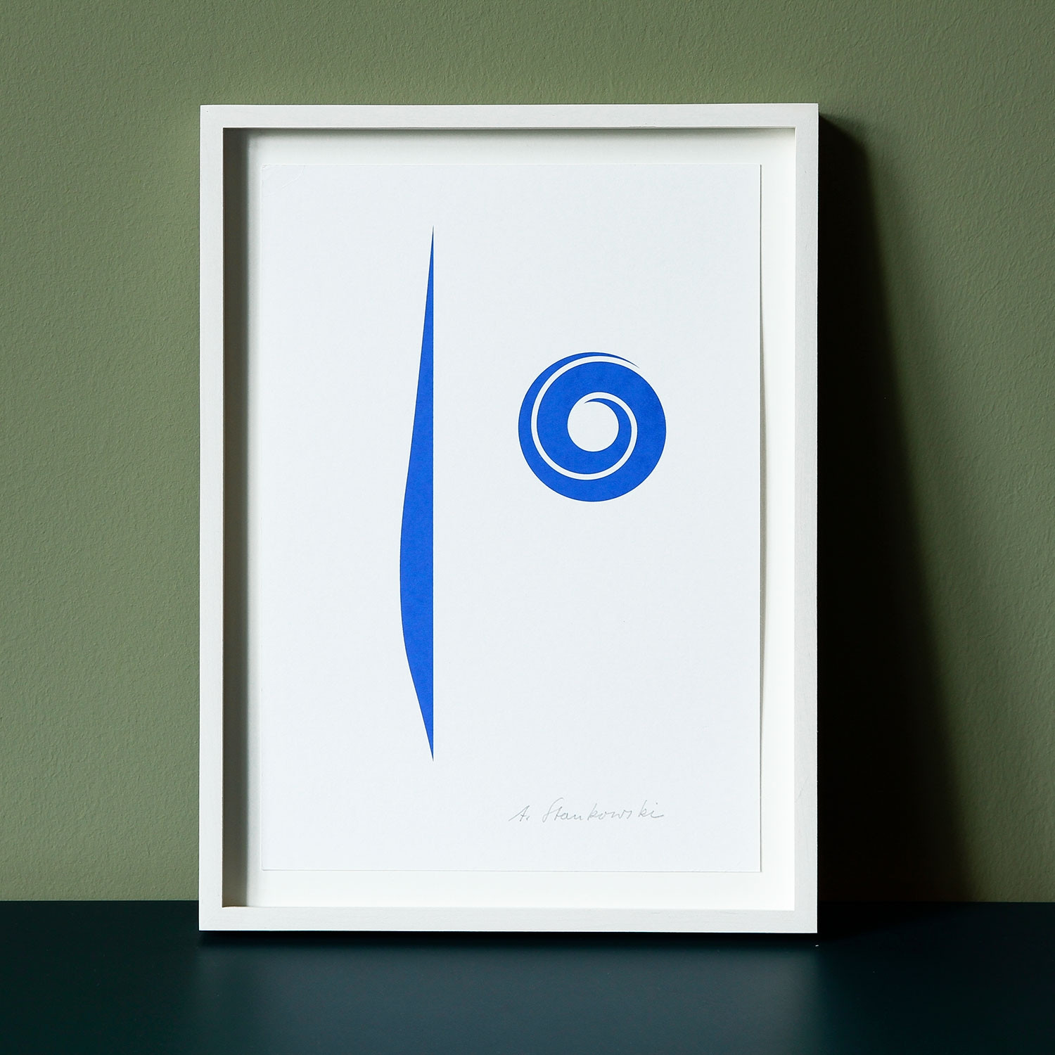 Anton Stankowski Ohne Titel, 1980 Material Farbserigraphie auf Karton Herstellungsmethode signiert Edition Stankowski + Duschek, Grafisches Atelier, Stuttgart Auflage 10 Maße 29,8 x 21 cm Details zum Rahmen Großer, handgefertigter lasierter Rahmen aus Ahornholz, mit 10 mm Distanzleiste. Außenmaße ca. 25,7 x 34,4., inkl. Museumsglas und Rückseitiger Hängeleiste, staubdicht verschlossen. Die neue Art, Kunst zu kaufen Handverlesene, exklusive Editionen Limitierte, signierte Auflagen Top-KünstlerInnen und Rising Stars Schnell registrieren, um Preis und Verfügbarkeit zu sehen. Jetzt kostenlos Mitglied werden Bereits Mitglied? Über die Edition Ein Quadrat – oder doch keines? Vier Farben oder doch viel mehr? Die Formensprache in dieser Edition ist klar, denkbar einfach. Und doch sieht man zweimal, dreimal hin, um die Grafik zu erfassen. Anton Stankowski gelingt es wie kaum einem anderen, die Wirkung von Farbe, Strich und Form bewusst einzusetzen und mit minimalen Mitteln ein kraftvolles Bild zu erschaffen. Und so wie in der Sprache ein Wort erst durch seine Stellung, grammatikalische Form und im Kontext mit anderen Wörtern Sinn ergibt, so erschließt sich in Stankowskis Kunst die Bedeutung eines Bildelements erst aus der Ordnung des ganzen Werks. Es waren vor allem die Jahre zwischen den beiden Weltkriegen, in denen sich – neben Stilrichtungen wie dem Surrealismus, der Neuen Sachlichkeit, dem Spätimpressionismus – das Interesse vieler Künstler, so auch Stankowskis, auf diese Satzlehre der Bildsprache richtete. Die Edition steht beispielhaft für Stankowskis konstruktivistischen Ansatz, bei dem er nicht zwischen Gestaltung oder Werbung und freier Bildkunst unterschied: Er gewann seine Konzepte aus der Grenzzone, in der Design und freie Kunst ineinander übergehen ‒ und damit gab er dem Bild neben einem ästhetischen oft auch einen praktischen Sinn. Über den Künstler Das Logo der Deutschen Bank kennt man auf der ganzen Welt, die Verbindung aus Schrägstrich und Quadrat ist längst zu einem der Symbole des westlichen Kapitalismus geworden. Aber kaum einer kennt den Namen, der dahintersteht: Anton Stankowski (geb. 1906 in Gelsenkirchen, gest. 1998 in Esslingen) war einer der Wegbereiter auf dem Gebiet des Grafikdesigns, aber auch Maler, Zeichner, Funktionsgrafiker und unermüdlicher Ideenfinder. Die Grenze zwischen freier und angewandter Arbeit galt weder für sein Selbstverständnis noch für die Rezeption seiner Entwürfe. Der gelernte Dekorations- und Kirchenmaler studierte Grafik, Typografie sowie Fotografie an der Folkwangschule in Essen und vollendete in Zürich seine „Gestaltungslehre“, die bereits die grundlegenden Ausdrucksformen seiner Arbeiten enthielt. Nach einer dunklen Zeit als Soldat und Kriegsgefangener begann er nach 1948 neu als Schriftleiter, Grafiker und Fotograf für die „Stuttgarter Illustrierte“. Vor Ort war er einer der Köpfe in einem illustren Freundeskreis, zu dem auch Willi Baumeister, Max Bense, Egon Eiermann, Mia Seeger und Walter Cantz gehörten. Ab Mitte der 1970er Jahre wandte er sich schließlich mehr und mehr der bildenden Kunst zu und schuf konstruktiv-konkrete Gemälde und Objekte. Seine Erfahrungen als Grafikdesigner befruchteten seine Arbeiten als Maler und Bildhauer und umgekehrt. Dabei schwang immer auch eine Ahnung von Revolution in seinem Werk mit: Stankowski war geprägt von den Ideen des Konstruktivismus und der russischen Avantgarde. Er hat für unzählige Unternehmen einprägsame Logos und visuelle IDs entworfen, neben der Deutschen Bank etwa für Viessmann, Iduna oder SEL. Weniger bekannt ist, dass er zu den Pionieren der Fotografie gehört und als „konkreter“ Künstler ein beachtenswertes Œuvre geschaffen hat. Ausstellungen (Auswahl) 2010 Ob Kunst oder Design ist egal – nur gut muss es sein. Der Kreis um Anton Stankowski, Kunstmuseum Gelsenkirchen, Museum Wiesbaden, Kunsthalle Göppingen 2006/2007 Stankowski 06 – Aspekte des Gesamtwerks, Staatsgalerie Stuttgart, Haus Konstruktiv Zürich, Museum Quadrat Bottrop, Neues Museum Weserburg Bremen, IDZ Berlin 1991 Ausstellung Gemälde 1927–1981 Galerie der Stadt Stuttgart 1986 Retrospektive Anton Stankowski, Orangerie Kassel 1983 Funktionelles Grafik-Design, Deutsches Plakatmuseum, Essen 1974 Art 5 '74 Basel, Schweiz 1973 Funktionelle Grafik und Serigrafien, Kunstgewerbemuseum Zürich, 1964 documenta III, Kassel 1962/63 Documentation of Graphic Art Works of Anton Stankowski, USA und Canada 1958 Anton Stankowski, London Lesenswerte Artikel / Links Stankowski bei TEXTEM Stankowski Deutsche Bank Logo Ein Gespräch über Stankowski Mehr Kunst entdecken Rosemarie Trockel Ohne Titel, 1995 Lothar Quinte Ohne Titel, 1963 Anton Stankowski Ohne Titel, 1980