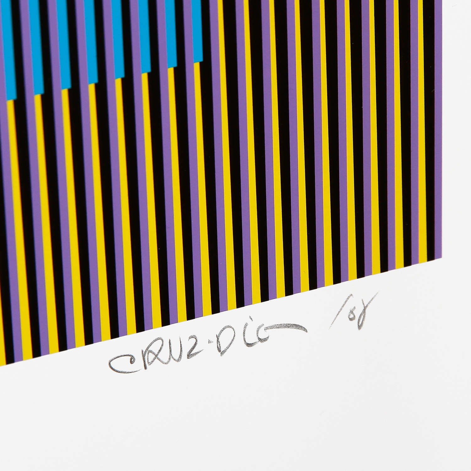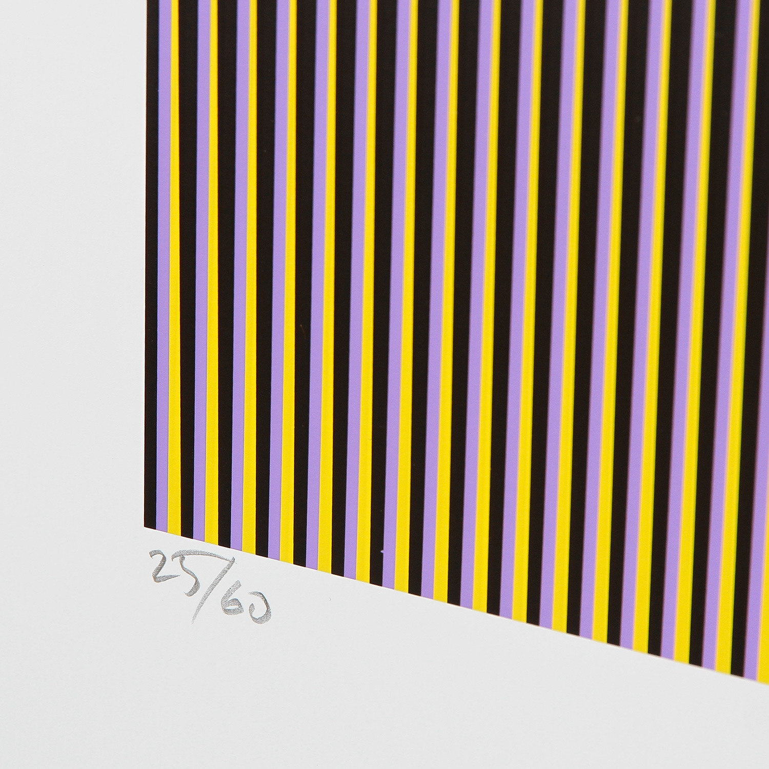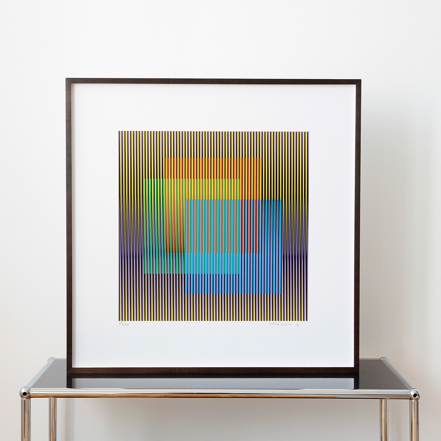 Carlos Cruz-Diez Couleur Additive 2, 2008 Material Serigrafie Auflage 60 Maße 40 x 40 cm auf 60 x 60 cm Auflage 60 Auf der Vorderseite signiert, datiert und nummeriert Details zum Rahmen Handgefertigter, gewachster Ahorn-Holzrahmen, inkl. 10mm Distanzleiste und Museumsglas, Außenmaße: ca. 61,6 x 61,6 cm, inkl. rückseitiger Aufhängung Die neue Art, Kunst zu kaufen Handverlesene, exklusive Editionen Limitierte, signierte Auflagen Top-KünstlerInnen und Rising Stars Schnell registrieren, um Preis und Verfügbarkeit zu sehen. Jetzt kostenlos Mitglied werden Bereits Mitglied? Über den Künstler und die Edition „I am 94. I am a man of my time, I am not of the past.“ Das sagte Carlos Cruz-Diez (1923‒2019), Pionier der kinetischen, auf Beweglichkeit bzw. Bewegung beruhenden Kunst, noch im hohen Alter – und sein Schaffen zeugt davon. Schon in der Kunsthochschule fragte sich Cruz-Diez, der in der Folge einer der prominentesten lateinamerikanischen Künstler der jüngeren Moderne werden sollte, warum alle mit denselben Materialien arbeiteten. Er selbst wollte weg von der traditionellen Malerei. Während diese „eine Erinnerung“ repräsentierten, hoffte er darauf, in seinen Werken „die Gegenwart“ zu zeigen. Carlos Cruz-Diez feierte die Farbe und machte sich stets aufs Neue auf die Suche nach Entdeckungen. Seine Serie „Couleur Additive“ beruht auf dem Phänomen, dass sich durch Überlagerungen zweier Farben die Illusion einer dritten ergibt. Seine Kunst verändert sich mit der wechselnden Perspektive des Betrachters und rückt so tatsächlich den Moment ins Zentrum. Werke von Cruz-Diez befinden sich heute weltweit in wichtigen Museumssammlungen wie dem Museum of Modern Art (MoMA) in New York, der Tate Modern in London, dem Centre Pompidou in Paris, dem Wallraf-Richartz-Museum in Köln und der Pinakothek der Moderne in München. Ausstellungen (Auswahl) Bis Anfang Februar 2020 waren Werke von Carlos Cruz-Diez in der Ausstellung „Sur Moderno. Journeys of Abstraction“ im Museum of Modern Art (MoMA) in New York zu sehen. Für 2020 und 2021 sind Ausstellungen mit Arbeiten von ihm im Cleveland Museum of Art in Ohio, im Denver Art Museum sowie im Kunstmuseum Bern und dem Zentrum Paul Klee geplant: http://www.cruz-diez.com/exhibitions/upcoming/ Cruz-Diez gestaltete den Pavillon seines Heimatlandes Venezuela auf der XXXV. Biennale in Venedig im Jahr 1970. 1965 nahm er an der Schau „The Responsive Eye“ im MoMA in New York teil, neben Künstler*innen wie Enrico Castellani, Ellsworth Kelly und Gego – die Schau gilt als erste Blockbuster-Museumsausstellung überhaupt. Lesenswerte Artikel / Links Webseite über Carlos Cruz-Diez und sein Werk Video-Porträt von Carlos Cruz-Diez (2017) Nachruf in „The Guardian“ (2019) Mehr Kunst entdecken Christiane Wöhler Möwenmädchen, 2013 Karl Otto Götz Silph, 1999 Carlos Cruz-Diez Couleur Additive 1, 2008