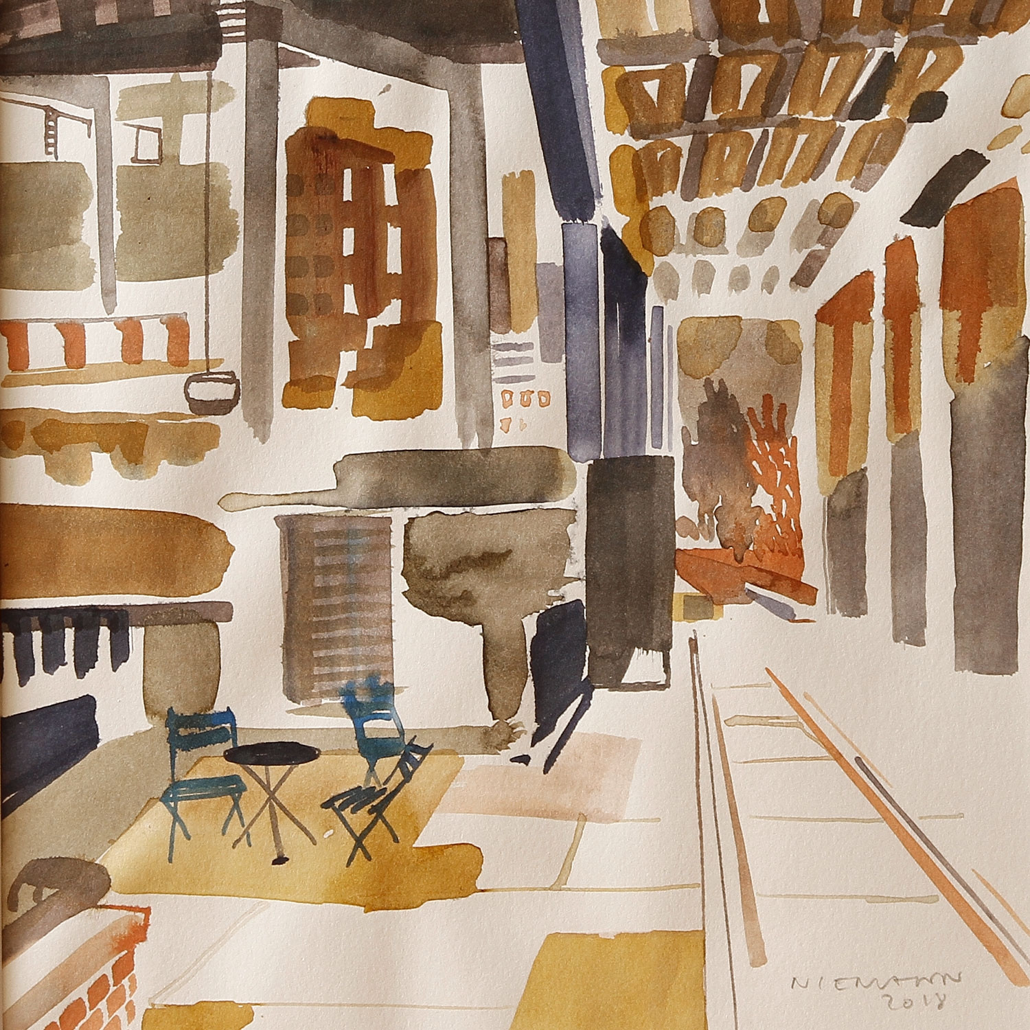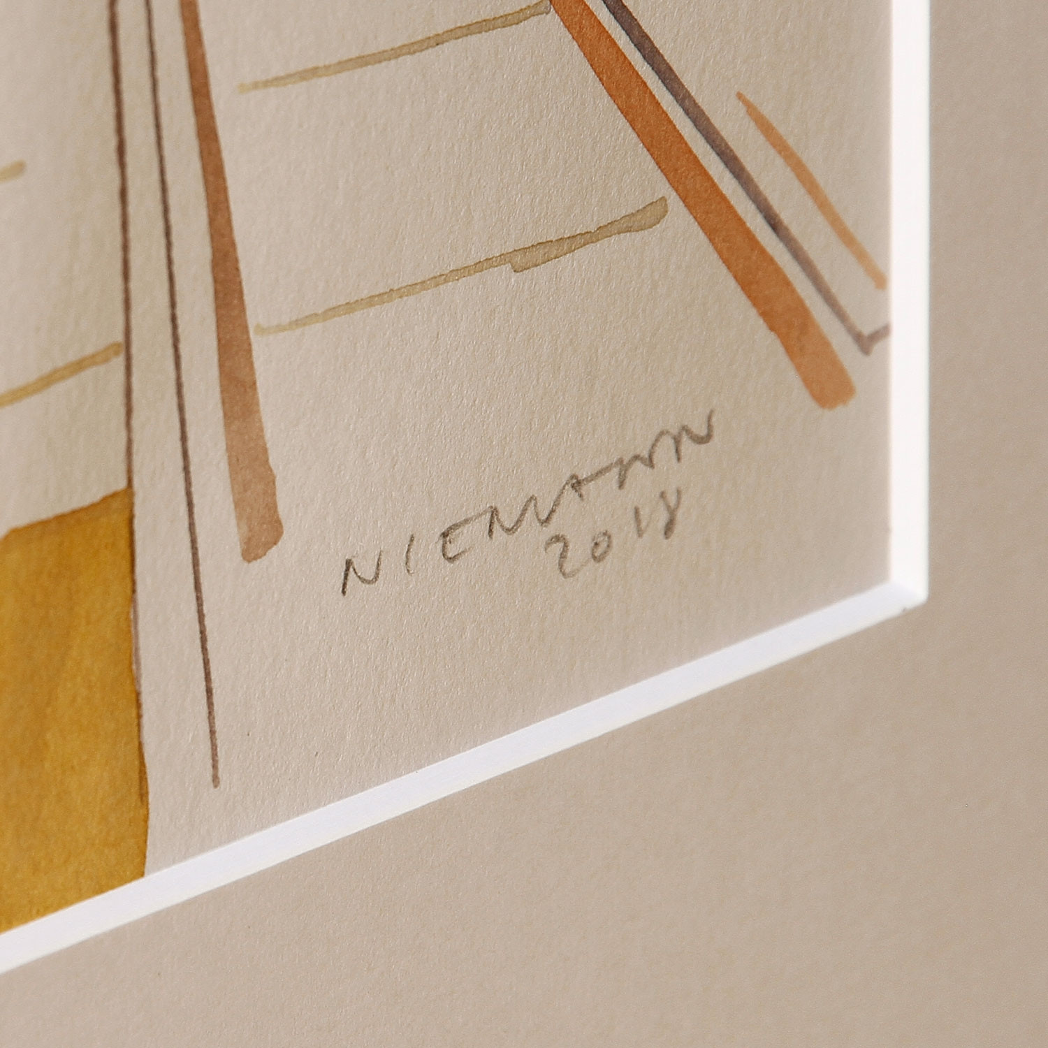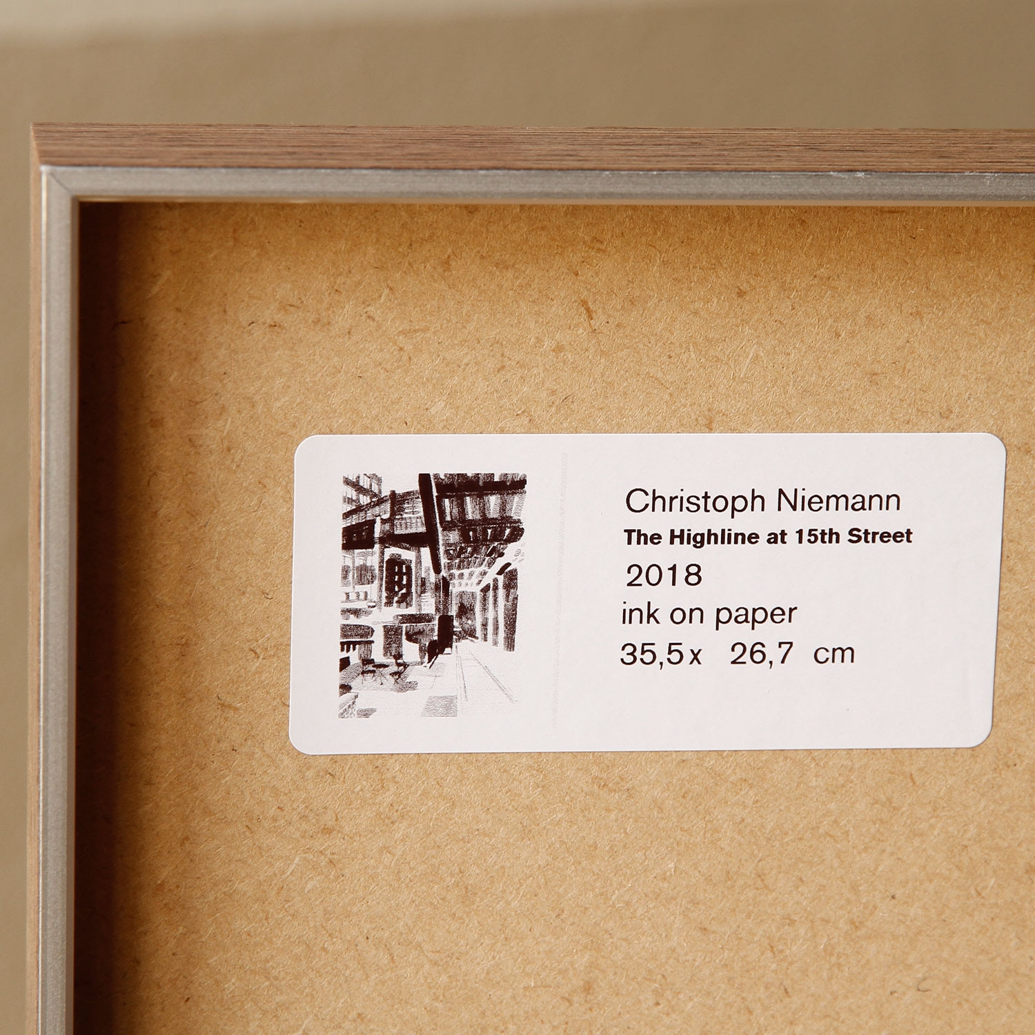 Christoph Niemann The Highline at 15th Street (Unikat, Tusche auf Papier), 2018 Material Tusche auf Papier Herstellungsmethode handsigniert und datiert Auflage 1 Maße 35,5 x 26,7 cm UNIKAT Details zum Rahmen Nielsen Alpha Aluminium Wechselrahmen mit Furnier in Wengé hell in 50 x 40 cm, inkl. Passepartout Die neue Art, Kunst zu kaufen Handverlesene, exklusive Editionen Limitierte, signierte Auflagen Top-KünstlerInnen und Rising Stars Schnell registrieren, um Preis und Verfügbarkeit zu sehen. Jetzt kostenlos Mitglied werden Bereits Mitglied? Über das Werk Christoph Niemanns Tusche-Arbeit „The Highline at 15th Street“ entstammt seiner New Yorker Bilderreihe – und zeigt die ehemalige Güterzugtrasse, die sich heute begrünt als Park durch die Metropole zieht. Genauso verdichtet wie einladend wirkt seine ehemalige Wahlheimat hier. Mit zielsicher gesetzten und der Kraft des Weißraums vertrauenden Pinselstrichen skizziert Niemann eine Großstadtszene, in der jeden Moment das pulsierende Leben New Yorks Einzug erhalten könnte. Über den Künstler Das Wort Kreativität muss für Menschen wie Christoph Niemann erfunden worden sein, schaut man auf die Fülle seiner Ideen. Die Arbeiten des in New York wie Berlin gefeierten Illustrators sind genauso schlicht wie genial: Wenn ein Mohnbrötchen in Niemann´s Zeichnungen zum Dreitagebart mutiert, Bananen zu Hinterflanken eines Pferdes oder Eddings zu gestiefelten Beinen werden, nicken und schmunzeln wir zustimmend. Aber selber drauf gekommen wären wir nie! Seit acht Jahren postet Niemann, der visuelle Geschichtenerzähler, in seinem Sonntags-Blog „Abstract Sunday“ - früher „Abstract City“ - in der New York Times seine erfindungsreichen und humorvollen alltäglichen Beobachtungen. „The New York Times Magazine“, „Wired“, „The New Yorker“, das Museum of Modern Art – seine renommierten New Yorker Auftraggeber beliefert der Illustrator Christoph Niemann auch noch nach seinem Umzug von der US-Metropole nach Berlin. Doch mittlerweile nimmt die freie künstlerische Arbeit einen immer größeren Stellenwert im Werk des deutschen Zeichners ein. 2010 in die Hall of Fame des Art Directors Club aufgenommen, hängen viele seiner Arbeiten mittlerweile in Museen, zuletzt im Museum für angewandte Kunst in Wien. Das Museum of Art and Design in Hamburg zeigte 2016 ebenfalls eine Soloschau. Ausstellungen (Auswahl) 2019 Schloss Bonndorf, Bonndorf 2019 Literaturhaus, München 2018/19 Deutsche Oper, Berlin 2018 ZieherSmith Gallery, New York 2017 Galerie Max Hetzler, Berlin 2017 Galerie Stihl, Waiblingen 2017 Galerie Stihl, Waiblingen 2017 Cartoon Museum, Basel 2017 Colette, Paris 2016 Museum for Art and Design (MKG) Hamburg 2015 Museum of Applied Arts (MAK) Vienna 2015 Galerie Max Hetzler Berlin 2014 Museum Für Konkrete Kunst Ingolstadt 2014 Mercator Institute, Berlin 2013 Galerie Max Hetzler, Berlin 2013 Galerie der Stadt Backnang, Backnang, Germany 2010 NLB Galerija, Ljubljana, Slovenia 2005 Gallery Nine, New York Times, NY 2000 Galerie Le Lys, Paris Lesenswerte Artikel / Links Webseite von Christoph Niemann Die Mauer für den Wannsee Bahnhof Christoph Niemann im TED Talk Christoph Niemanns Reisen für National Geographic zum Nordpol, zum Mekong und nach Kambodscha Portfolio von Christoph Niemann bei The New Yorker Christoph Niemanns Blog „Abstract Sunday“ für die „New York Times“ Mehr Kunst entdecken Sebastian Nebe Bungalow (Unikat), 2019 Nadine Wölk Nightlife III. 11 (Unikat), 2019 Laura Bruce From the Blood Meridian Series "Snowblind Horses" (Unikat), 2019