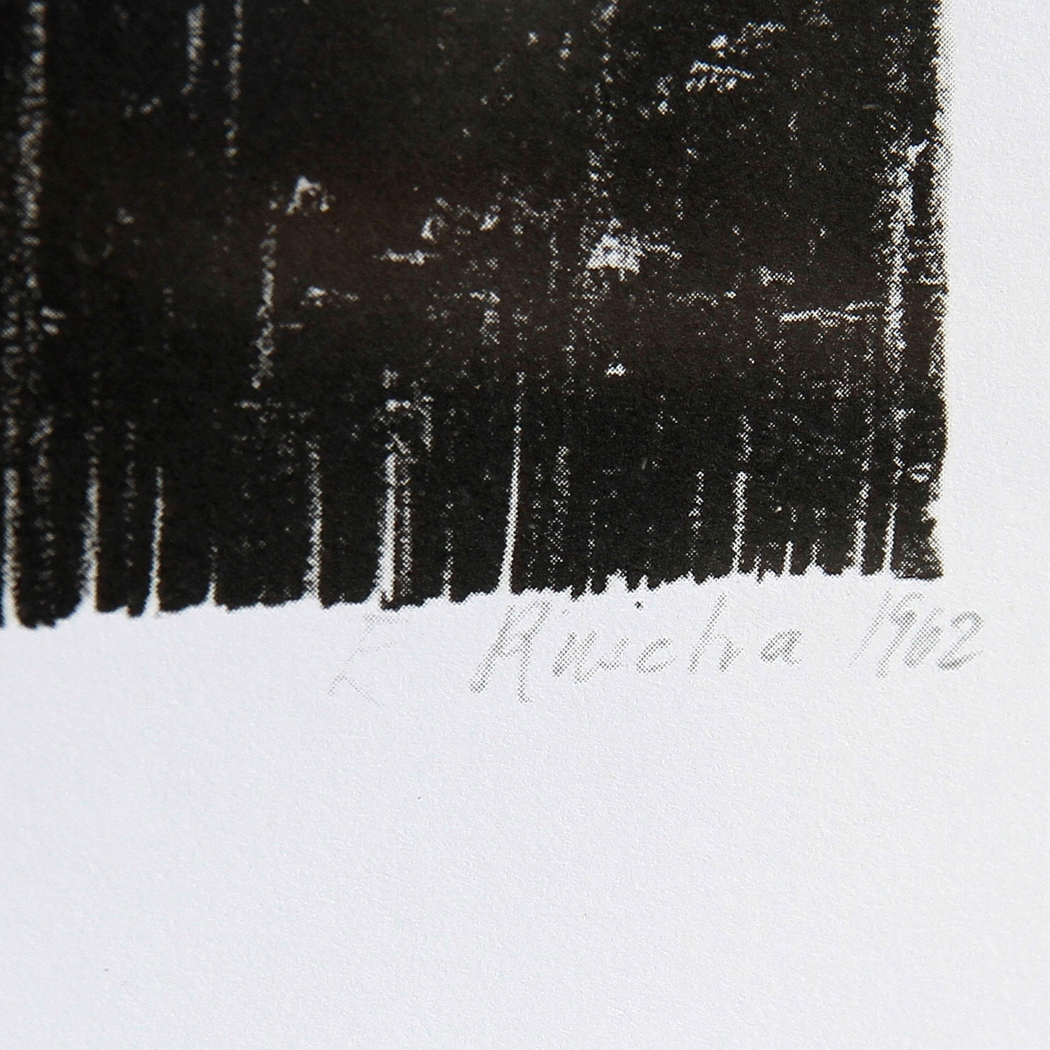 Ed Ruscha "GAS: EARLY GRAPHIK WORK 1960-1977: Exhibition Announcement Card.", 2008 Material Print auf starkem weißen Karton Herstellungsmethode Griffin, Santa Monica (2008), Einladungskarte für die Ausstellung, die vom 26. Januar bis 15. März 2008 stattfand Auflage 1 Maße 21,5 x 27,8 cm Details zum Rahmen Handgefertigter schwarz gebeizter Ahorn-Holzrahmen, gewachst, 15mm Distanzleiste, Außenmaße des Rahmens ca. 28,5 x 34,7 cm. Inkl. rückseitiger Hängeleiste zum einfachen Aufhängen, staubdicht verschlossen. Die neue Art, Kunst zu kaufen Handverlesene, exklusive Editionen Limitierte, signierte Auflagen Top-KünstlerInnen und Rising Stars Schnell registrieren, um Preis und Verfügbarkeit zu sehen. Jetzt kostenlos Mitglied werden Bereits Mitglied? Über die Edition „I always had a dark outlook about the idea of gasoline powered engines. … And I felt like we're moving away from this kind of cars.“ Das sagte Ed Ruscha vor Kurzem bei einem Talk in der Tate Modern in London im Rückblick auf eines seiner Werke aus dem Jahr 1993: „An Exhibition of Gasoline Powered Engines“ steht da in großen Lettern – laut Ruscha ein „future painting“, dass diese Technik schon damals musealisierte. Seine düsteren Ahnungen hielten ihn allerdings nicht davon ab, die Gasoline Stations schon früh in den Kosmos seiner Kunst aufzunehmen. Der amerikanische Pop-Art-Künstler wurde von Beginn an gefeiert für seinen untrüglichen Blick auf die Lebenswelt, vor allem der 1950er- und 1960er-Jahre, in den USA. Er integrierte die Phänomene der Massenkultur, spielte mit Schriftzügen von Reklametafeln und der Ästhetik des Films. Das ist auch abzulesen an der Reproduktion seiner Lithografie „Gas“ aus dem Jahr 1962 auf der Vorderseite der Edition „GAS: EARLY GRAPHIK WORK 1960‒1977: Exhibition Announcement Card“ – ein eindrucksvolles Beispiel seines Gespürs für die Schönheit, die in den Banalitäten des Alltags verborgen liegt. Über den Künstler Ed Ruscha ist ein Wegbereiter der amerikanischen Konzeptkunst, er beeinflusste Künstlerkollegen wie Bruce Nauman oder Lawrence Weiner. Der 1937 in Omaha (NE) geborene US-Amerikaner begann seine Karriere als Grafiker. Heute ist er berühmt für seine Malerei, Druckgrafik und Fotografie, seine Filme und Künstlerbücher. 1963 veröffentlichte Ruscha mit „Twentysix Gasoline Stations“ das erste von insgesamt 16 Künstlerbüchern. Streng dokumentarisch fotografierte er hier in Schwarz-Weiß die amerikanische Landschaft. Das Motiv der Tankstelle, die sich in unterschiedlichsten Formen entlang der Route 66 zwischen Los Angeles und Oklahoma City findet, zieht sich konsequent durch das gesamte Fotobuch, vereint Pop-Art und Konzeptkunst. Auch Ruschas frühe Malerei wird der Pop-Art zugeschrieben. Er lebt und arbeitet in Los Angeles, seit 1993 wird er von der renommierten Gagosian Gallery in New York vertreten. 2005 repräsentierte er mit einer Installation aus zehn Malereien die USA auf der 51. Biennale von Venedig. 2018 zeigte die National Gallery in London die Ausstellung „Ed Ruscha. Course of Empire“. Ausstellungen (Auswahl) 2018, Ed Ruscha. Double Americanisms, Secession, Wien 2018, Ed Ruscha. Gumbo of Gravel, Lora Reynolds Gallery, Austin (TX) 2018, Ed Ruscha. Archaeology and Romance, Harry Ransom Center, The University of Texas at Austin, Austin (TX) 2018, Ed Ruscha. VERY, KODE ‒ Art Museums and Composer Homes, Bergen; Louisiana Museum of Modern Art, Humlebæk 2018, Word/Play. Prints, Photographs, and Paintings by Ed Ruscha, Joslyn Art Museum, Omaha (NE) 2018, Ed Ruscha. Course of Empire, The National Gallery, London Lesenswerte Artikel / Links Website des Künstlers Ed Ruscha bei Gagosian Gallery, New York Interview mit Ed Ruscha im „Guardian‟ EKünstler-Talk mit Ed Ruscha in der Londoner Tate Modern (2019): Mehr Kunst entdecken Jenny Holzer Selection from Living 1980–82, 1999 Lawrence Weiner A & The as an A in a Whirl, 2008 Joseph Beuys Surrender II, 1977 Jack Pierson Ohne Titel, 2008