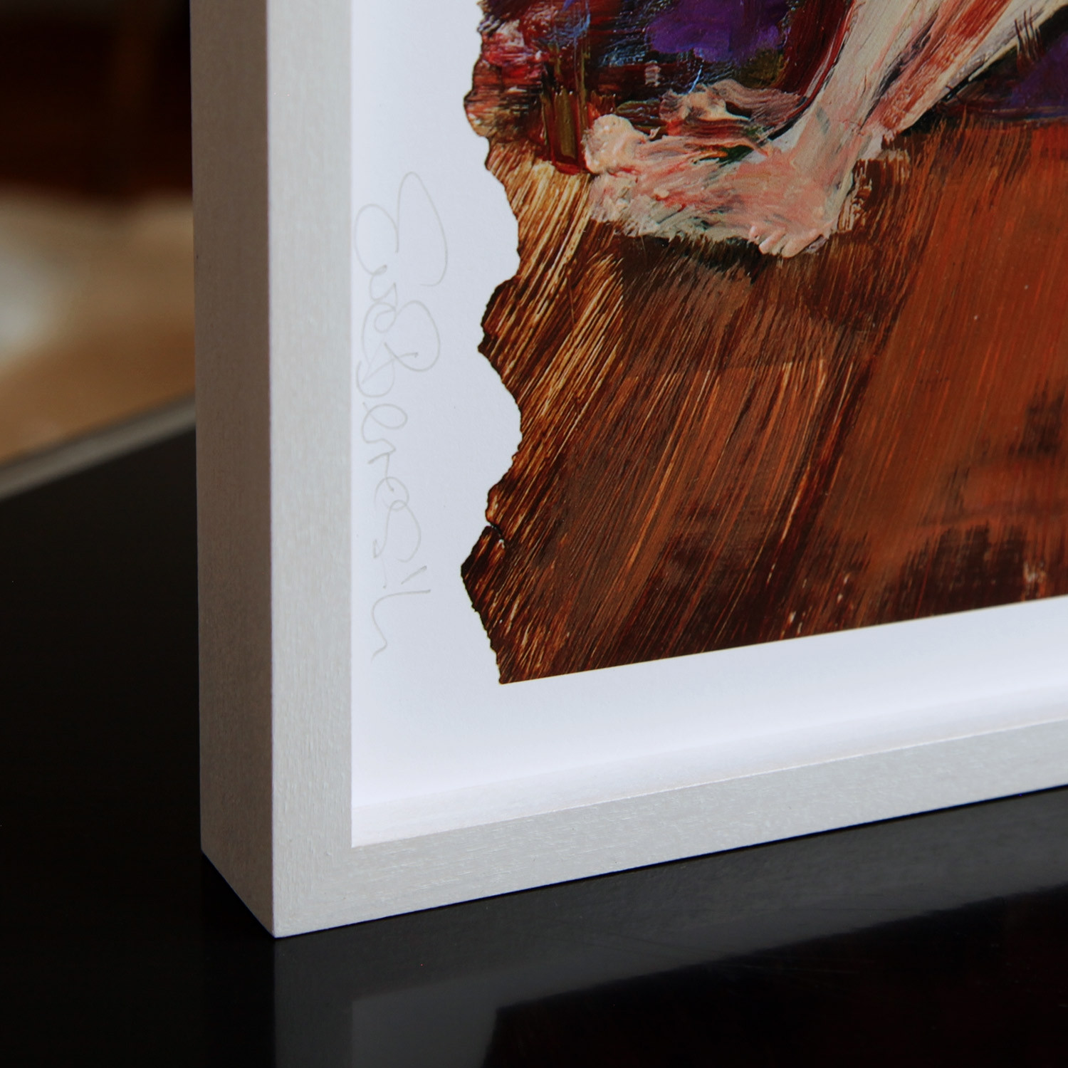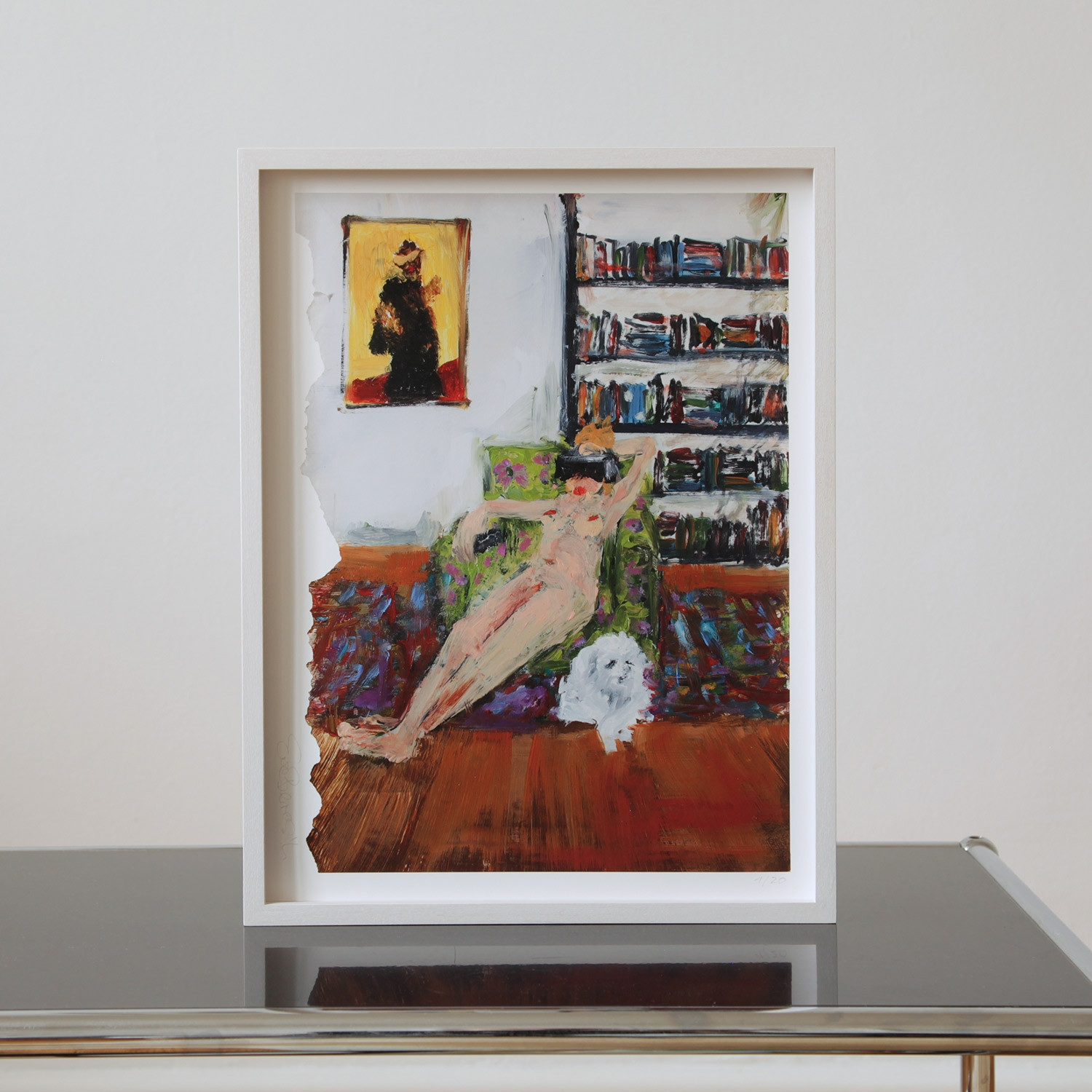 Èva Beresin Participation in Art Basel Miami 2019 ... as if I had already guessed..., 2019/2021 Material Fine Art Print auf Hahnemühle Photo Rag Ultrasmooth Auflage 25 Maße 35,4 x 27 cm Auf der Vorderseite handsigniert und nummeriert (Original ist Öl auf ausgerissener Magazinseite) Auflage 25 + 4 a.p. Details zum Rahmen Handgefertigter, weiss gewachster Ahorn-Holzrahmen, Außenmaße ca. 36,4 x 28 cm, inkl. Museumsglas, Plakatrahmung, inkl. rückseitiger Aufhängung Die neue Art, Kunst zu kaufen Handverlesene, exklusive Editionen Limitierte, signierte Auflagen Top-KünstlerInnen und Rising Stars Schnell registrieren, um Preis und Verfügbarkeit zu sehen. Jetzt kostenlos Mitglied werden Bereits Mitglied? Über die Edition Die Bilder von Éva Beresin wirken genauso stark wie verletzlich und sind dabei so trotzig wie humorvoll. Schaut man auf ihr Erbe, wird deutlich: Hier malt eine Überlebenskünstlerin. Eine, die uns betört mit ihrem Einfallsreichtum und ihrer Offenheit. Und in dieser Selbstbewusstheit liegt eine überraschende Leichtigkeit. Die Figuren – häufig Selbstporträts – nehmen uns ins Visier und berühren uns unmittelbar. Wie innere Seelenlandschaften lassen sich die oft nackten Körper lesen. Zwischen den Drachen, Affen, Puppen und sonstigen Wesen hausen auch unsere Ängste – und unser Glück. Die limitierte Edition „Participation in Art Basel Miami 2019... as if I had already guessed ...“ katapultiert uns hinein in die Gegenwart. Mit dem Bild an der Wand im Hintergrund der kultivierten Wohnumgebung zitiert Beresin den ghanaischen Maler Amoako Boafa. Der stieg auf der titelgebenden Kunstmesse quasi über Nacht zum Shootingstar auf. Und die lässig auf dem geblümten Sessel sitzende Nackte? Zappt sich virtuell noch einmal ganz woandershin. Seit Sommer 2019 malt Beresin mit Öl direkt auf alte Modemagazine – zu dieser Werkgruppe gehört auch das Original mit dem Titel „Feminist since I didn’t even heard about it“ aus dem Jahr 2021. Der Energie der Frau, die – mit einer Axt bewaffnet – eine Luftgitarre imitiert, kann man sich kaum entziehen. Je nach Sichtweise sind die Figuren im Bilderrahmen hinter ihr Schützlinge oder Publikum. Unserer Aufmerksamkeit kann sich Éva Beresin sicher sein. Um unbeteiligt wegzusehen, ist die Sogwirkung ihrer Werke viel zu groß. Text: Cara Wuchold Über die Künstlerin „The story of where I come from and who I am today seems an inexhaustible source.“ Die in Wien lebende ungarische Künstlerin Éva Beresin beschreibt hier, woraus sie schöpft, und offenbart zugleich einen wesentlichen Eindruck ihres Werks: die Intimität. Beresins Herkunft ist fundamental für das Verständnis ihres künstlerischen Schaffens. Als Kind zweier Holocaust-Überlebender haben sich die Gräuel des Zweiten Weltkriegs auch in ihr eigenes Körpergedächtnis eingeschrieben. Denn die Traumata der Eltern endeten nicht mit deren Tod. „Sometimes in the paintings, I am moving naked and vulnerable, in order to be able to start a dialogue with those I was never able to actually meet“, schreibt Beresin noch. Details über ihre Familiengeschichte erfuhr sie erst, als sie nach dem Tod ihrer Mutter deren Tagebuch las – Grundlage für ihre bislang größte Werkreihe und das Buchprojekt „Acht Und Neunzig Seiten“. Éva Beresin, die national wie international ausstellt, wird vertreten von der Charim Galerie Wien. Im Juli 2021 waren Werke von Beresin bei M+B Los Angeles in einer Soloshow zu sehen. Ausstellungen (Auswahl) „OOPS – One (outstanding) Person Show“ heißt ein Format von „artnet“-Kolumnist Kenny Schachter, in dessen Rahmen Éva Beresin 2020 online ausstellte. Sie nahm zudem u.a. in den Jahren 2016, 2017 und 2019 mit der Wiener Charim Galerie an der Kunstmesse „Parallel Vienna“ teil. 2020 war sie mit ihrer Galerie auch auf der Messe „Vienna Contemporary“ vertreten. Im Juli 2021 wird M+B, Los Angeles, eine Soloschau von ihr zeigen. Eine Ausstellung zum Buch „Acht Und Neunzig Seiten“ fand 2015 in der Charim Galerie statt. Lesenswerte Artikel / Links Eva Beresins Website Der amerikanische Kurator Kenny Schachter ist ein großer Fan von Eva Beresin und hat einen schönen Artikel über die Künstlerin verfasst Das Buch "Acht und Neunzig Seiten" von Eva Beresin ist eine persönliche Aufarbeitung der Lebensgeschichte ihrer Mutter, die den Holocaust überlebt hat Eva Beresin wird von der Charim Galerie, Wien vertreten Mehr Kunst entdecken Katrin Funcke The Long Bob, 2022 Katrin Funcke The Louise, 2022 Katrin Funcke The Lunettes, 2022