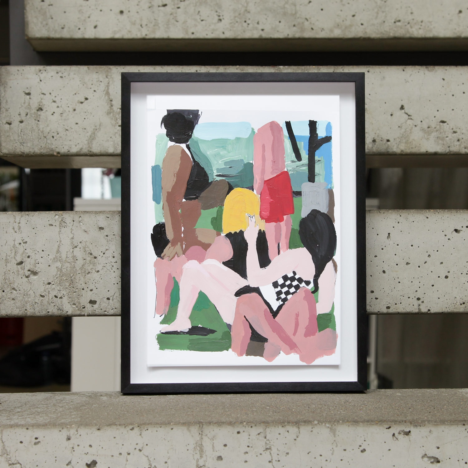 Fabian Warnsing Hot Day Study 4, 2022 Material Acryl und Bleistift auf Papier Auflage 1 Maße 29,7 x 21,0 cm UNIKAT signiert und betitelt Details zum Rahmen Handgefertigter Ahorn-Holzrahmen, schwarz gebeizt und gewachst, Außenmasse ca. 34,9 x 26,2 cm, 10mm Distanzleiste, das Blatt ist hochgestellt montiert, inkl. Museumsglas und rückseitiger Aufhängung, luftdicht verschlossen. Die neue Art, Kunst zu kaufen Handverlesene, exklusive Editionen Limitierte, signierte Auflagen Top-KünstlerInnen und Rising Stars Schnell registrieren, um Preis und Verfügbarkeit zu sehen. Jetzt kostenlos Mitglied werden Bereits Mitglied? Über das Werk Ob Stillleben oder Akte – der Künstler Fabian Warnsing greift immer wieder auf klassische Motive aus der Kunstgeschichte zurück. Die Badenden am See in seinen auf Bleistiftzeichnungen beruhenden Acrylarbeiten aus der Serie „hotdaystudy 1-8“ erinnern an Cézanne, Kirchner oder Katz. Und doch ist bei Warnsing die Zeitgenossenschaft im Blick auf die Körper, Kleider und Konstellationen nicht zu übersehen. Auch digitale Bilderwelten beeinflussen den Maler stark. Allerdings nicht im Hinblick auf Rendering und Perfektion, denn Warnsings Werke legen Arbeitsprozesse und Korrekturen offen, wie sie auch bildästhetischen Fragestellungen nachgehen, etwa zu Flächigkeit und Tiefe, Figuration und Abstraktion. Solche Bruchstellen lassen Raum für Unsicherheit und Assoziation. Trotzdem oder gerade deswegen sprühen Warnsings Bilderfindungen nur so vor narrativer Kraft. Über den Künstler Fabian Warnsing (geb. 1991 in Unna), ehemaliger Meisterschüler im Bereich Freie Kunst an der Kunstakademie Münster, lebt und arbeitet heute in Berlin. 2020 gehörte er zu den Finalisten des Berlin Masters Award. Seine Werke sind in zahlreichen Einzel- und Gruppenausstellungen zu sehen. Ausstellungen (Auswahl) Die König Galerie präsentierte 2022 mit „Rain Drops, Rain Bows“ die erste Solo-Schau von Fabian Warnsing in London. Im Jahr 2021 wurden Werke von ihm am Kunstort Berlin u.a. in der NBB Galerie, der Galerie Droste @ KPM und der Weserhalle gezeigt. Warnsing stellte außerdem 2020 als Finalist der Berlin Masters Foundation aus. Lesenswerte Artikel / Links [Künstlerhomepage von Fabian Warnsing(https://fabianwarnsing.de/) Instagram-Account des Künstlers Mehr Kunst entdecken Philip Grözinger Ohne Titel 3, 2022 Philip Grözinger Ohne Titel 1, 2022 Stefan Marx, Jonathan Meese, Henning Wagenbreth etc Splendid Isolation Mappe (mit 40 Künstler*innen), 2020