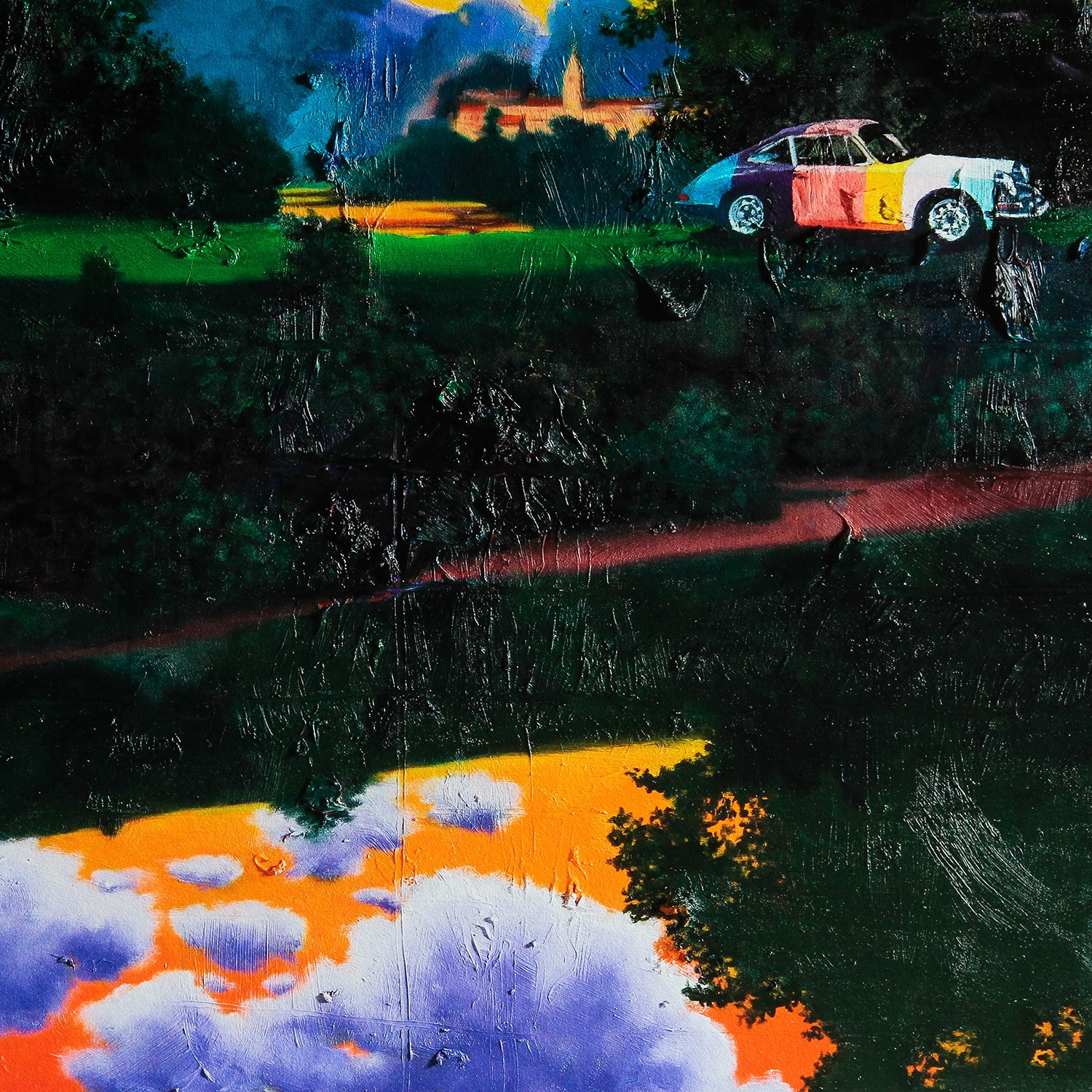 Der Himmel hat es dem Maler und Objektkünstler Friedrich Kunath angetan, vor allem der am Abend. Ihm überlässt der Künstler die mit Abstand größten Räume auf seinen Leinwänden. Dem Sonnenuntergang ist der Abschied ja von jeher eingeschrieben. Doch bei Kunath paart sich die Nostalgie mit dem Tragikomischen. Genauso wie die deutsche Romantik mit amerikanischer Popkultur. 1974 in der DDR geboren, in Ost- und Westberlin aufgewachsen, lebt Kunath heute in Kalifornien. „Die Farben sind heller geworden, die Subjekte dunkler“, sagte er nach seinem Wechsel nach Los Angeles. „At the same time being exuberantly happy and in a tropical depression“, so beschreibt der Musiker und Autor Timon Karl Kaleyta die Stimmung in Kunaths Werken.