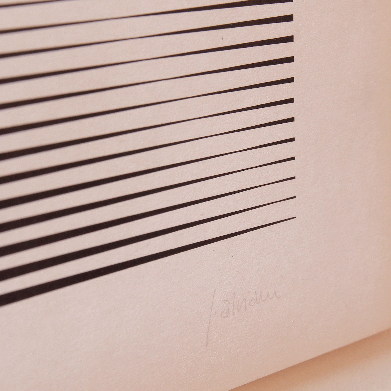 Getulio Alviani Ohne Titel, 1977 Material Siebdruck Herstellungsmethode geringfügige Alterungsspuren möglich Auflage 230 Maße 28 x 28 cm vorderseitig signiert Details zum Rahmen Handgefertigter schwarzer Holzrahmen, mit 10mm Distanzleiste, Außenmaße ca. 40,2 x 40,2 cm. Inkl. rückseitiger Hängeleiste Die neue Art, Kunst zu kaufen Handverlesene, exklusive Editionen Limitierte, signierte Auflagen Top-KünstlerInnen und Rising Stars Schnell registrieren, um Preis und Verfügbarkeit zu sehen. Jetzt kostenlos Mitglied werden Bereits Mitglied? Über den Künstler und die Edition Getulio Alviani (1939‒2018) war ein italienischer Maler, Objektkünstler sowie Vertreter der Op-Art bzw. der kinetischen Kunst. Er schuf abstrakte Arbeiten sowohl in reduziertem Schwarz-Weiß als auch in einer Vielfarbigkeit, die an durch ein Prisma fallendes Licht gemahnt. In Mailand freundete er sich 1963 mit Lucio Fontana an, außerdem arbeitete er mit Max Bill und Josef Albers zusammen. 1964 wurde er auf die Biennale in Venedig eingeladen, ein Jahr später war er in der wegweisenden Ausstellung „The Responsive Eye“ vertreten, die das New Yorker MoMA zur kinetischen Kunst ausrichtete ‒ sein Durchbruch. Auch in Alvianis 1977 entstandenem Siebdruck spielt Licht eine wichtige Rolle: Die vertikal verlaufenden schwarzen Linien wirken, als würden sie von einem Lichtstrahl durchbrochen – ein typisches Werk der Op-Art! Ausstellungen (Auswahl) 2018, On View, Dellupi Arte, Mailand 2018, Sérigraphies, Galerie Denise René, Paris 2017, Thinking Machines Art and Design in theComputer Age, 1959–1989,The Museum of Modern Art 2017, MAZZOLENI INVITES: DIMOREGALLERY | (UN)COMFORT ZONE, Mazzoleni, London 2017, Summer Group Show, Jerome Zodo Gallery, London 2015, ZERO Italia, Stefan Hildebrandt Gallery, St. Moritz 2009, Cromofobie - Percorsi del Bianco e del Nero nell'Arte Italiana Contemporanea, Museo d'Arte Moderna e Contemporanea Ex Aurum, Pescara, Italien 1966, Recent Acquisitions: Painting and Sculpture, The Museum of Modern Art 1965, The Responsive Eye, The Museum of Modern Art, New York Lesenswerte Artikel / Links Alviani auf artnet Zum Tode des Künstlers im Artforum