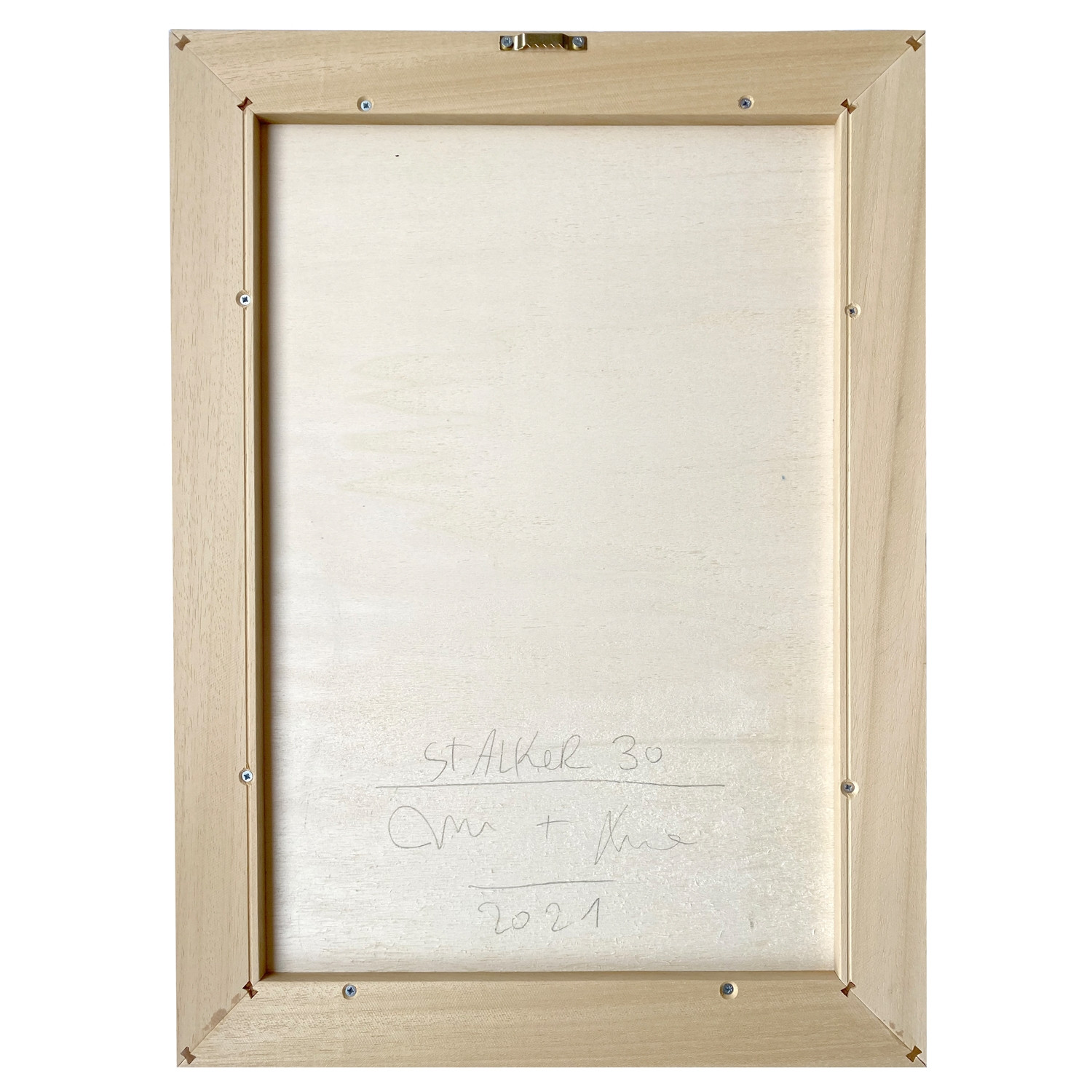 Gfeller + Hellsgård Stalker (30), 2021 Material Siebdruck auf Holz Auflage 1 Maße 54 x 39 cm rückseitig handsigniert, datiert und nummeriert inkl. Rahmen Unikat Die neue Art, Kunst zu kaufen Handverlesene, exklusive Editionen Limitierte, signierte Auflagen Top-KünstlerInnen und Rising Stars Schnell registrieren, um Preis und Verfügbarkeit zu sehen. Jetzt kostenlos Mitglied werden Bereits Mitglied? Über die EditionKreise überlagern sich. Sie wecken Assoziationen an Planeten wie die Erde, an Himmelskörper wie die Sonne oder den Mond. Es herrscht Bewegung. Dunkelschwarze und leuchtende Farben erzeugen emotionale Wucht. Wir sind involviert in das, was wir sehen, auch wenn Gfeller & Hellsgård in ihrer Siebdruck-Unikatserie „Stalker“ keine ersichtliche Erzählung mitliefern. Vor allem die Farben katapultieren uns ins Jetzt. Neonfarbiges taucht immer wieder auf in dem vor Einfallsreichtum nur so strotzenden Gesamtwerk des schwedisch-französischen Künstler*innenduos. Stets aufs Neue werden die Grenzen des virtuos beherrschten kreativen Druckprozesses überdacht, dekonstruiert und verschoben. Über das Künstlerpaar Angefangen haben Anna Hellsgård und Christian „Meeloo“ Gfeller alias Gfeller & Hellsgard mit Postern und Zines im Umfeld der Noise- und Punkszene in Straßburg. Später entwarfen sie auch Cover und Plakate für namhafte Musiker*innen wie Sonic Youth, Pj Harvey, Nick Cave oder Animal Collective. Künstler*innenbücher, Editionen und ein eigener Art Space in Berlin kamen hinzu. Doch je ausgefeilter ihr Handwerk wurde, umso mehr wuchs ihr Interesse an den vermeintlichen Fehlern im Druckprozess, an dem „Unperfekten“. Seit 2011 konzentrieren sich Gfeller & Hellsgård in erster Linie auf ihre freie, nicht-figurative, experimentelle Kunst. Damit sind sie in den renommiertesten Sammlungen wie der Staatsbibliothek Berlin, dem Hamburger Museum für Kunst und Gewerbe oder dem Metropolitan Museum of Art sowie dem MoMA in New York vertreten. Ausstellungen (Auswahl) Werke von Gfeller & Hellsgård waren 2020 in der Soloschau „Honor thy Error as a Hidden Intention“ in der Lage Egal in Berlin (https://lage-egal.net/exhibitions/27980/not-so-a-white-cube-17-gfeller-hellsgaurd/works/) und der Gruppenausstellung „Mondo DERNIER CRI !!“ im MIAM – Musée International des Arts Modestes im französischen Sète (https://miam.org/) zu sehen. Lesenswerte Artikel / Links Webseite von Anna Hellsgård und Christian Gfeller Video-Interviews mit Anna Hellsgård und Christian Gfeller (deutsch) Video-Interviews mit Anna Hellsgård und Christian Gfeller (englisch) Mehr Kunst entdecken James Welling Eleusis, 2019 Gfeller + Hellsgård Stalker (25), 2021 Gfeller + Hellsgård Stalker (21), 2020 Günter Fruhtrunk Blaue Partikel, 1971 Gfeller + Hellsgård Stalker (24), 2020