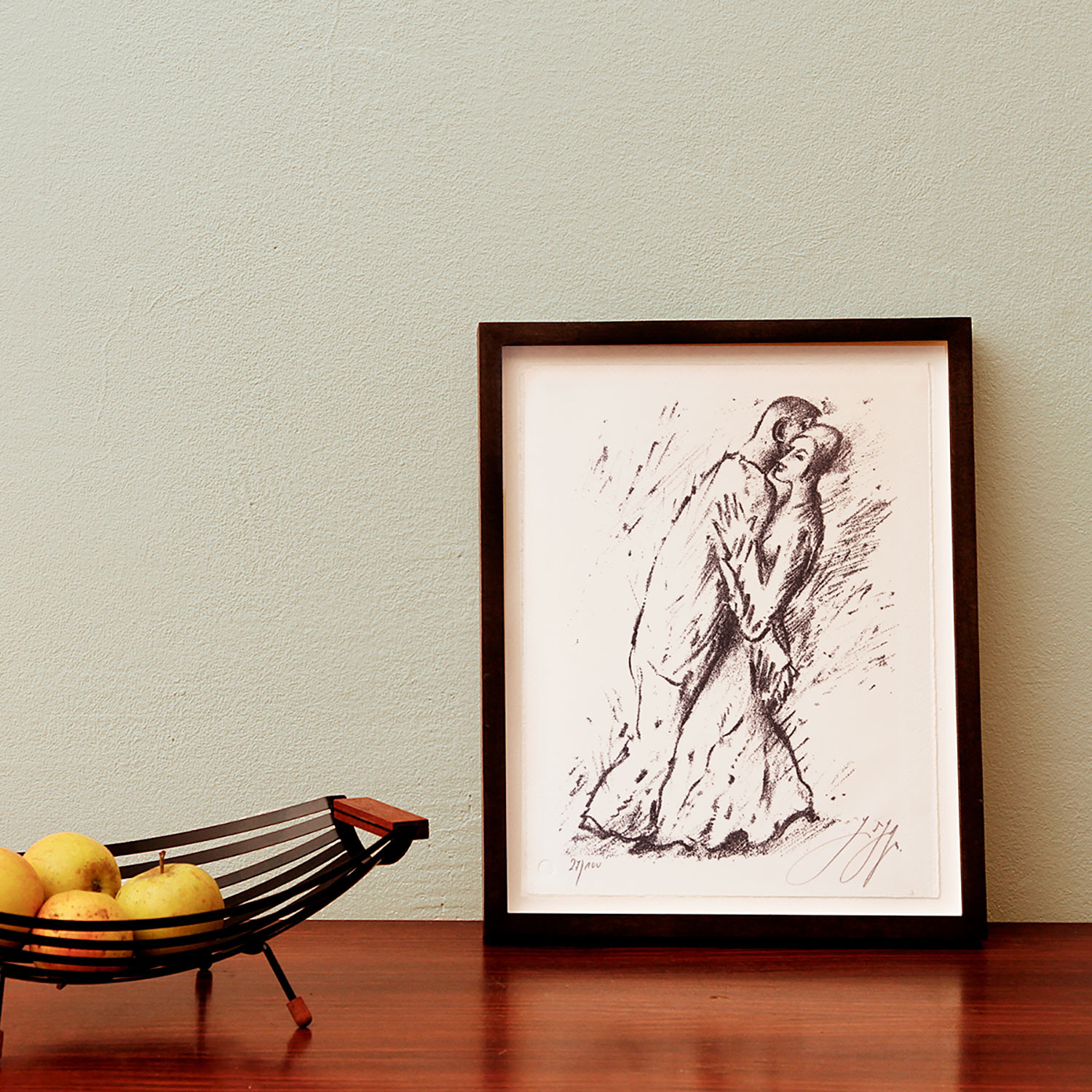 Günter Grass Letzte Tänze II (Rag und Blues – zwischendurch Damenwahl), 2003 Material Lithografie inkl. Buch der Erstausgabe Herstellungsmethode Vorzugsausgabe, signiert und nummeriert Auflage 100 Maße 29 x 23 cm Details zum Rahmen Handgefertigter edler gewachster Ahornrahmen, 10mm Distanzleiste. Außenmaße ca. 26,6 x 33,6 cm. Inkl. Rückseitiger Hängeleiste, staubdicht verschlossen. Die neue Art, Kunst zu kaufen Handverlesene, exklusive Editionen Limitierte, signierte Auflagen Top-KünstlerInnen und Rising Stars Schnell registrieren, um Preis und Verfügbarkeit zu sehen. Jetzt kostenlos Mitglied werden Bereits Mitglied? Über die EditionDass ihm noch zwölf Jahre bleiben würden, dass hätte Günter Grass bei der Arbeit an „Letzte Tänze“ im Jahr 2003 wahrscheinlich nicht gedacht. In Gedichten und Zeichnungen umkreist er dort seine Leidenschaft: den Tanz. Sein fast alterslos wirkendes tanzendes Paar scheint vor Energie, Lust und Körperspannung zu vibrieren – Rücken an Rücken. Die Lithografie „Rag und Blues – zwischendurch Damenwahl“ erzählt von fiebrig durchtanzten Nächten in der Kriegs- und Nachkriegszeit. Und Grass beschönigt nichts: „Weil Krieg war und Männer / in Stiefeln weit ostwärts / so daß sich die Mädchen / aus Mangel und Tanzlust / uns Jungs von der Bank weg / mit Fingerschnalz wegholten“, heißt es im aufwendig gestalteten, von ihm signierten Steidl-Band. Über den KünstlerFür den Schaffensdrang und das Ausdrucksvermögen von Günter Grass reichte eine Kunst allein nicht aus. Sein literarisches Können wurde flankiert von Arbeiten in den Medien der Skulptur, Zeichnung, Radierung und Lithografie. Nach einer Steinmetzlehre studierte der Nobelpreisträger von 1999 Grafik und Bildhauerei. Sein Verleger Gerhard Steidl wurde diesem prallen Werk auch in Buchform gerecht. Zwei Jahrzehnte arbeitete der gelernte Drucker mit Grass zusammen. „Solange wir beide mit dem Buch beschäftigt sind, gehört es uns ganz allein“, sagte der ihm einmal. Mit dünner Radiernadel ritzte Grass seine Figuren und titelgebenden Tiere wie die Rättin, den Butt, den Krebs oder die Unke ins Metall. Schon seine erste Veröffentlichung, „Die Vorzüge der Windhühner“ von 1956, enthielt Gedichte, Zeichnungen und Prosa. „Und gleichfalls sind jene Federzeichnungen für jene englische Broschur, die unter dem Titel ‚Die Vorzüge der Windhühner‘ mein erstes Buch werden sollte, kein illustrierendes Beiwerk, sondern als grafische Fortsetzung und Vorwegnahme der Gedichte zu sehen", so der Künstler. Grass, der 2015 im Alter von 87 Jahren starb, hat neben seiner preisgekrönten Prosa ein bedeutendes bildnerisches und druckgrafisches Werk hinterlassen. Ausstellungen (Auswahl) Aktuelle Termine im Günter Grass-Haus in Lübeck Im Steidl-Verlag erschienene Werke von Günter Grass Lesenswerte Artikel / Links Günter Grass beim Steidl Verlag Marcel Reich-Ranicki über „Letzte Tänze“ von Günter Grass Rezension von Ina Hartwig in der „Frankfurter Rundschau“ Rezension in „der Freitag“ von Dorothea von Törne Ausstellung im Haus am Lützowplatz in Berlin Original-Lithografien beim Kunsthaus Lübeck Mehr Kunst entdecken Günter Grass Letzte Tänze I (Rag und Blues – zwischendurch Damenwahl), 2003 Günter Fruhtrunk Konkrete Komposition, 1977 John Baldessari Hot Tub, 2016