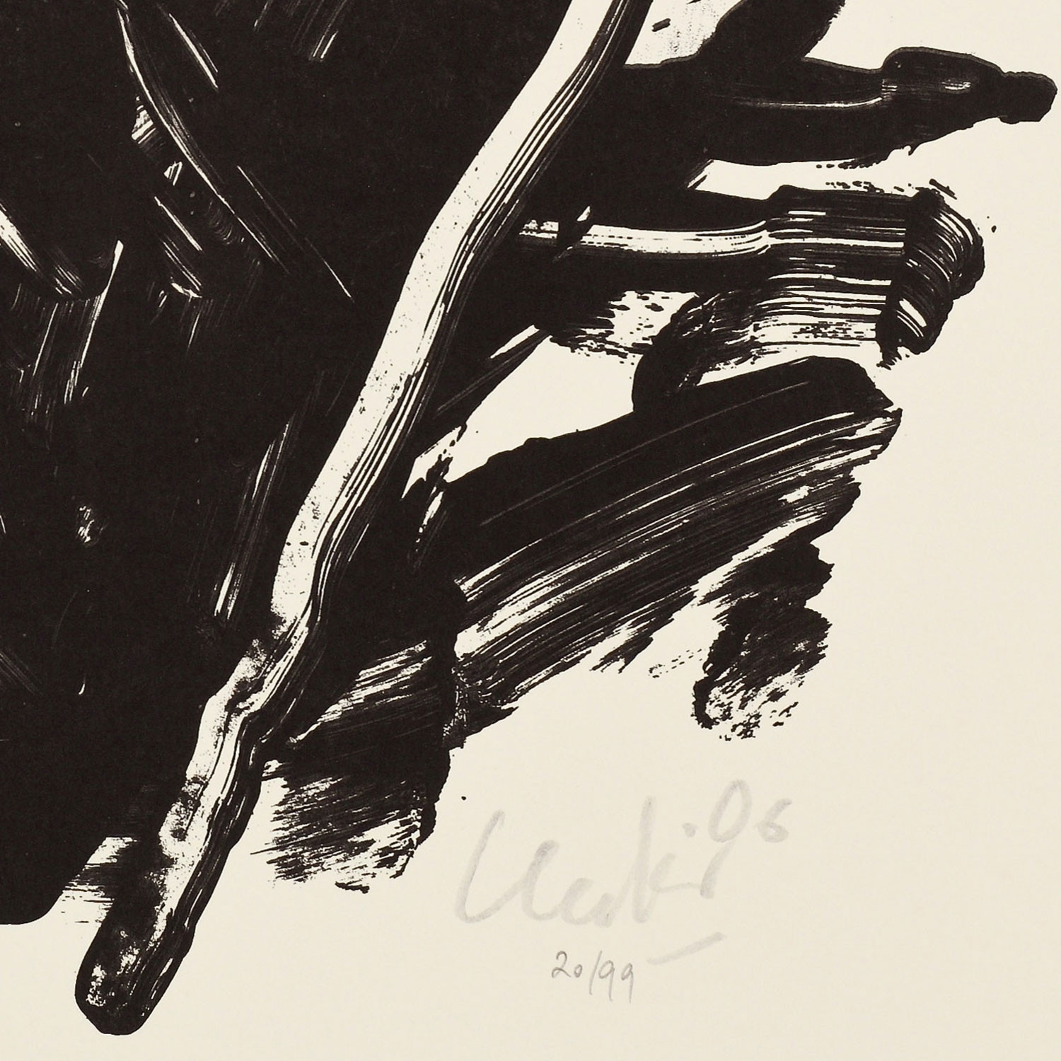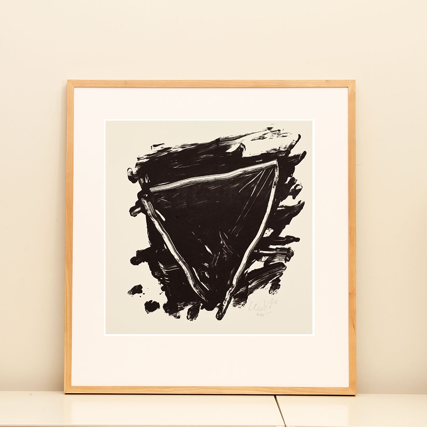 Günther Uecker Hiob Seite 40, 1996 Material Siebdruck Auflage 99 Maße 52 x 50 cm Vom Künstler signiert und datiert, zusätzlich nummeriert Details zum Rahmen Handgefertigter gewachster Kirschbaum-Holzrahmen, mit Passepartout in altweiß. Inkl. rückseitiger Hängeleiste, staubdicht verschlossen. Die neue Art, Kunst zu kaufen Handverlesene, exklusive Editionen Limitierte, signierte Auflagen Top-KünstlerInnen und Rising Stars Schnell registrieren, um Preis und Verfügbarkeit zu sehen. Jetzt kostenlos Mitglied werden Bereits Mitglied? Über die EditionDas Buch Hiob aus dem Alten Testament gehört zur Weltliteratur. Kaum einem anderen Künstler ist eine so eindringliche Auseinandersetzung mit diesem Stoff, in dem es um die Frage nach der Sinnhaftigkeit des Leidens im Glauben geht, gelungen wie Uecker. Seine künstlerische Interpretation des alttestamentlichen Textes gilt als eine seiner wichtigsten Mappenarbeiten überhaupt. Sie umfasst 47 Grafiken, von der jede aus einem umklappbaren Doppelbogen mit Motiv und entsprechendem Text besteht. Ein Exemplar dieser beeindruckenden „Hiob“-Mappe befindet sich in der Kunstsammlung der BRD und wird im Berliner Reichstag präsentiert. Wir schätzen uns glücklich, Ihnen heute zwei Grafiken aus Ueckers Meisterwerk von 1996 auf artflash zeigen zu können! Über den Künstler Schon als Kunststudent machte Günther Uecker (geboren 1939 in der Nähe von Wustrow) die Entdeckung, dass der Bleistift nicht nur als Zeichengerät, sondern auch anders ausdrucksfähig ist – wenn man das Papier mit ihm durchsticht. „Das war Realismus für mich. Die Emotionen sind in der Hand, die Hand ist das Werkzeug, und der Arbeitsplatz ist Kunst“, erklärte er später. Da war es zu Hammer und Nagel nicht mehr weit, mit denen Uecker seither Bilder und Objekte erarbeitet, für welche er weltweit gefeiert wird. Uecker zählt zu den wichtigsten Nachkriegskünstlern Deutschlands überhaupt. 1961 wurde er Mitglied der von Heinz Mack und Otto Piene kurz zuvor gegründeten Gruppe ZERO und wandte sich daraufhin verstärkt der Lichtkunst zu. Wenige Jahre später, 1970, war er neben Karl-Georg Pfahler, Mack und Thomas Lenk deutscher Vertreter auf der Biennale in Venedig. Seine Hauptwerke, wie etwa seine genagelten Reliefs, werden heute am Kunstmarkt auf eine halbe Million Euro oder mehr taxiert. 2015 ehrte die Kunstsammlung Nordrhein-Westfalen in Düsseldorf den Aktionskünstler, Bildhauer, Bühnenbildner und Poeten mit einer umfangreichen Retrospektive. Lesenswerte Artikel / Links Die „FAZ“ über Günther Ueckers Ausstellung im K20 in Düsseldorf (2015) Interview mit Günther Uecker in „Die Welt“ Biografie des Künstlers in „Who's who ‒ The People Lexicon“ Mehr Kunst entdecken Günter Fruhtrunk Konkrete Komposition, 1977 John Baldessari Hot Tub, 2016 Günter Grass Letzte Tänze II (Rag und Blues – zwischendurch Damenwahl), 2003 Günther Uecker Hiob Seite 25, 1996