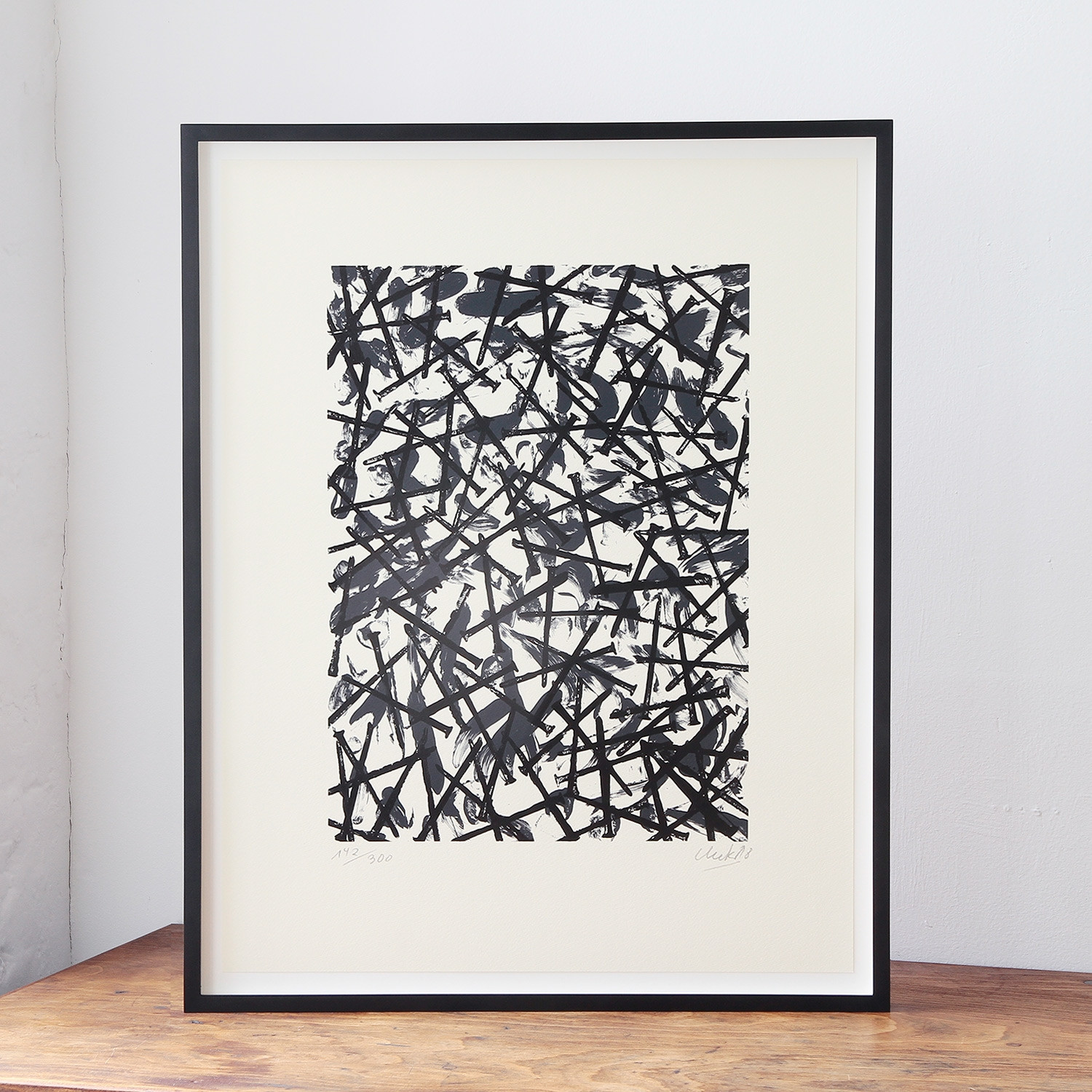 Günther Uecker Lesioni - Legami, 1998 Material Siebdruck Auflage 300 Maße 62 x 48 cm handsigniert, datiert und nummeriert Details zum Rahmen Handgefertigter, schwarz gebeizter Holzrahmen, inkl. Distanzleiste 10mm, Außenmasse: 54,8 x 68,8 cm, Inkl. rückseitiger Aufhängung, staubdicht verschlossen. Die neue Art, Kunst zu kaufen Handverlesene, exklusive Editionen Limitierte, signierte Auflagen Top-KünstlerInnen und Rising Stars Schnell registrieren, um Preis und Verfügbarkeit zu sehen. Jetzt kostenlos Mitglied werden Bereits Mitglied? Über die Edition Uecker sprach einmal vom Bild als „unalphabetischem Ausdruck des Unsagbaren in unserer Welt“. So bilde es „in seiner jahrtausendealten Bedingtheit die Lebensgrundlage für Verstehen und für friedensbildende Vereinbarungen zwischen den Kulturen“. Oder anders ausgedrückt (ebenfalls ein Uecker-Zitat): „Wo die Sprache versagt, da beginnt das Bild.“ Die für ihn typischen Materialien Nägel, Sand, Stein und Asche spiegeln sich auch in dieser Edition. Es ging Uecker von Beginn an um die Wahrhaftigkeit der Mittel in der Kunst, um ein Zurücklassen der Illusionen und Idealismen, die in die Katastrophe des Zweiten Weltkriegs geführt hatten. Die Quelle der Kunst lag für ihn in der Banalität des Alltags, zugleich Ausdruck der Gegenwart, die er und andere als junge Künstler einzufangen suchten. Hierin lag damit nichts weniger als: eine Möglichkeit zur Versöhnung. Über den Künstler Schon als Kunststudent machte Günther Uecker (geboren 1939 in der Nähe von Wustrow) die Entdeckung, dass der Bleistift nicht nur als Zeichengerät, sondern auch anders ausdrucksfähig ist – wenn man das Papier mit ihm durchsticht. „Das war Realismus für mich. Die Emotionen sind in der Hand, die Hand ist das Werkzeug, und der Arbeitsplatz ist Kunst“, erklärte er später. Da war es zu Hammer und Nagel nicht mehr weit, mit denen Uecker seither Bilder und Objekte erarbeitet, für welche er weltweit gefeiert wird. Uecker zählt zu den wichtigsten Nachkriegskünstlern Deutschlands überhaupt. 1961 wurde er Mitglied der von Heinz Mack und Otto Piene kurz zuvor gegründeten Gruppe ZERO und wandte sich daraufhin verstärkt der Lichtkunst zu. Wenige Jahre später, 1970, war er neben Karl-Georg Pfahler, Mack und Thomas Lenk deutscher Vertreter auf der Biennale in Venedig. Seine Hauptwerke, wie etwa seine genagelten Reliefs, werden heute am Kunstmarkt auf eine halbe Million Euro oder mehr taxiert. 2015 ehrte die Kunstsammlung Nordrhein-Westfalen in Düsseldorf den Aktionskünstler, Bildhauer, Bühnenbildner und Poeten mit einer umfangreichen Retrospektive. Ausstellungen (Auswahl) 1964, 1968 und 1977 nahm Günther Uecker an der documenta in Kassel teil, 1970 war der Künstler eingeladen zur Venedig-Biennale. 2005 fand anlässlich seines 75. Geburtstages eine Retrospektive unter dem Titel „Zwanzig Kapitel“ im Martin-Gropius-Bau und in der Neuen Nationalgalerie, Berlin, statt. 2019 öffnete das Isfahan Museum of Contemporary Arts seine Türen für Ueckers “Huldigung an Hafez” ‒ die Ausstellung reist 2020 durch verschiedene Städte in ganz Iran. Lesenswerte Artikel / Links Die „FAZ“ über Günther Ueckers Ausstellung im K20 in Düsseldorf (2015) Interview mit Günther Uecker in „Die Welt“ (2012) Biografie des Künstlers in „Who's who ‒ The People Lexicon“ Mehr Kunst entdecken Salvador Dalí Les Amourex – The Kingdom, 1980 Rose Wylie Things around the house VI, 2016 Juan de la Rica Saltadora, 2022