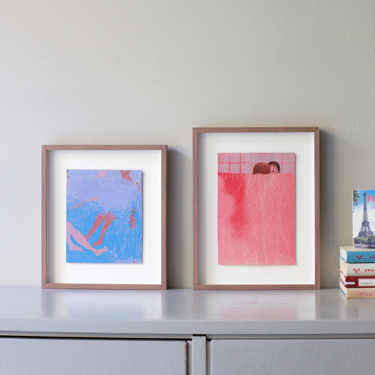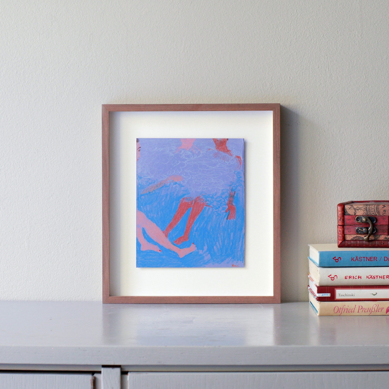 Henri Haake Vabali, 2022 Material Buntstift auf Papier Auflage 1 Maße 17,5 x 14,8 cm UNIKAT vorderseitig handsigniert Details zum Rahmen Handgefertigter Nussbaum Holzrahmen, inkl. 10mm Distanzleiste und Museumsglas. Außenmaße ca. 30 x 24 cm, das Werk ist hochgestellt montiert. Inkl. rückseitiger Aufhängung Die neue Art, Kunst zu kaufen Handverlesene, exklusive Editionen Limitierte, signierte Auflagen Top-KünstlerInnen und Rising Stars Schnell registrieren, um Preis und Verfügbarkeit zu sehen. Jetzt kostenlos Mitglied werden Bereits Mitglied? Über das Werk Es sind intime Szenen, die uns in Henri Haakes Buntstiftzeichnungen begegnen: der Moment, in dem sich ein Paar entkleidet wie in „Takeoff And Landing“, oder – vermutlich nackt – Badende wie in „Vabali“ (der Titel ist einem Berliner Spa entlehnt). Beobachtung wohnt auch immer eine Spur Voyeurismus inne, das machen diese Unikate deutlich. Denn der Maler Haake scheint seine Protagonist*innen zwar zeigen, jedoch zugleich vor unseren Blicken schützen zu wollen. So verdeckt die Kleidung die Gesichter des Paars, lässt das Wasser allein den Blick auf Beine und Arme zu. In „Duschende“ und „Honey Lotion“ sind es die Duschvorhänge, die einen letzten Rest Privatsphäre gewähren. Und berührt nicht genau dieses Sich-zeigen-Wollen, ohne sich dabei ganz zu entblößen, das Spannungsverhältnis, in dem die Selbstdarstellung in unserer auf Öffentlichkeit ausgerichteten Gegenwart steht? Haakes zart kolorierte, sensible Werke nähren die Hoffnung, dass eine solche Gratwanderung möglich ist. Über den Künstler „Mich interessiert Wirklichkeit nicht als Detailgenauigkeit“, sagt Henri Haake (*1989 in Lübeck) selbst. Vielleicht verraten seine vom Alltag inspirierten Arbeiten gerade deshalb so viel über die menschliche Verfasstheit, weil nicht alles ausbuchstabiert wird. So entsteht Raum für all das, was schwieriger zu greifen, zu beschreiben ist – und doch dazugehört. Haake graduierte 2016 als Meisterschüler an der Universität der Künste Berlin. Er studierte bei dem finnischen Maler Robert Lucander und absolvierte 2013 ein Semester am Hunter College in New York City. Seine Werke sind seither in zahlreichen Einzel- und Gruppenausstellungen zu sehen, u.a. in seiner Wahlheimat Berlin, in München, Wien, Zürich, New York, Kopenhagen und Lissabon. Ausstellungen (Auswahl) „OMG“ heißt Henri Haakes aktuelle Einzelausstellung bei OFFICE IMPART in Berlin (bis 1.12.2023). Werke von ihm waren 2023 zudem in der Soloschau „Dreamliner“ in der Galerie Mikael Andersen in Kopenhagen zu sehen. Vertreten war der Künstler darüber hinaus in diesem Jahr noch in der Gruppenausstellung „Dammi i colori“ der Sociedade Nacional de Belas Artes Lisboa. Lesenswerte Artikel / Links Homepage von Henri Haake Instagram des Künstlers Mehr Kunst entdecken Anna Stahn Newspaper Print, 2022 Joachim Lambrechts Marilyn Monroe in New York, 2022/2023 Jordan Sullivan Hotel Traymore, 2022 Nadine Wölk Symposium 1, 2022 Stefan Marx Our Future, 2023