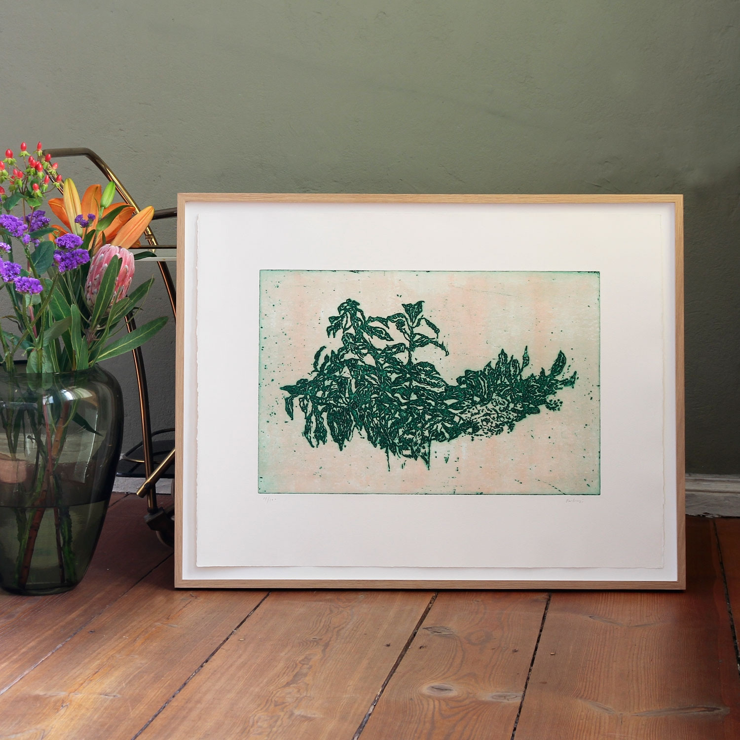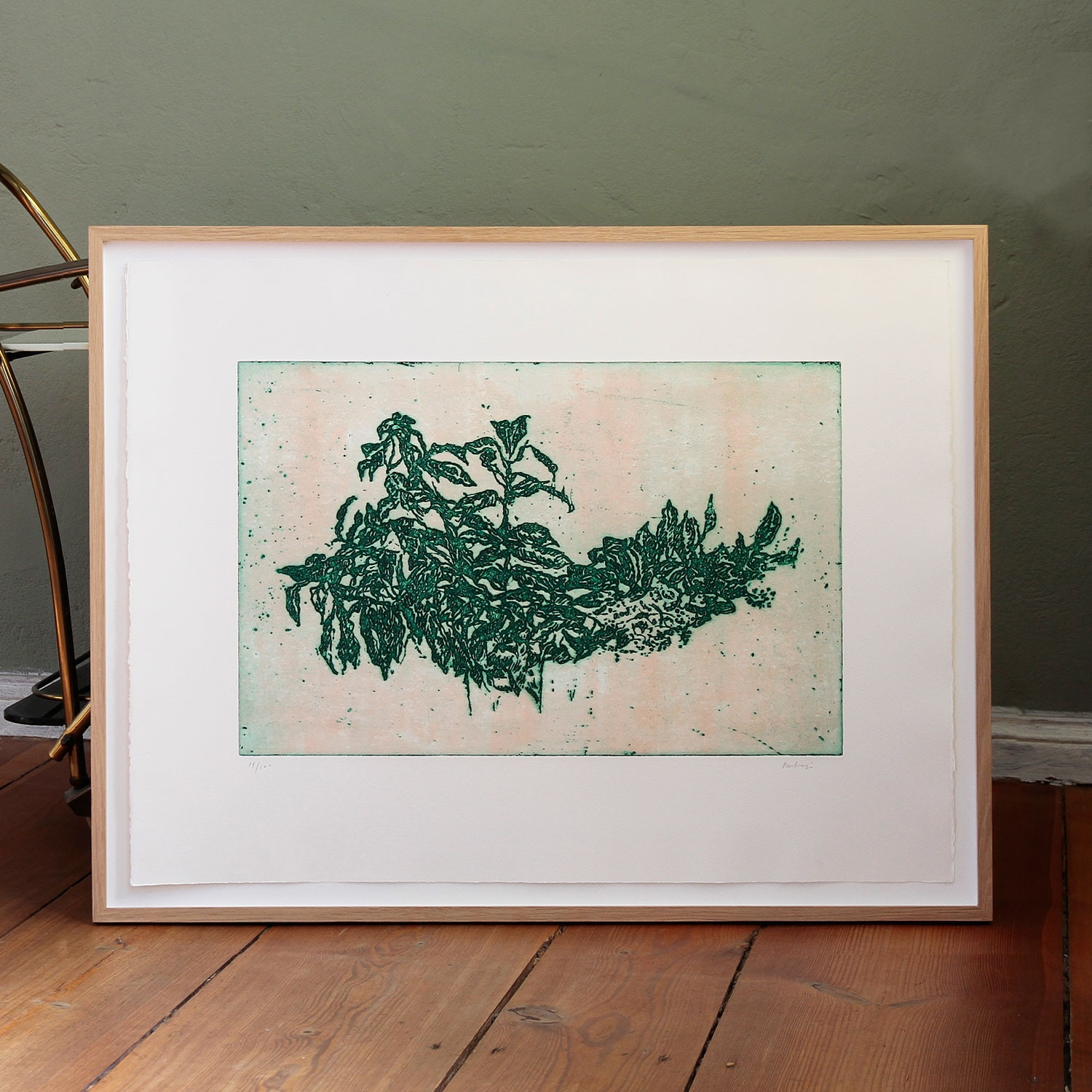 Ida Barbarigo Ohne Titel (Branche Fleurie), 1981 Material Radierung mit Carborundum auf Arches Bütten Herstellungsmethode handschriftlich signiert und nummeriert Auflage 100 Maße 50 x 65,5 cm Details zum Rahmen Handgefertigter Eichen-Holzrahmen, inkl. 10mm Distanzleiste, Außenmaße ca. 71,8 x 55,8 cm. Inkl. rückseitiger Hängeleiste, staubdicht verschlossen. Die neue Art, Kunst zu kaufen Handverlesene, exklusive Editionen Limitierte, signierte Auflagen Top-KünstlerInnen und Rising Stars Schnell registrieren, um Preis und Verfügbarkeit zu sehen. Jetzt kostenlos Mitglied werden Bereits Mitglied? Über die Edition Diese handsignierte Farbradierung auf Büttenpapier von 1981 wurde in zwei Farben gefertigt. Der Titel „Branche Fleurie“ zeigt an: Hier blüht ein Zweig. Er tut es in sattem Dunkelgrün. Jeder Knick, jede Falte seiner Blätter ist sichtbar. Es ist die Detailgenauigkeit, die diesen Druck auszeichnet. Die Arbeit von Ida Barbarigo steht in einer langen kunsthistorischen Tradition: Seit der Renaissance gewannen exakte Naturstudien mehr und mehr an Bedeutung ‒ man denke nur an das „Große Rasenstück“ (1503) von Albrecht Dürer ‒ auf dem Weg zu einer eigenständigen Gattung, dem Stillleben. Anders als Dürer hat sich Barbarigo jedoch nicht der getreuen Nachbildung der Wirklichkeit verschrieben. Ihr Zweig verbleibt stattdessen im Niemandsland auf weißem Grund. Bei Barbarigo wird dadurch die Figuration zur Abstraktion. Über die Künstlerin Ida Barbarigo, geboren 1925 in Venedig, stammte aus einer Familie von bildenden Künstlern und Architekten. Sie selbst studierte Architektur an der Accademia di Belle Arti di Venezia. 1949 heiratete sie den Maler Zoran Music. Barbarigos Stil ist unverwechselbar. Nach einer frühen figurativen Phase schuf sie bis zuletzt Arbeiten, die sich mit der Abstraktion auseinandersetzen. Bereits 1942 wurden ihre Werke auf der Biennale von Venedig gezeigt. Ein Höhepunkt ihrer künstlerischen Laufbahn war 1972 eine Retrospektive im Musée d’Art Moderne de la Ville de Paris. Nach einem langen Künstlerleben zwischen Paris und Venedig starb Barbarigo zu Beginn des letzten Jahres in ihrer Geburtsstadt. Ihr Werk wird von dem weltweit geschätzten Kunstsammler, Galeristen und Innenarchitekten Axel Vervoordt vertreten. Ausstellungen (Auswahl) 2015, Palazzo Fortuny, Venedig 2009, Palazzo Fortuny, Venedig 2006, Palazzo Fortuny, Venedig 2000, BBK Foundation, Bilbao 1982, Haus der Kunst, München 1972, Musée d’Art Moderne de la Ville de Paris, Paris 1960, Museum of Modern and Contemporary Art, Rijeka (Kroatien) 1942, Kunstbiennale Venedig Lesenswerte Artikel / Links Ida Barbarigo bei Galerie Axel Vervoordt Arbeiten von Ida Barbarigo auf artnet Arbeit von Ida Barbarigo in der Flick Collection, Berlin Ida Barbarigo in der Sammlung der Tate, London Mehr Kunst entdecken Gregor Hildebrandt Liebe die ganze Nacht, 2008 Simone Haack Die Andere, 2012