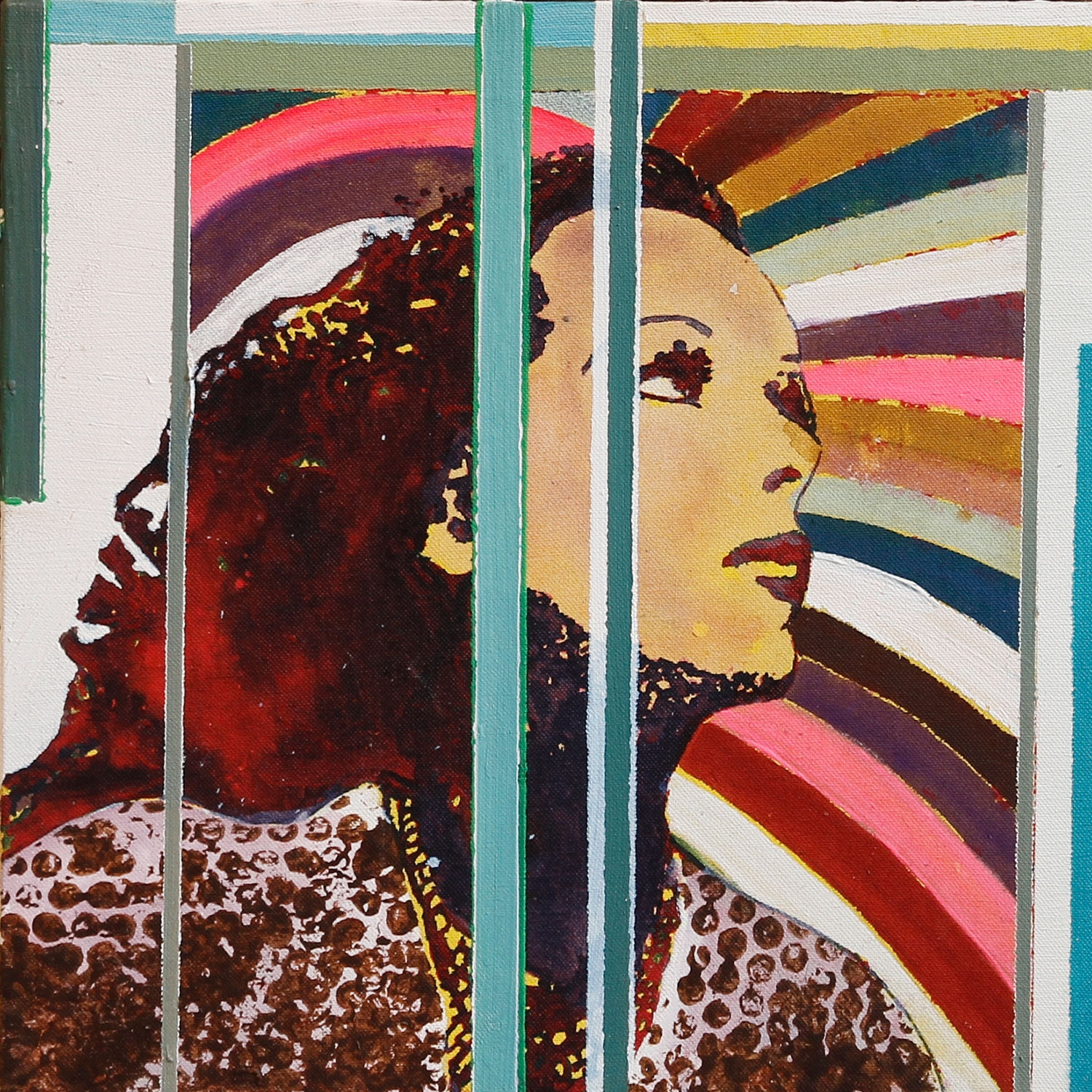 Muches Malerei dieser frühen Zeit zeichnet sich aus durch eine gesteigerte Buntheit, den gleichwertigen Einsatz von Texten und Bildern, eine besondere Art der Figurendarstellung und einen von der Architektur inspirierten Bildaufbau. Dies gilt auch für seine Gemälde „Bleich“, „Oxy“ und „Inhalt“. Sie zeigen jeweils eine Frau, die uns entweder direkt anschaut oder in eine unbestimmte Ferne blickt. Alle drei Darstellungen vermitteln Zuversicht und Selbstbewusstsein. Sind diese Frauen Kämpferinnen und wenn ja, wofür kämpfen sie? Die Farbpalette ist breit angelegt. Farben und Formen strukturieren nicht nur den Hintergrund, sondern greifen auch in die figurative Darstellung ein, durchkreuzen und überschneiden sie. Dieser Bruch mit den Konventionen der Porträtmalerei ist ‚Muche pur’! Darüber hinaus verwendet der Künstler mit dem Wort „Inhalt“ das Medium der Schrift, das sich jedoch einpasst in die malerische Gesamtgestaltung.