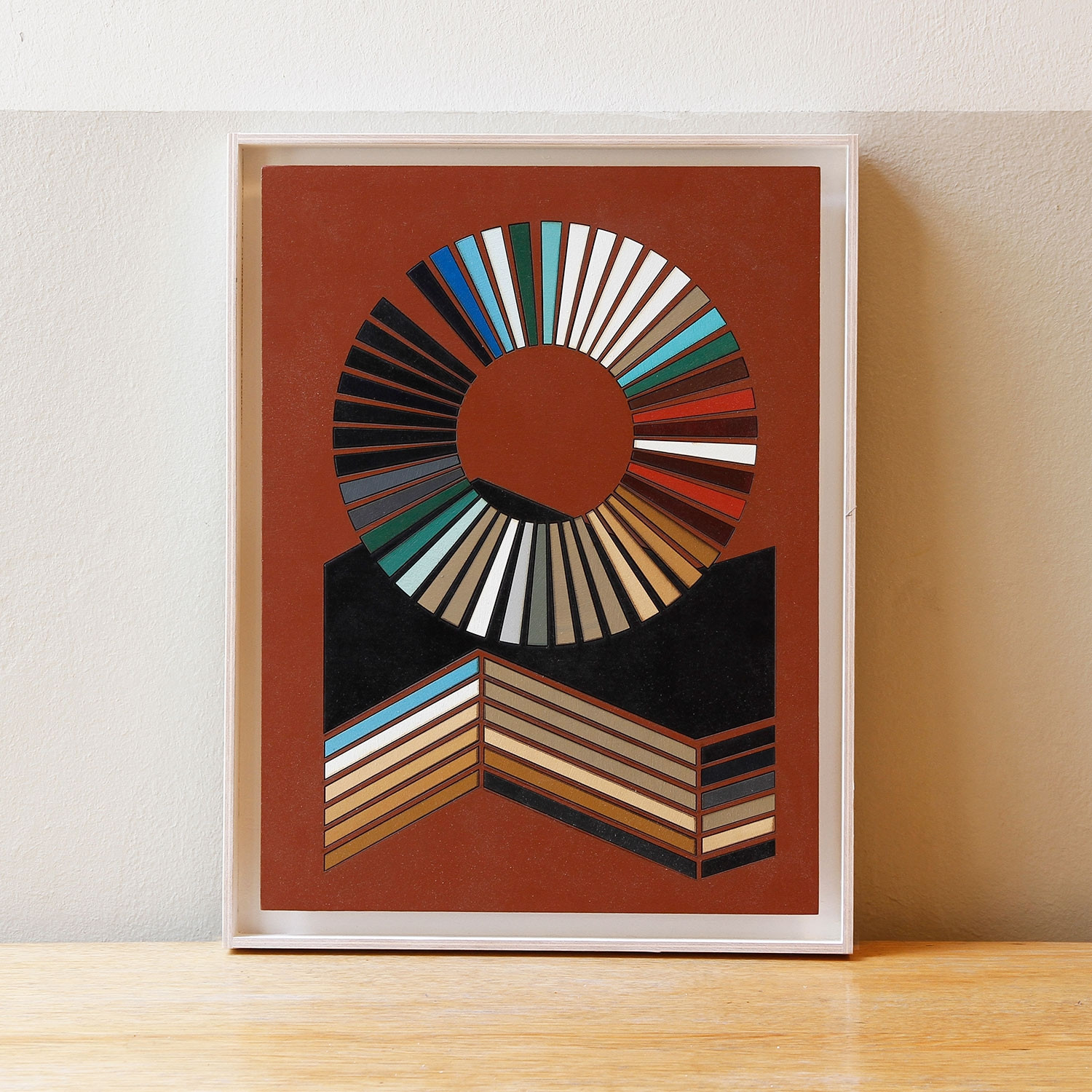 Jay Gard Jenny (Nr. 2), 2018 Material Intarsienarbeit: lasergeschnittenes Holz, Acrylfarbe Rahmen: Birkensperrholz, Acrylfarbe Herstellungsmethode Rückseitig signiert, betitelt und datiert Auflage 12 Maße 42,4 x 32,7 cm INKLUSIVE RAHMEN UNIKAT-SERIE! Die neue Art, Kunst zu kaufen Handverlesene, exklusive Editionen Limitierte, signierte Auflagen Top-KünstlerInnen und Rising Stars Schnell registrieren, um Preis und Verfügbarkeit zu sehen. Jetzt kostenlos Mitglied werden Bereits Mitglied? Anfrage senden Über den Künstler und das Werk Jay Gard (*1984) ist viel herumgekommen, bevor er sich als Künstler final für Berlin und Chemnitz als Standorte zum Leben und Arbeiten entschieden hat. Er studierte zunächst an der Kunsthochschule Halle und der UdK Berlin, später folgte das Studium der Medienkunst an der Hochschule für Grafik und Buchkunst in Leipzig. Außerdem war er Assistent von Tom Sachs in New York und Thomas Demand in Berlin. 2016 war er zudem Stipendiat an der Nida Art Colony der Vilnius Academy of Arts, Litauen. Anfang des nächsten Jahres wird es eine Einzelausstellung seiner Werke im Museum Gunzenhauser ‒ Kunstsammlungen Chemnitz geben. Gard arbeitet seit mehr als einem Jahrzehnt mit Skulpturen, Objekten und Installationen. Sein Interesse gilt den Dingen, die Menschen seit Jahrtausenden realisieren, und den Zeichen, die sie entwickeln. Dabei bewegt er sich geschickt zwischen Kunst und Design. Die Intarsienarbeit „Jenny“ (2018) gehört zu einer aktuellen Serie des Künstlers, die auf zwei Aspekte gleichermaßen verweist: „Jenny“ steht in der langen Tradition des Farbkreises und des kunsthistorischen Diskurses zur Farbenlehre. Gards Farben entsprechen jedoch nicht den Lehren eines Newton, Goethe oder Itten. Er hat sich vielmehr vom Kolorit einer Zeitgenossin inspirieren lassen: Als Vorbild diente ihm das Porträt „Entry“ der englischen Malerin Jenny Saville. Alle sechs Arbeiten sind Originale, sie unterscheiden sich in der Wahl des Farbhintergrundes wie auch in der Anordnung und Reihenfolge der Farben im Kreis. Darüber hinaus bricht Gard den klassischen Aufbau des Farbkreises auf, indem er in die untere Bildfläche zusätzlich freie Formen einfügt, die das Kolorit erneut aufgreifen. Ausstellungen (Auswahl) 2019, Museum Gunzenhauser ‒ Kunstsammlungen Chemnitz, Chemnitz 2018, Galerie Gether Contemporary, Kopenhagen 2018, Kunst & Denker Contemporary, Düsseldorf 2017, Zeichen unter Zeichen, Sexauer Gallery, Berlin 2017, It’s the Frame Not the Painting, Jonas Mekas Visual Arts Center, Vilnius 2016, Making Things Makes Us Human, Galerie Gether Contemporary, Kopenhagen Lesenswerte Artikel / Links Website von Jay Gard Jay Gard bei Galerie Sexauer, Berlin Jay Gard bei Galerie Gether Contemporary, Kopenhagen Videoeinblick in Gards letzte Ausstellung bei Galerie Sexauer mit dem Titel "Zeichen unter Zeichen", Berlin Mehr Kunst entdecken Philip Grözinger Calamity, 2017 Jan Muche Bleich, 2007 Jan Muche Oxy, 2008 Jay Gard Jenny (Nr. 7), 2018 Jay Gard Jenny (Nr.5), 2018 Jay Gard Jenny (Nr. 1), 2018 Jay Gard Jenny (Nr. 9), 2018 Jay Gard Jenny (Nr.12), 2018