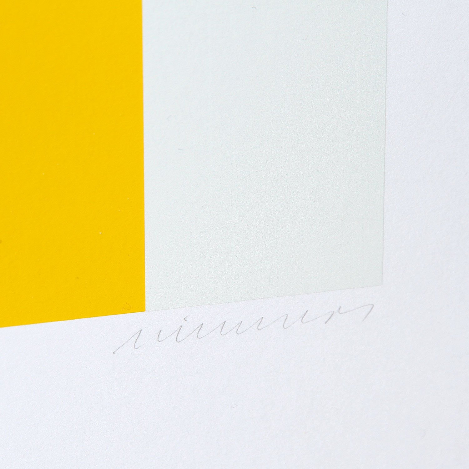 Jo Niemeyer SPIRALE IV, 1998 Material Siebdruck auf Papier Auflage 95 Maße 50 x 70 cm Auflage 95 signiert und nummeriert Details zum Rahmen Handgefertigter schwarz gewachster Ahornholzrahmen, ca 50 x 70 cm, inkl. Distanzleiste 10mm, Normalglas, inkl. rückseitiger Aufhängung Die neue Art, Kunst zu kaufen Handverlesene, exklusive Editionen Limitierte, signierte Auflagen Top-KünstlerInnen und Rising Stars Schnell registrieren, um Preis und Verfügbarkeit zu sehen. Jetzt kostenlos Mitglied werden Bereits Mitglied? Anfrage senden Über die Edition In der Edition „SPIRALE IV“ beschäftigt sich Jo Niemeyer konsequent mit dem Goldenen Schnitt. In Zeiten des scheinbar Perfekten, wie es in den sozialen Netzwerken, etwa auf Instagram, tagtäglich inszeniert wird, stellt sich die Frage nach universeller Schönheit und Ästhetik umso drängender. Denn dem, was Menschen als harmonisch und schön empfinden, liegt immer noch der Goldene Schnitt zugrunde. Niemeyer geht diesem Phänomen in seiner künstlerischen Arbeit nach, so auch in unserer Edition. Zur Vereinfachung nutzt er ausschließlich Primärfarben. Auf diesem Weg bringt er die jahrtausendealte Formel in unsere Gegenwart. Er ordnet das vermeintlich Ungeordnete. Das, was sonst oft unübersichtlich, verwischt und verschwommen wirkt, räumt er auf und sortiert es, und das, was vermeintlich subjektive Vorliebe ist, wird als einem universellen Code unterstellt erkennbar. Niemeyer visualisiert Grundsätze aus der Mathematik, die die konkrete Lebensrealität durchdringen, er macht die Strukturen, auf denen alles basiert, sichtbar. Über den Künstler Jo Niemeyer (geb. 1946 in Alf/Mosel), wichtiger Vertreter der Konkreten Kunst, beschäftigt sich in seinem Werk intensiv mit dem Goldenen Schnitt, der sich, dargestellt durch die Zahl Phi, universell etwa in den Cheops-Pyramiden oder in Leonardo da Vincis berühmter Zeichnung des idealen Menschen wiederfindet. Niemeyer verbindet sein künstlerisches Schaffen so mit der urmenschlichen Suche nach Harmonie und Schönheit. In seinen Arbeiten, die strengen mathematischen Regeln unterworfen sind und in denen nichts dem Zufall überlassen wird, nutzt er ausschließlich Primärfarben zur weiteren Vereinfachung. Gleichzeitig lotet er aber auch den Raum aus, in dem sich seine Tafelbilder verorten. Sie sind in ihrer Flachheit niemals eindimensional. Aufgrund ihres von Design und Architektur geprägten Hintergrundes verlassen Niemeyers Arbeiten immer wieder den Raum der ‚klassischen‘ Kunst und begeben sich in das Fahrwasser anderer Disziplinen, um so die Welt nicht neu, aber anders darzustellen. Ausstellungen (Auswahl) Jo Niemeyer ist im Rahmen diverser Ausstellungen zu Konkreter Kunst in Erscheinung getreten, u. a. 2007 mit einer Einzelausstellung in der Vordemberge-Gildewart-Initiative, Osnabrück, und 2008 in der Schau „Pure Abstract Art“ im Mondriaanhuis in Amersfoort (NL). 2009 war ihm eine große Einzelausstellung im Arithmeum in Bonn gewidmet. Außerdem präsentierte ihn das Mathematikum in Gießen 2013 unter dem Titel „Jo Niemeyer. Moderne mathematische Kunst“. Seine Werke befinden sich weltweit in Sammlungen, so etwa im MoMA, New York, in der Pinakothek der Moderne, München, und im Museum für konkrete Kunst, Ingolstadt. Lesenswerte Artikel / Links Jo Niemeyers Website Jo Niemeyers Ausstellung im Mathematikum, Gießen Mehr Kunst entdecken Olaf Hajek Golden Tear, 2020