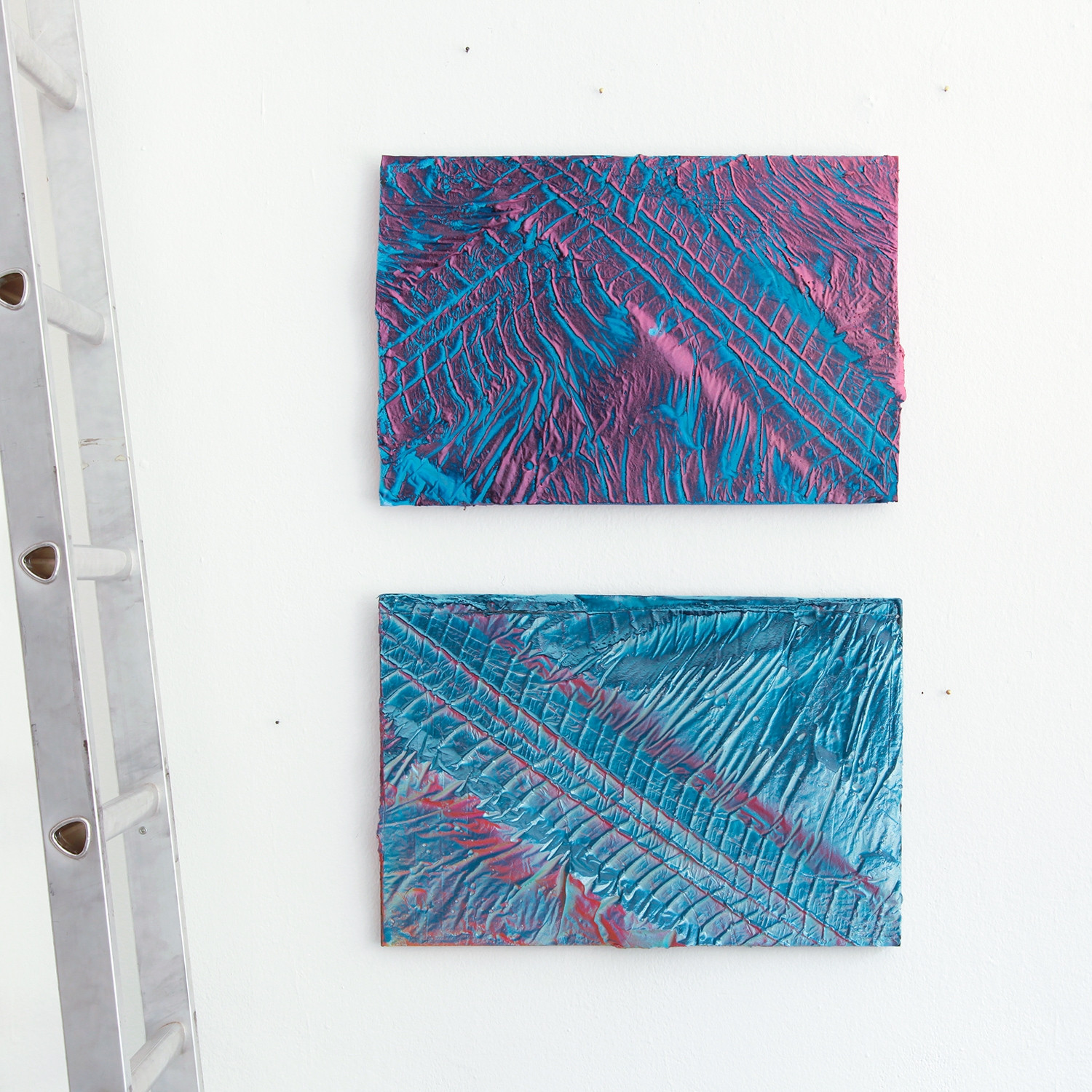 Johannes Popp Sequenz 84, 2023 Material Acryl auf UHPC (Beton) Auflage 1 Maße 40 x 60 cm UNIKAT rückseitig signiert, nummeriert, betitelt und datiert Die neue Art, Kunst zu kaufen Handverlesene, exklusive Editionen Limitierte, signierte Auflagen Top-KünstlerInnen und Rising Stars Schnell registrieren, um Preis und Verfügbarkeit zu sehen. Jetzt kostenlos Mitglied werden Bereits Mitglied? Über das Werk Auf den ersten Blick quillt das scheinbar traditionelle Tafelbild geradezu über vor organischen Strukturen. Doch tatsächlich hat Johannes Popp für seine Werkserie „Sequenz 80-89“ auf dem Parkplatz seines Berliner Ateliers eines der flüchtigsten Alltagszeichen als Ausgangspunkt genommen: Reifenspuren. Durch die ihm eigene Technik, für die er Ultrahigh-Performance-Beton (UHPC) auf engmaschig bespannte Leinwand gießt und sie dann anschließend durchfahren, durchschreiten durchtanzen lässt, schafft er Werke, die mit ihrer enormen Haptik unverwechselbar sind: In einem unserer beiden Skulptur-Bilder scheint das Material den Rahmen förmlich zu sprengen und überrascht mit einer selten gekannten Direktheit. Durch bis zu 40 Schichten Farbauftrag, verarbeitet der Abgänger der Kunstakademie Weißensee sein flüchtiges Rohmaterial in zeitgenössische Bildwelten von einer farbintensiven Wucht, die man so schnell nicht wieder vergisst. Über den Künstler Für Johannes Popp ist die Unterscheidung zwischen Malerei und Skulptur obsolet: „Die Grenzen der Gattungen haben sich aufgelöst“ gibt der Berliner Künstler selbstbewusst zu Protokoll. In den Arbeiten des 1995 in Brandenburg geborenen Popp erübrigt sich die Zuordnung von Materialien zu einer Disziplin von selbst. In für einen so jungen Künstler bewundernswerten Virtuosität thematisiert er buchstäblich den Abdruck der Zeit, wenn er ephemere Phänomene wie das Wirbeln eines live performenden Tänzers, die Reifenspuren eines wendenden Autos in Beton verewigt und damit zu neuer Zeichenhaftigkeit umdeutet. Schon im Entstehungsprozess dieser skulpturalen Malerei sind Zeitverschiebungen Teil des Konzepts: Dem vom Trocknen des Materials bestimmten schnellen Prägen den mit UHP-Beton bestrichenem Malgrund, folgt ein extrem langsamer, sich in Schichten vollziehender Farbauftrag. Anders als die Pioniere dieser gattungsübergreifenden Malerei wie etwa Anselm Kiefer beschwert er seine vom Augenblick gezeichneten Leinwände nicht mit den Wunden des 20. Jahrhunderts, sondern bewahrt sie in ihrer erratischen Schönheit farbensatt für uns auf. Oder wie der Kunsthistoriker Carl Hohrath vor kurzem über seine Arbeit schrieb: „Trotz der erbarmungslos rinnenden Zeit nimmt uns Popp in den Arm und sagt uns: „Etwas bleibt!“ Ausstellungen (Auswahl) 2023 THE DOOR IS ALMOST OPEN @ Warehouse Berlin (group show curated by Johannes Popp) 2022 Diagonale 4 / Transfinity @ Verwalterhaus Berlin; Echoes of Tomorrow @ Villa Heike Berlin; Yet Yet @ Kühlhaus Berlin 2021 Tuning Realitites @ benzinLAB Berlin 2020 U55 @ Berlin Hauptbahnhof 2019 30under30 @ Städtische Galerie Braunschweig 2018 NEW HEROES @ Povvera Gallery Berlin Lesenswerte Artikel / Links Webseite von Johannes Popp Instagram des Künstlers Johannes Popp bei BenzinLab Mehr Kunst entdecken Tony Clough 120 Horizontal Stripes in Slightly Different Colors, 2022 Candida Höfer Elbphilharmonie Hamburg Herzog & De Meuron Hamburg VIII 2016, 2020 Johannes Popp Sequenz 85, 2023 Johannes Popp Sequenz 83, 2023 Johannes Popp Sequenz 89, 2023