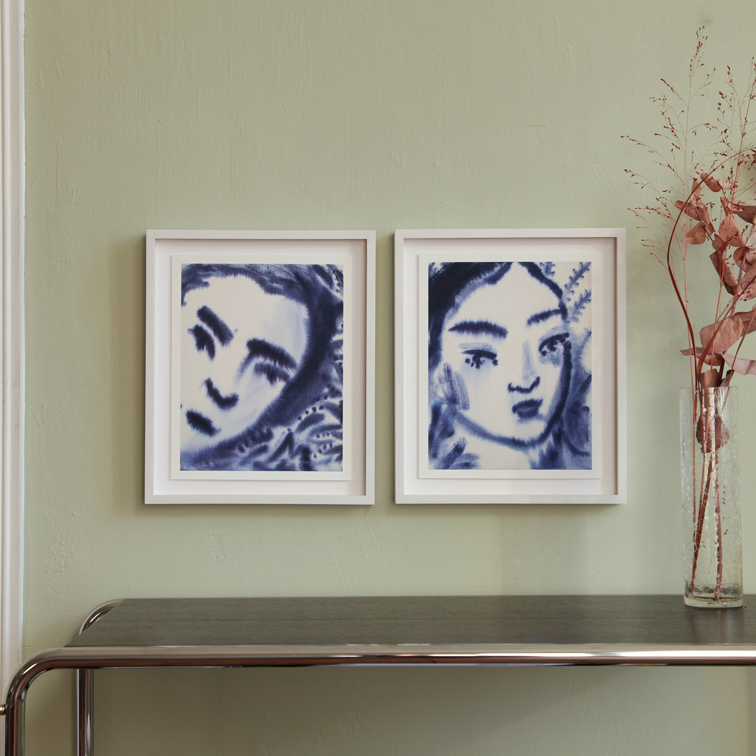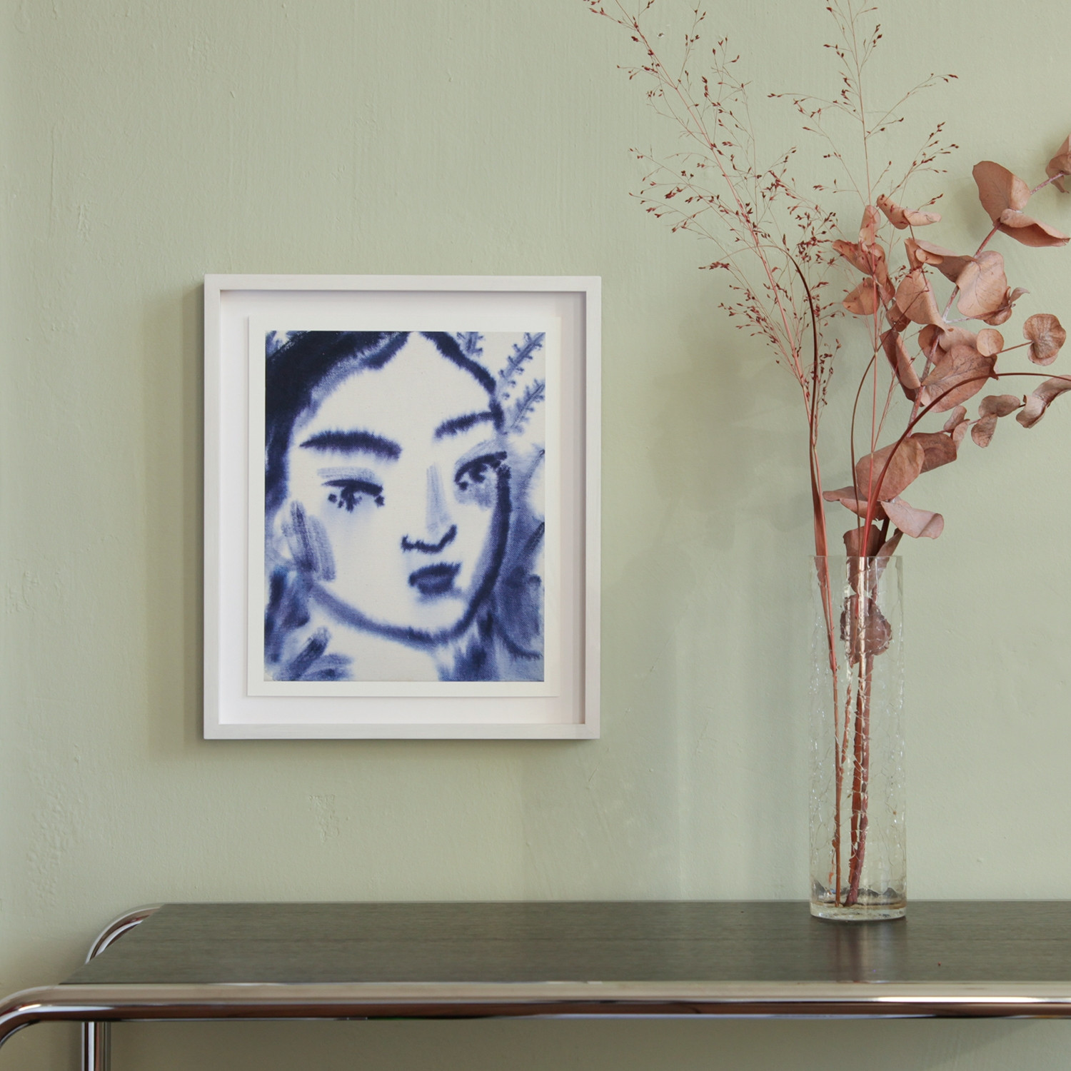 Katharina Stangler Indian, 2021 Material Pigmentdruck auf Etching Rag Auflage 46 Maße 24 x 19 cm (1 cm weißer Blattrand) Auflage 46 verso handsigniert, datiert und nummeriert Details zum Rahmen Handgefertigter titan weiß gewachster Ahorn-Holzrahmen, inkl. 10mm Distanzleiste und Museumsglas. Außenmaße ca. 31,0 x 26,4 cm, mit rückseitiger Aufhängung, staubdicht verschlossen. Die neue Art, Kunst zu kaufen Handverlesene, exklusive Editionen Limitierte, signierte Auflagen Top-KünstlerInnen und Rising Stars Schnell registrieren, um Preis und Verfügbarkeit zu sehen. Jetzt kostenlos Mitglied werden Bereits Mitglied? Über die Künstlerin und die Edition Ihre Maltechnik ist eigenwillig und stilbildend für ihr Werk: Die Künstlerin Katharina Stangler trägt die Pigmente auf eine gewässerte Leinwand auf. Die Farbe – meist Indigo, auf faszinierende Weise changierend, da angemischt aus Magenta, Cyan und Schwarz – zerfließt, lässt die Konturen verschwimmen. Material und Zeit vollenden das Bild. Stanglers Grafikeditionen haben tatsächlich eine ähnliche Anmutung wie die Gemälde. Der Pigmentdruck erlaubt die Herstellung extrem matter Oberflächen, und im Zusammenspiel mit fein strukturiertem Papier wird auch hier ein tiefer, diffuser Farbraum erzeugt – wunderbar nachzuvollziehen in „A Boy’s Face“ und „Indian“. Es sind intime und zugleich universelle Porträts, die uns an die Werke der Expressionist*innen erinnern und uns doch ganz im Hier und Jetzt ansprechen. Katharina Stangler, 1982 in Berlin geboren, war Meisterschülerin an der Kunstakademie Düsseldorf. Seit ihrem Abschluss 2018 sind ihre Werke in zahlreichen Einzel- und Gruppenausstellungen zu sehen. Ausstellungen (Auswahl) Ein Überblick über die seit ihrem Abschluss an der Kunstakademie Düsseldorf entstandenen Werke von Katharina Stangler war 2022 in den Galerieräumen von Fils Fine Arts im Düsseldorfer „Stilwerk“ zu sehen. Ebenfalls in diesem Jahr präsentierte die Braun-Falco Galerie in München die Solo-Schau „Blaue Schatten“. Die Gruppenausstellung „Planet 58 ‒ Absolvent_innen der Kunstakademie Düsseldorf 2018“ mit Arbeiten Stanglers wurde 2019 im Düsseldorfer K21 gezeigt. Lesenswerte Artikel / Links Homepage von Katharina Stangler Instagram-Account der Künstlerin Mehr Kunst entdecken Juan de la Rica Saltadora, 2022 Katharina Stangler A Boy’s Face, 2021 Philip Grözinger Ohne Titel 4, 2022 Philip Grözinger Ohne Titel 3, 2022 Philip Grözinger Ohne Titel 2, 2022 Philip Grözinger Ohne Titel 1, 2022 Stefan Marx, Jonathan Meese, Henning Wagenbreth etc Splendid Isolation Mappe (mit 40 Künstler*innen), 2020