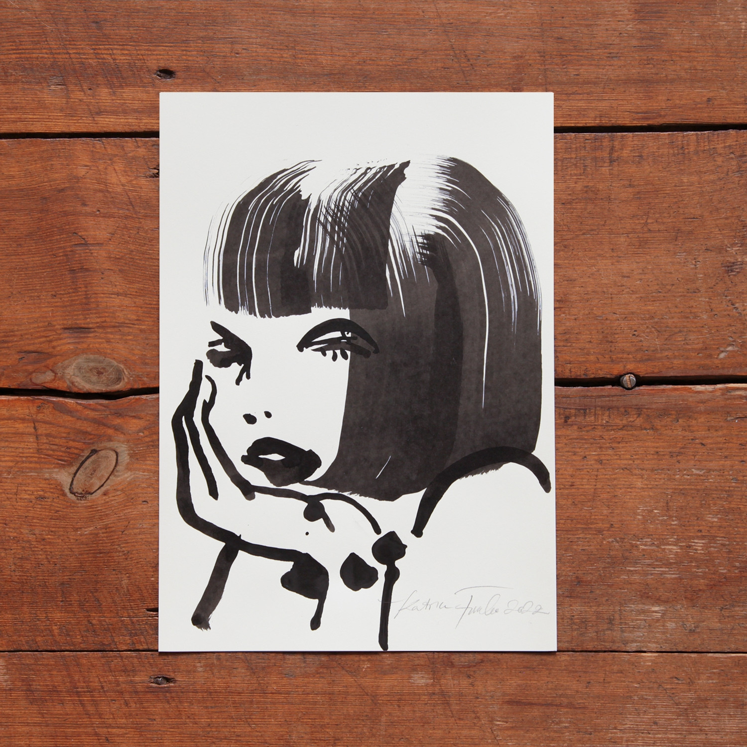 Katrin Funcke The Louise, 2022 Material Tusche auf Papier Auflage 1 Maße 29,7 x 21 cm Unikat signiert und datiert Details zum Rahmen Handgefertigter schwarz lasierter und gewachster Ahorn-Holzrahmen, ca. 34,9 x 26,2 cm, inkl. Distanzleiste, das Werk ist hochgestellt montiert, inkl. Museumsglas und rückseitiger Aufhängung Die neue Art, Kunst zu kaufen Handverlesene, exklusive Editionen Limitierte, signierte Auflagen Top-KünstlerInnen und Rising Stars Schnell registrieren, um Preis und Verfügbarkeit zu sehen. Jetzt kostenlos Mitglied werden Bereits Mitglied? Über die Künstlerin und das Werk Menschen sind das Lieblingsmotiv der Künstlerin und Illustratorin Katrin Funcke (*1970 in Bielefeld). In ihrer signierten Unikat-Porträtserie aus den Jahren 2022/23 verleiht sie den von ihr in Tusche auf Papier skizzierten Frauen liebevolle Titel: „The Bouffant“ trägt die berühmte Jackie-Kennedy-Frisur, „The Parted“ akkuraten Mittelscheitel, „The Stripey“ ein Streifenshirt. Aber es sind nicht nur diese offensichtlichen, äußeren Merkmale, die Funcke hier einfängt. Auch Haltung, Pose, Gesichtsausdruck und Accessoires fixiert sie mit wenigen Strichen – und schafft somit überzeugende Charakterstudien, die vor Lebendigkeit und Coolness nur so sprühen. „Expressiv, rau und elegant. Ich bin sehr glücklich, wenn mir das alles auf einmal gelingt“, so beschreibt Funcke ihr selbst gestecktes Ziel. Bei den Tusche-Köpfen gelingt ihr das, so scheint es zumindest, mit großer Leichtigkeit ‒ auch wenn sie selbst verrät: „Alles, was locker aussieht, ist harte Arbeit.“ Das mag man ihr kaum glauben. Katrin Funcke wurde mehrfach ausgezeichnet, u.a. mit einer Art Director’s Club-Goldmedaille, dem Künstlerinnenpreis des Landes Nordrhein-Westfalen und dem 4. Fashion Illustration and Drawing (FIDA) Award. Sie stellt in zahlreichen Institutionen und Galerien in Deutschland aus. Ausstellungen (Auswahl) „ZU MENSCH – Skizzen und Blicke zurück auf Herbert Grönemeyers Album ‚Mensch‘“ mit Illustrationen von Katrin Funcke ist 2022 im Verlag Antje Kunstmann erschienen. Funcke gehörte zudem 2021 zu den Gewinner*innen des 4. Fashion Illustration and Drawing (FIDA) Award. Drei Jahre zuvor, 2018, zeigte die Galerie Mitte in Bremen in der Ausstellung „Paula ‒ Requiem für eine Freundin“ Werke von Funcke und ihrer Künstler*innengruppe „Bettine“. Lesenswerte Artikel / Links Webseite von Katrin Funcke Katrin Funcke bei Art Act Mehr Kunst entdecken Katrin Funcke The Silent, 2022 Katrin Funcke The Long Bob, 2022 Katrin Funcke The Lunettes, 2022 Katrin Funcke The Shage, 2022 Katrin Funcke The Stripey, 2022 Katrin Funcke The Dotty, 2022