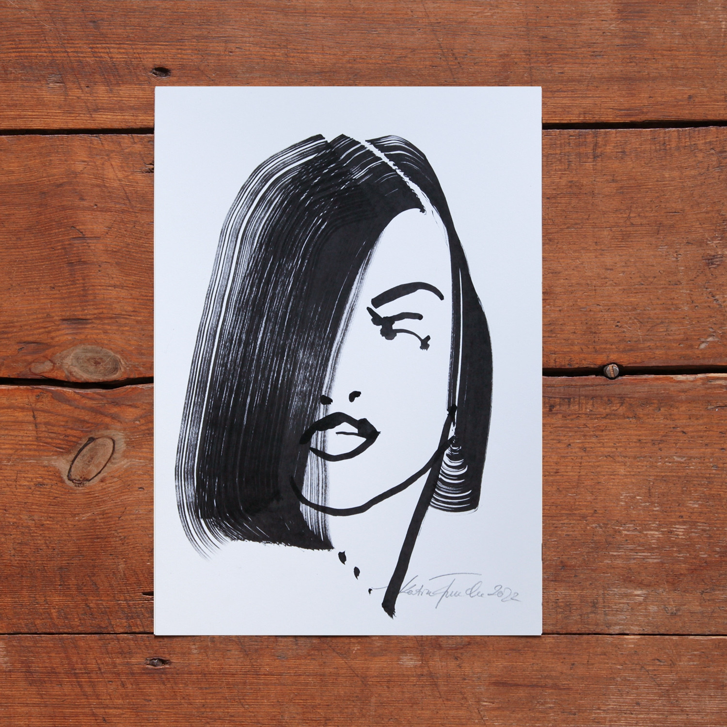 Katrin Funcke The One Eye, 2022 Material Tusche auf Papier Auflage 1 Maße 29,7 x 21 cm Unikat signiert und datiert Details zum Rahmen Handgefertigter schwarz lasierter und gewachster Ahorn-Holzrahmen, ca. 34,9 x 26,2 cm, inkl. Distanzleiste, das Werk ist hochgestellt montiert, inkl. Museumsglas und rückseitiger Aufhängung Die neue Art, Kunst zu kaufen Handverlesene, exklusive Editionen Limitierte, signierte Auflagen Top-KünstlerInnen und Rising Stars Schnell registrieren, um Preis und Verfügbarkeit zu sehen. Jetzt kostenlos Mitglied werden Bereits Mitglied? Über die Künstlerin und das Werk Menschen sind das Lieblingsmotiv der Künstlerin und Illustratorin Katrin Funcke (*1970 in Bielefeld). In ihrer signierten Unikat-Porträtserie aus den Jahren 2022/23 verleiht sie den von ihr in Tusche auf Papier skizzierten Frauen liebevolle Titel: „The Bouffant“ trägt die berühmte Jackie-Kennedy-Frisur, „The Parted“ akkuraten Mittelscheitel, „The Stripey“ ein Streifenshirt. Aber es sind nicht nur diese offensichtlichen, äußeren Merkmale, die Funcke hier einfängt. Auch Haltung, Pose, Gesichtsausdruck und Accessoires fixiert sie mit wenigen Strichen – und schafft somit überzeugende Charakterstudien, die vor Lebendigkeit und Coolness nur so sprühen. „Expressiv, rau und elegant. Ich bin sehr glücklich, wenn mir das alles auf einmal gelingt“, so beschreibt Funcke ihr selbst gestecktes Ziel. Bei den Tusche-Köpfen gelingt ihr das, so scheint es zumindest, mit großer Leichtigkeit ‒ auch wenn sie selbst verrät: „Alles, was locker aussieht, ist harte Arbeit.“ Das mag man ihr kaum glauben. Katrin Funcke wurde mehrfach ausgezeichnet, u.a. mit einer Art Director’s Club-Goldmedaille, dem Künstlerinnenpreis des Landes Nordrhein-Westfalen und dem 4. Fashion Illustration and Drawing (FIDA) Award. Sie stellt in zahlreichen Institutionen und Galerien in Deutschland aus. Ausstellungen (Auswahl) „ZU MENSCH – Skizzen und Blicke zurück auf Herbert Grönemeyers Album ‚Mensch‘“ mit Illustrationen von Katrin Funcke ist 2022 im Verlag Antje Kunstmann erschienen. Funcke gehörte zudem 2021 zu den Gewinner*innen des 4. Fashion Illustration and Drawing (FIDA) Award. Drei Jahre zuvor, 2018, zeigte die Galerie Mitte in Bremen in der Ausstellung „Paula ‒ Requiem für eine Freundin“ Werke von Funcke und ihrer Künstler*innengruppe „Bettine“. Lesenswerte Artikel / Links Webseite von Katrin Funcke Katrin Funcke bei Art Act Mehr Kunst entdecken Nadine Wölk Shut Up (Studie), 2020 Nadine Wölk High Noon II.1, 2019 Nadine Wölk High Noon V (Studie), 2022