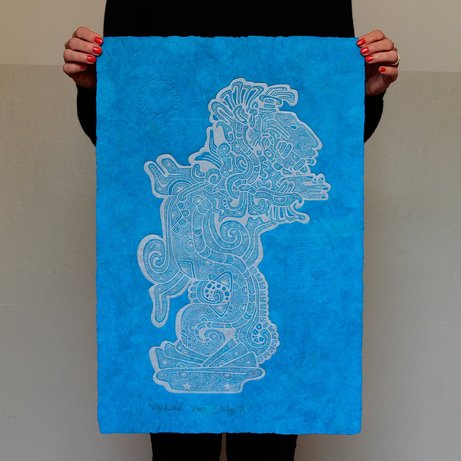 Lottas Kululcan, 2014 Material Holz- und Linolschnitt auf handgeschöpftem mexikanischen Papier Herstellungsmethode handsigniert, nummeriert Auflage 20 Maße 60 x 40 cm Details zum Rahmen hier nicht abgebildet, Rahmenvorschlag: Handgearbeiteter Ahorn-Holzrahmen mit 10mm Distanzleiste, Maße 46,6 x 66,6 cm, Staubdicht verschlossen, inkl. rückseitiger Hängeleiste. Die neue Art, Kunst zu kaufen Handverlesene, exklusive Editionen Limitierte, signierte Auflagen Top-KünstlerInnen und Rising Stars Schnell registrieren, um Preis und Verfügbarkeit zu sehen. Jetzt kostenlos Mitglied werden Bereits Mitglied? Anfrage senden Über den Künstler und die Edition Der mexikanische Künstler Lottas a.k.a. Felipe Espinosa lernte sein Handwerk von den Besten, darunter etwa der renommierte Drucker Alfredo Mereles, ein Mitglied des Taller de Gráfica Popular. Geboren 1973 in Mexico City, lebt Lottas heute in Playa del Carmen. Der Künstler stellt seit 2004 in zahlreichen Gruppen- und Einzelausstellungen in Mexiko wie auch international aus, unter anderem in London und Chicago sowie auf Kunstmessen in Paris und Deutschland. Tiere, mythologische Wesen, Herzen und Totenköpfe – auf Spanisch „cráneos“ – bilden den Kern seiner Bildsprache. Die Editionen sind also: klassische Lottas. Die Holz- und Linolschnitte druckt der Künstler stets auf handgeschöpftem, „amate“ genanntem Regenschirmbaumpapier. Das Handwerk reicht zurück bis in die prähispanische Zeit, wird von spirituellen Oberhäuptern im Rahmen von Ritualen ausgeübt und birgt angeblich magische Eigenschaften. Schaut man auf die Wirkkraft der Muster, angelehnt an die Kunst der Maya und Azteken, sowie der Farben, die Lottas verwendet, dann traut man seinen „cráneos“ einen solchen Zauber auf jeden Fall zu. Lesenswerte Artikel / Links Lottas bei der Ida Victoria Galerie Mehr Kunst entdecken Nadine Wölk Nightlife III. 11 (Unikat), 2019 Laura Bruce From the Blood Meridian Series "Snowblind Horses" (Unikat), 2019 Alexandra Carr meets Paz de la Huerta Paz de la Huerta. The Birds didn't die over the winter, 2013 Lottas Craneo del Azar , 2014 Lottas Cráneo del Maís (Pink), 2014 Lottas Cráneo del Maís (Rot), 2014 Lottas Cráneo del Maís (Grün), 2014