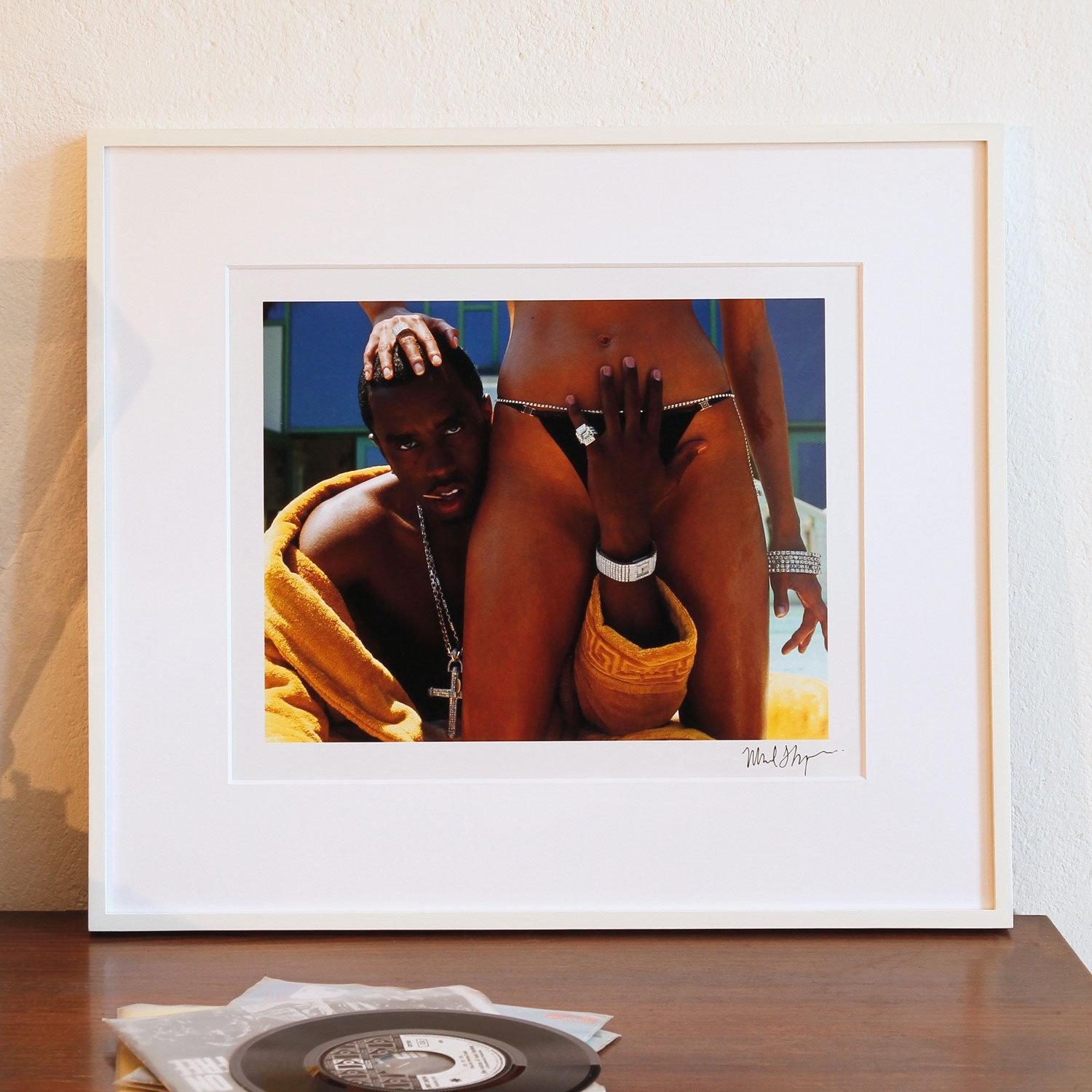 Michael Thompson Sean Combs, Emma Heming, Malibu (2001), 2011 Material C-Print Herstellungsmethode Auf der Vorderseite signiert, rückseitig nummeriert Auflage 50 Maße 25,5 x 43 cm Auf der Vorderseite signiert, rückseitig nummeriert inkl. Katalog Details zum Rahmen Handgefertigter Ahorn-Holzrahmen, inkl. Museumsglas, mit Passepartout, Außenmaße ca. 41,6 x 31,6 cm. Inkl. rückseitiger Hängeleiste, staubdicht verschlossen. Die neue Art, Kunst zu kaufen Handverlesene, exklusive Editionen Limitierte, signierte Auflagen Top-KünstlerInnen und Rising Stars Schnell registrieren, um Preis und Verfügbarkeit zu sehen. Jetzt kostenlos Mitglied werden Bereits Mitglied? Anfrage senden Über die Edition Ups! Was macht Sean Combs auf diesem Foto? Er ist nicht allein. Doch die Dame an seiner Seite ist reduziert auf einen Körperausschnitt und deshalb nicht zu erkennen. Der Titel verrät indes, dass es sich um ein bekanntes Model handelt: „Sean Combs, Emma Heming, Malibu“ (2001). Der Fotograf Michael Thompson hat den berühmten US-amerikanischen Rapper und Musikproduzenten Sean Combs, besser bekannt unter den Pseudonymen Diddy, P. Diddy oder Puff Daddy, zu Beginn der 2000er-Jahre in Malibu gemeinsam mit dessen damaliger Freundin Emma Heming porträtiert. Die ausgefallene Pose des Liebespaares und der gezielte Bildausschnitt machen klar: Hier geht es nur vordergründig um weibliche Schönheit, sondern vielmehr um die Darstellung von Macht und Besitz, Begierde und Leidenschaft, Erotik und Exzentrik zwischen Mann und Frau! Über den Künstler Michael Thompson kennt sie alle, und das bereits seit Jahrzehnten! Die Superstars und Supermodels von heute hat der weltbekannte Fotograf vor die Kameralinse bekommen ‒ Cameron Diaz, Julia Roberts, Cate Blanchett, Mariah Carey, Sting, George Clooney, Matt Damon, um nur einige von ihnen zu nennen. Thompson fotografiert für die führenden Lifestyle-Magazine, darunter „Vogue“, „Vanity Fair“, „GQ“, „Allure“ oder „Details“. Für Werbekampagnen großer Modemarken wie Chanel und Elizabeth Arden übernahm er die Fotoshootings. Bereits als Jugendlicher war der in Washington geborene US-Amerikaner von der Fotografie fasziniert, experimentierte mit dem Equipment seines Vaters. Fotografie studierte Thompson am Brooks Institute of Photography. In New York arbeitete er als Assistent für Irving Penn, den legendären Modefotografen der US-amerikanischen Nachkriegszeit. Thompsons Porträts zeigen Emotionen. Seine Bildkompositionen sind aufregend, berührend, exzentrisch und frech. Der Fotograf lebt und arbeitet in Oregon. Lesenswerte Artikel / Links Webseite des Fotografen Michael Thompson in Welt Online Ein Überblick über Michael Thompsons Schaffen bei pinterest Mehr Kunst entdecken Miriam Vlaming Berlin Babylon Girl, 2019 Tilo Baumgärtel Opposite Day, 2013