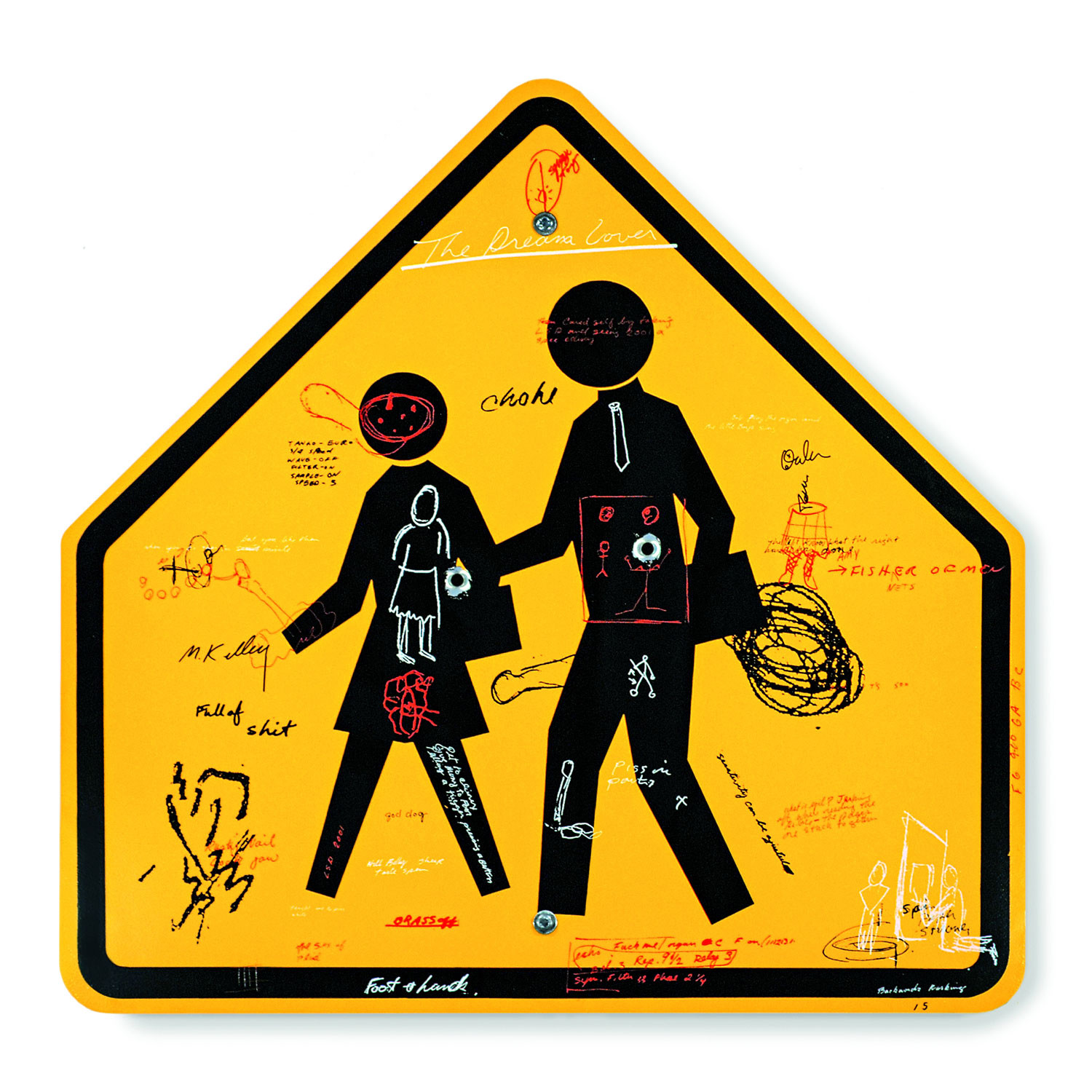 Mike Kelley und Tony Oursler Poetics Country, 1997 Material Siebdruck auf Straßenschild, mit Einschusslöchern Herstellungsmethode von beiden Künstlern vorderseitig signiert, nummeriert. Herausgegeben für die documenta X Auflage 60 Maße ca. 91 x 91 x 3 cm Die neue Art, Kunst zu kaufen Handverlesene, exklusive Editionen Limitierte, signierte Auflagen Top-KünstlerInnen und Rising Stars Schnell registrieren, um Preis und Verfügbarkeit zu sehen. Jetzt kostenlos Mitglied werden Bereits Mitglied? 1977 gründeten die amerikanischen Künstler Mike Kelley und Tony Oursler an der Ostküste der USA eine Punkrockband. Sie war der Beginn ihrer künstlerischen Zusammenarbeit, die bis 1997 reichte und unter dem Titel „Poetics Projects“ bekannt wurde. Aus ebenjenem Jahr stammt auch „Poetics Country“ (1997), ein Beispiel dieser Kooperation. Es entstand aus Anlass der Documenta X in Kassel, an der Kelly und Oursler mit einer anderen Gemeinschaftsarbeit teilnahmen. Der Druck zeigt ein von Einschusslöchern gezeichnetes amerikanisches Straßenschild, das auf einen Zebrastreifen hinweist. Kelley und Oursler haben es mit Texten und Skizzen aus ihren Notizbüchern versehen. „We are attracted to the sign because of its graphic style, a kind of international sign language which was much used in the late 70s ,new wave’ graphic design. The bullet holes place the sign within the local ,aesthetic’ of the Antelope Valley, an area that was the site of our shared rehearsal space.“ Mike Kelley (1954‒2012) gehört zu den bedeutendsten Künstlern der vergangenen Jahrzehnte. Der Kunstkritiker Jim Lewis bezeichnete ihn als den „letzten großen Künstler des 20. Jahrhunderts“. Er war seit Beginn seines Schaffens in den 70er Jahren in den verschiedensten künstlerischen Medien zu Hause, darunter in der Performancekunst und der Malerei, aber er entwarf auch eine Vielzahl großangelegter Installationen. Sub- und popkulturelle Phänomene, der schlechte Geschmack, der Ekel, der Schmutz, das Verdrängte waren die Triebfedern seines Schaffens. Kelley stellte weltweit in Museen aus. Wichtige öffentliche Sammlungen beherbergen sein Werk: etwa das Centre Georges Pompidou, Paris, das Los Angeles County Museum of Art sowie das Metropolitan Museum of Art, das Museum of Modern Art und das Solomon R. Guggenheim Museum, New York. Tony Oursler, geboren 1957, lebt und arbeitet in New York City. Er ist bekannt für seine Kollaborationen mit anderen Künstlern, wie etwa mit der Band „Sonic Youth“, dem Architekten Rem Kohlhaas oder dem Sänger David Bowie. Als Video-, Multimedia- und Installationskünstler leistete er in den 80er Jahren in New York Pionierarbeit. Er hinterfragte die Medien Film und Video: Wie tragen die Bilderfluten dazu bei, den menschlichen Körper zu negieren? Oursler gab dem zweidimensionalen Bewegtbild mit seinen skulpturalen Dummies eine dritte Dimension. Ende der 80er Jahre entstanden seine eigenartigen, phantasma-artigen Gebilde, die ihn berühmt machten. Beispiele seines Werks werden in wichtigen öffentlichen Sammlungen gezeigt: etwa dem Hirshhorn Museum and Sculpture Garden, Washington, dem Centre Georges Pompidou, Paris, dem Museum of Modern Art, New York, oder dem ZMK, Karlsruhe. Lesenswerte Artikel / Links Website des Künstlers Mike Kelley Website des Künstlers Tony Oursler Aktuelle Ausstellung von Mike Kelley bei Galerie Hauser & Wirth, Los Angeles Aktuelle Ausstellung von Tony Oursler in der Pinacoteca Giovanni e Marella Agnelli in Turin Informationen zum Projekt „The Poetics Project“ Mehr Kunst entdecken Malteser-Mappe mit 8 Künstler*innen Malteser Edition, (Tony Cragg, Isa Genzken, Christian Jankowski, Olaf Nicolai, Robin Rhode, Thomas Scheibitz, Rosemarie Trockel, Jorinde Voigt) , 2013/14 William Kentridge Atlas Confession, 2003 Olaf Hajek The Flower, 2017