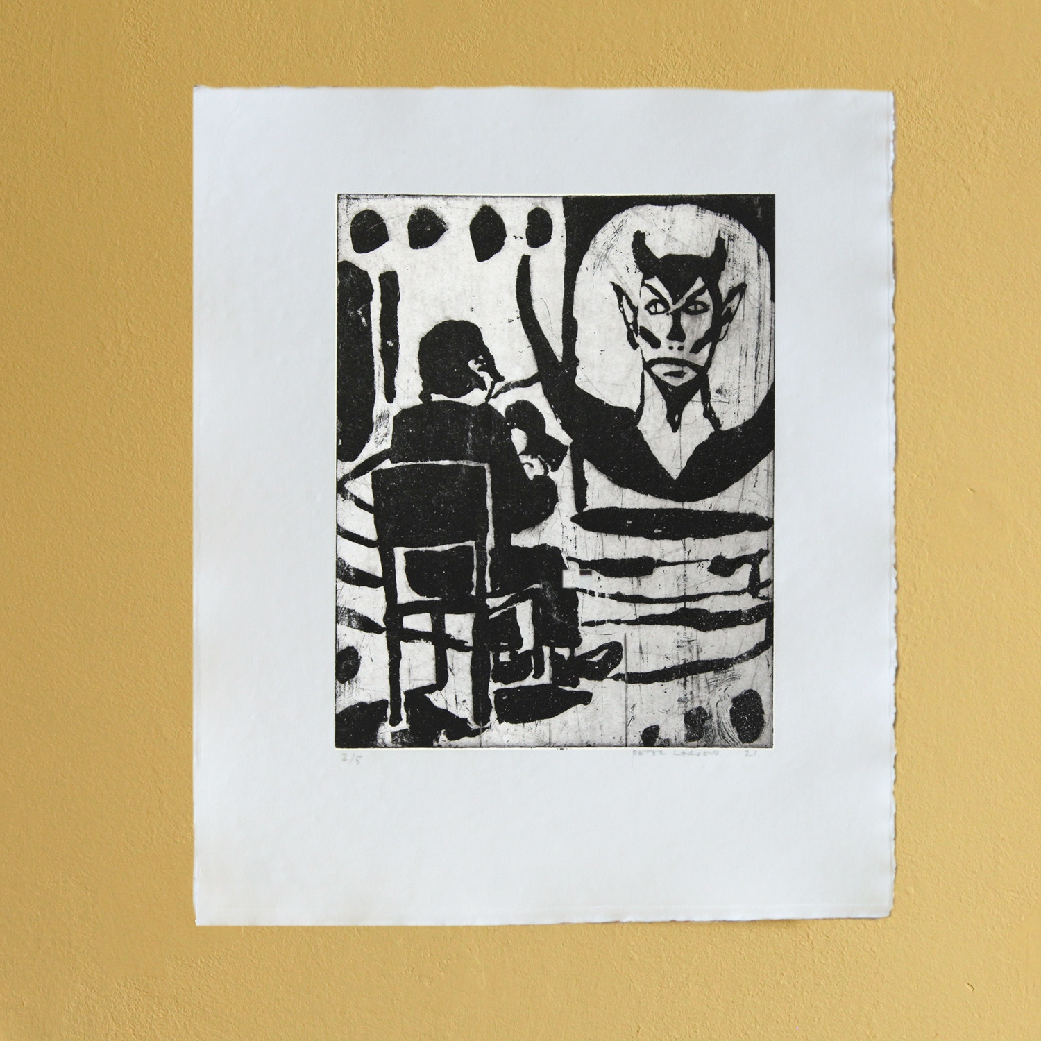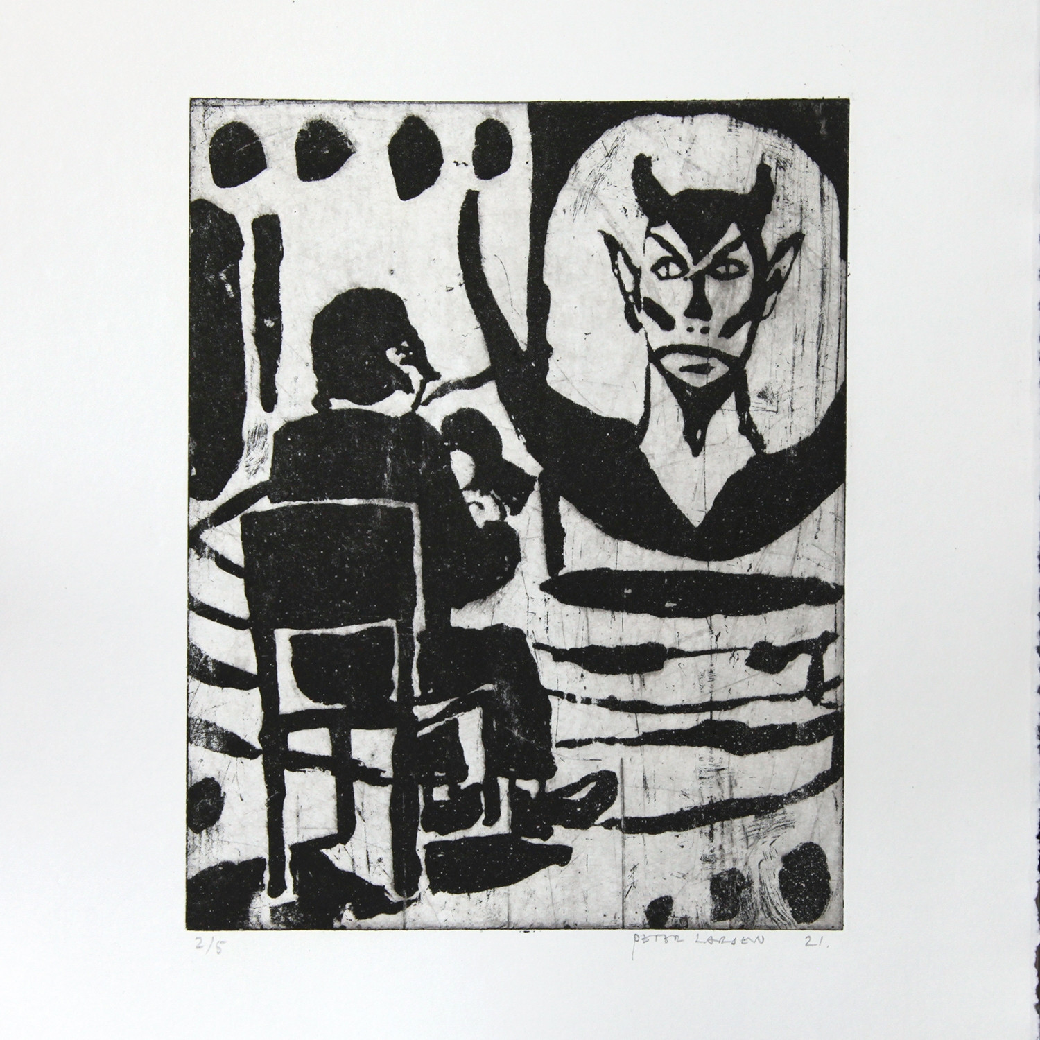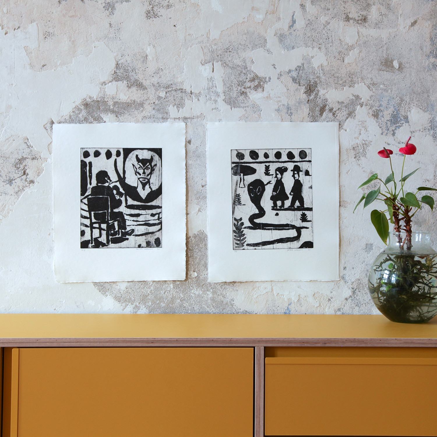 Peter Larsen Ohne Titel (1), 2021 Material Linoldruck auf 300 g bkf Rives Bütten Papier Auflage 50 Maße 32,5 x 38 cm Auflage 5 vorderseitig signiert, nummeriert und datiert Details zum Rahmen Handgefertigter, schwarz gewachster Ahorn-Holzrahmen, 10mm Distanzleiste, Außenmaße ca. 37,7 x 44,2 cm, inkl. Normalglas und rückseitiger Aufhängung Die neue Art, Kunst zu kaufen Handverlesene, exklusive Editionen Limitierte, signierte Auflagen Top-KünstlerInnen und Rising Stars Schnell registrieren, um Preis und Verfügbarkeit zu sehen. Jetzt kostenlos Mitglied werden Bereits Mitglied? Über den Künstler und die Edition „Somehow caught between two worlds, as if awake but stuck in a dream“, so beschreibt die Kopenhagener Galerie Bricks die Werke von Peter Larsen. Und tatsächlich entführen uns die vier signierten und nummerierten Schwarz-Weiß-Linoldrucke „o.T.“ (2021) des dänischen Künstlers in surreale Bilderwelten. Der Teufel, die Schlange, die Chimäre oder auch der Mond und ein Augenpaar – Larsens Arbeiten sind kunstgeschichtlich und mythologisch aufgeladen. Darüber gelingt ihnen ein wundersamer Spagat: Die figurativen Szenen wirken gleichermaßen aus der Zeit gefallen wie absolut gegenwärtig. Menschheitsthemen werden hier verhandelt, mehr noch: alles, was zwischen Himmel, Hölle und Erde passt. Dabei ist Larsen auch ein Meister der Form, der sich allerdings nie in seinem Können verliert, weil er um die Kraft unserer Gedanken weiß. Peter Larsen graduierte 2013 an der Royal Danish Academy of Fine Arts. Seine Werke sind in zahlreichen Einzel- und Gruppenausstellungen in Dänemark wie auch auf internationaler Ebene u.a. in London und Belgrad zu sehen. Ausstellungen (Auswahl) Aktuell sind Werke Peter Larsens in einer Doppelausstellung mit Mugi Takei in der Galerie Pulp in Holyoke (Mass.) zu sehen. Zudem werden Arbeiten von ihm derzeit unter dem Titel „Why the Long Face“ bei FRMD in London gezeigt. „Hocus Pocus Therapy“ hieß die Soloschau des Künstlers, die 2022 in der Galerie Bricks in Kopenhagen stattfand. Lesenswerte Artikel / Links Instagram-Account des Künstlers Künstlerseite von Peter Larsen bei Galerie Bricks, Kopenhagen Mehr Kunst entdecken Christiane Wöhler Möwenmädchen, 2013 Rose Wylie Things around the house IV, 2016 Juan de la Rica Saltadora, 2022 Bettina Krieg EASE, 2022 Peter Larsen Ohne Titel (2), 2021 Peter Larsen Ohne Titel (3), 2021 Peter Larsen Ohne Titel (4), 2021 Peter Larsen Ohne Titel (5), 2021 Peter Larsen Ohne Titel (6), 2021