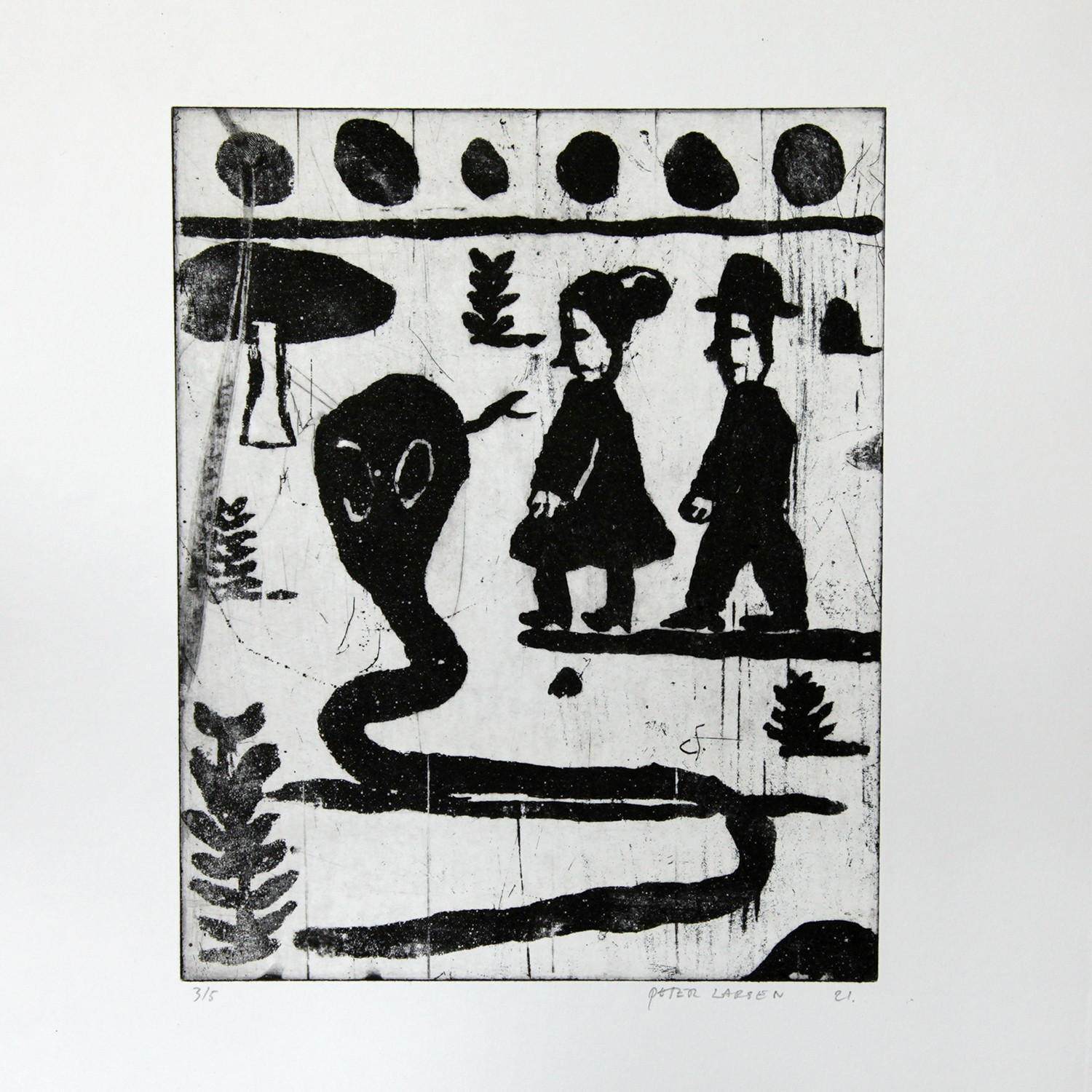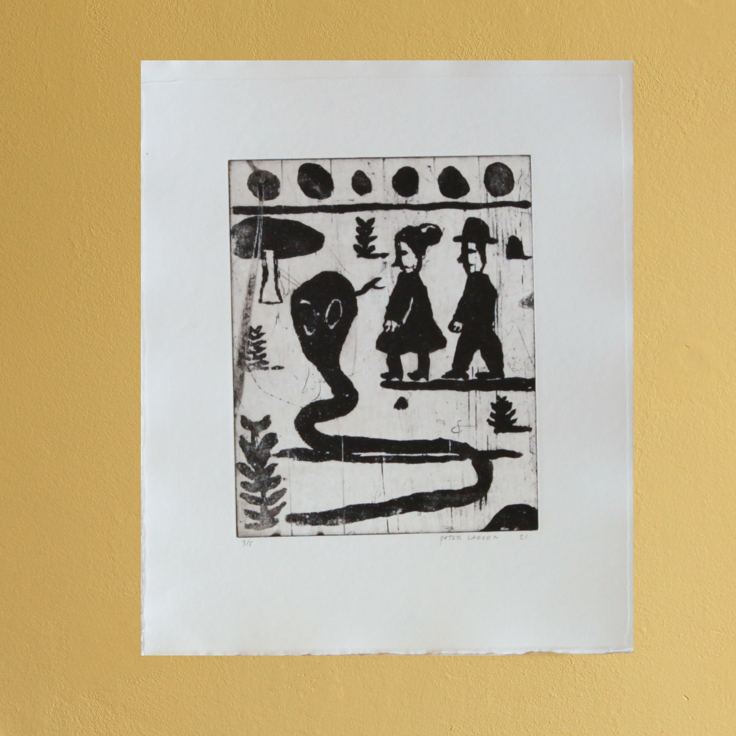 Peter Larsen Ohne Titel (2), 2021 Material Linoldruck auf 300 g bkf Rives Bütten Papier Auflage 50 Maße 32,5 x 38 cm Auflage 5 vorderseitig signiert, nummeriert und datiert Details zum Rahmen Handgefertigter, schwarz gewachster Ahorn-Holzrahmen, 10mm Distanzleiste, Außenmaße ca. 37,7 x 44,2 cm, inkl. Normalglas und rückseitiger Aufhängung Die neue Art, Kunst zu kaufen Handverlesene, exklusive Editionen Limitierte, signierte Auflagen Top-KünstlerInnen und Rising Stars Schnell registrieren, um Preis und Verfügbarkeit zu sehen. Jetzt kostenlos Mitglied werden Bereits Mitglied? Über den Künstler und die Edition „Somehow caught between two worlds, as if awake but stuck in a dream“, so beschreibt die Kopenhagener Galerie Bricks die Werke von Peter Larsen. Und tatsächlich entführen uns die vier signierten und nummerierten Schwarz-Weiß-Linoldrucke „o.T.“ (2021) des dänischen Künstlers in surreale Bilderwelten. Der Teufel, die Schlange, die Chimäre oder auch der Mond und ein Augenpaar – Larsens Arbeiten sind kunstgeschichtlich und mythologisch aufgeladen. Darüber gelingt ihnen ein wundersamer Spagat: Die figurativen Szenen wirken gleichermaßen aus der Zeit gefallen wie absolut gegenwärtig. Menschheitsthemen werden hier verhandelt, mehr noch: alles, was zwischen Himmel, Hölle und Erde passt. Dabei ist Larsen auch ein Meister der Form, der sich allerdings nie in seinem Können verliert, weil er um die Kraft unserer Gedanken weiß. Peter Larsen graduierte 2013 an der Royal Danish Academy of Fine Arts. Seine Werke sind in zahlreichen Einzel- und Gruppenausstellungen in Dänemark wie auch auf internationaler Ebene u.a. in London und Belgrad zu sehen. Ausstellungen (Auswahl) Aktuell sind Werke Peter Larsens in einer Doppelausstellung mit Mugi Takei in der Galerie Pulp in Holyoke (Mass.) zu sehen. Zudem werden Arbeiten von ihm derzeit unter dem Titel „Why the Long Face“ bei FRMD in London gezeigt. „Hocus Pocus Therapy“ hieß die Soloschau des Künstlers, die 2022 in der Galerie Bricks in Kopenhagen stattfand. Lesenswerte Artikel / Links Instagram-Account des Künstlers Künstlerseite von Peter Larsen bei Galerie Bricks, Kopenhagen Mehr Kunst entdecken Juan de la Rica Saltadora, 2022 Bettina Krieg EASE, 2022 Peter Larsen Ohne Titel (1), 2021 Peter Larsen Ohne Titel (3), 2021 Peter Larsen Ohne Titel (4), 2021 Peter Larsen Ohne Titel (5), 2021 Peter Larsen Ohne Titel (6), 2021