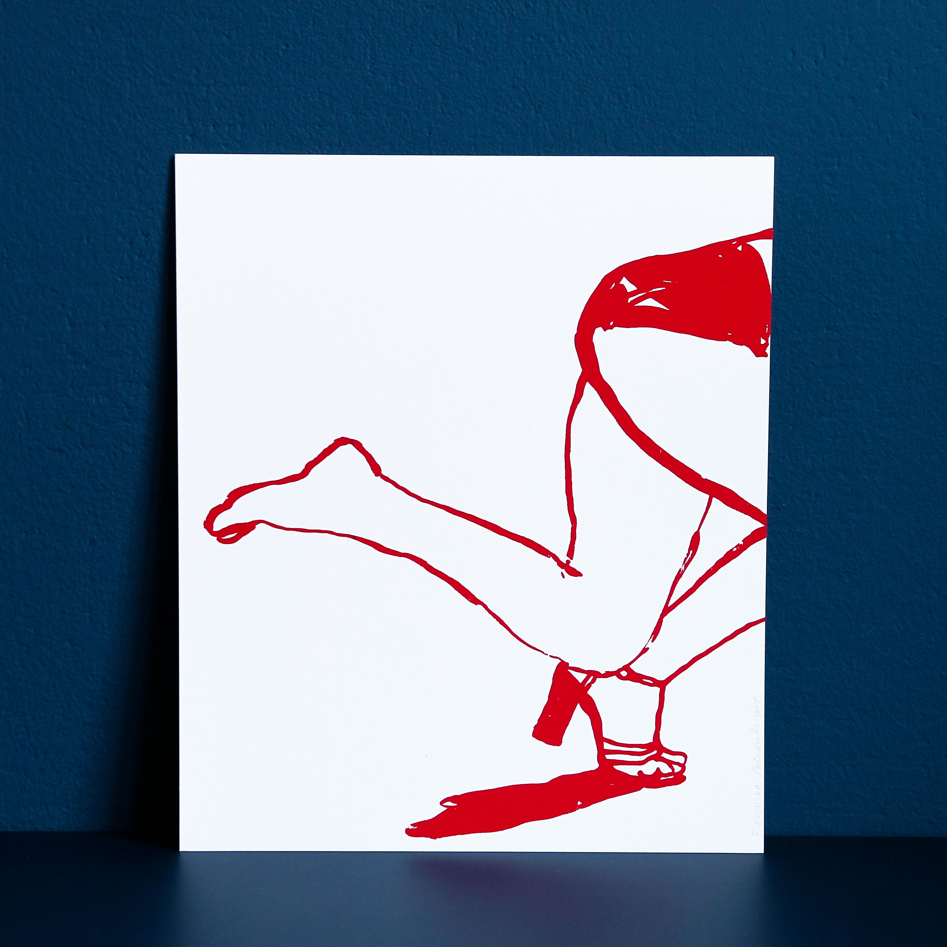 „Rougir“, deutsch „erröten“, so heißt eine ganze Serie von Siebdrucken der Künstlerin Françoise Pétrovitch. Mit der Grundfarbe Rot, einer Farbe, die Emotionen und Gefahr symbolisiert, wurde diese Arbeit gedruckt. Weiß ist die zweite Hauptfarbe des Bildes, nicht nur als Hintergrund.