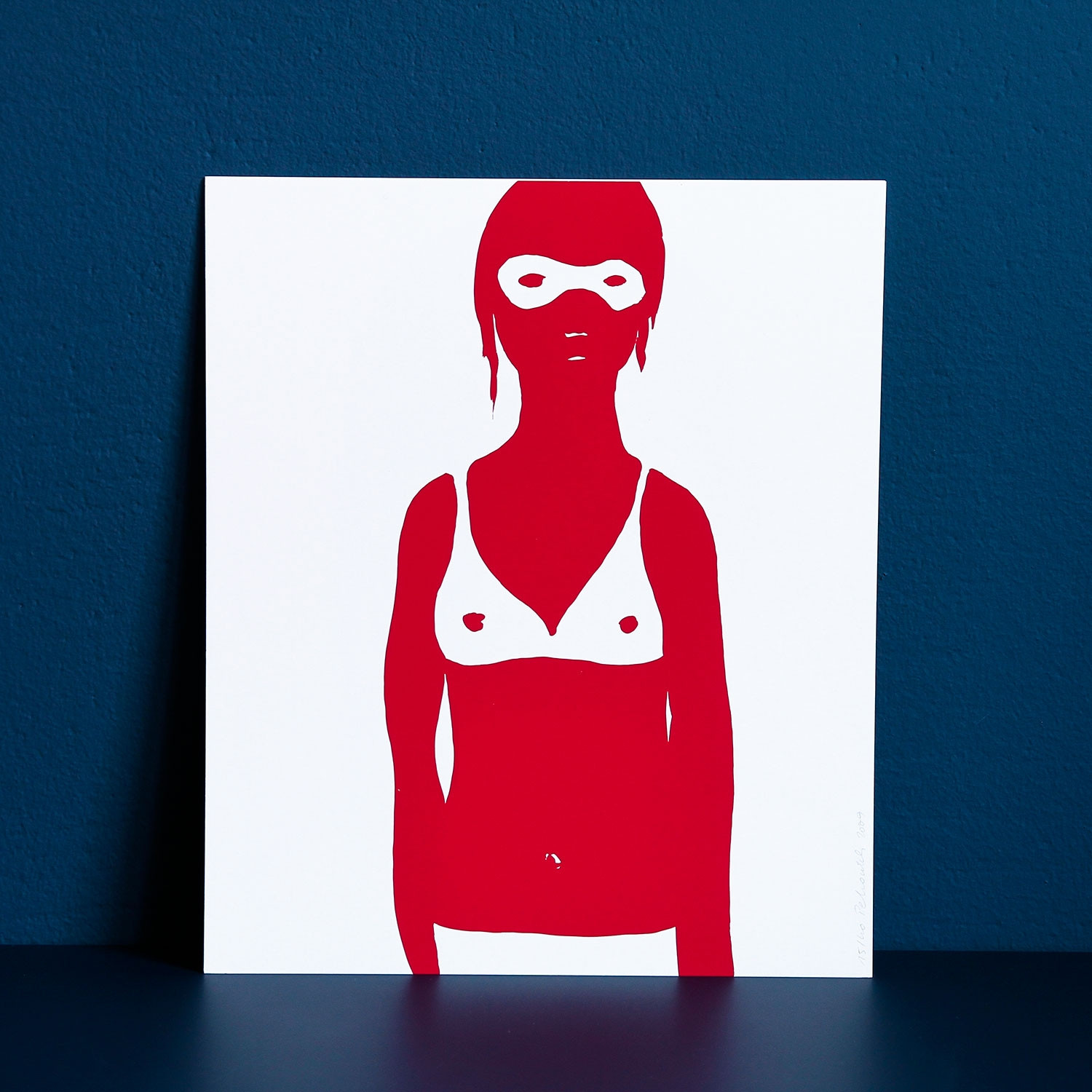 „Rougir“, deutsch „erröten“, so heißt eine ganze Serie von Siebdrucken der Künstlerin Françoise Pétrovitch. Mit der Grundfarbe Rot, einer Farbe, die Emotionen und Gefahr symbolisiert, wurde diese Arbeit gedruckt. Weiß ist die zweite Hauptfarbe des Bildes, nicht nur als Hintergrund.