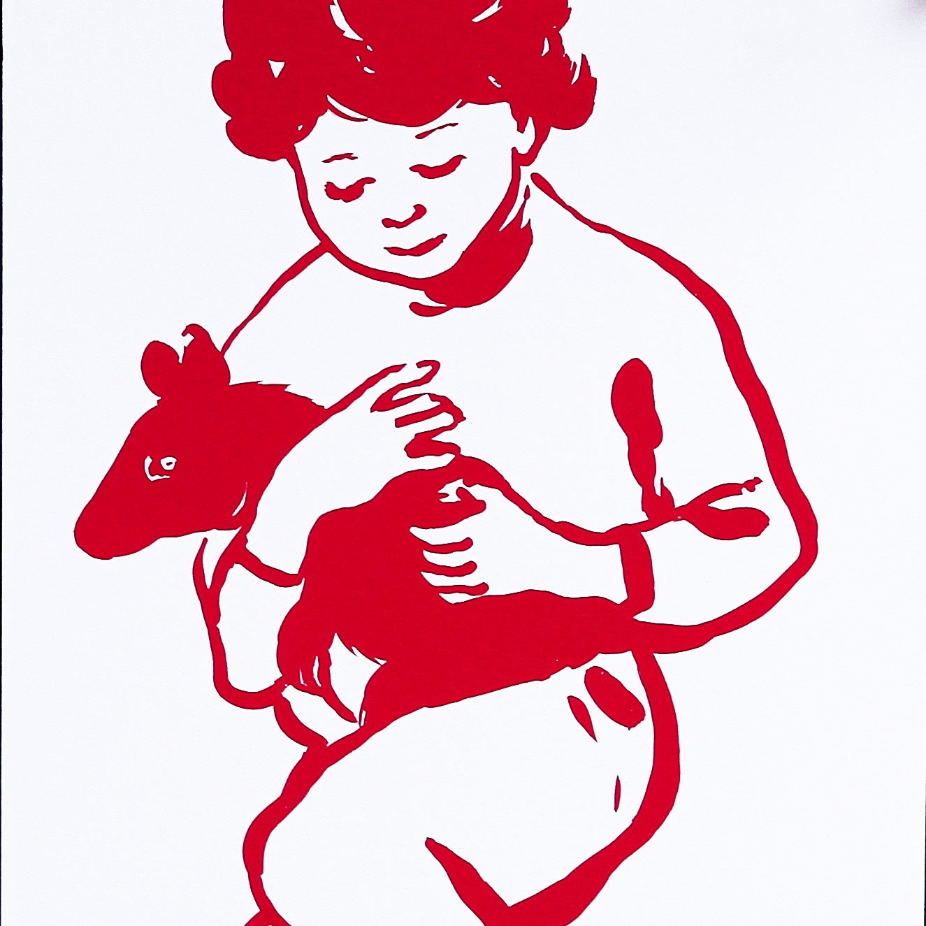 „Rougir“, deutsch „erröten“, so heißt eine ganze Serie von Siebdrucken der Künstlerin Françoise Pétrovitch. Mit der Grundfarbe Rot, einer Farbe, die Emotionen und Gefahr symbolisiert, wurde diese Arbeit gedruckt. Weiß ist die zweite Hauptfarbe des Bildes, nicht nur als Hintergrund.