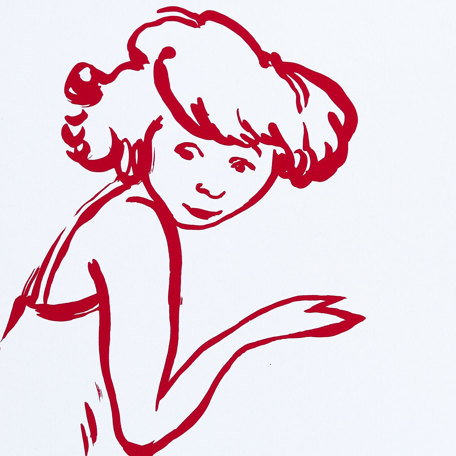 „Rougir“, deutsch „erröten“, so heißt eine ganze Serie von Siebdrucken der Künstlerin Françoise Pétrovitch. Mit der Grundfarbe Rot, einer Farbe, die Emotionen und Gefahr symbolisiert, wurde diese Arbeit gedruckt. Weiß ist die zweite Hauptfarbe des Bildes, nicht nur als Hintergrund.