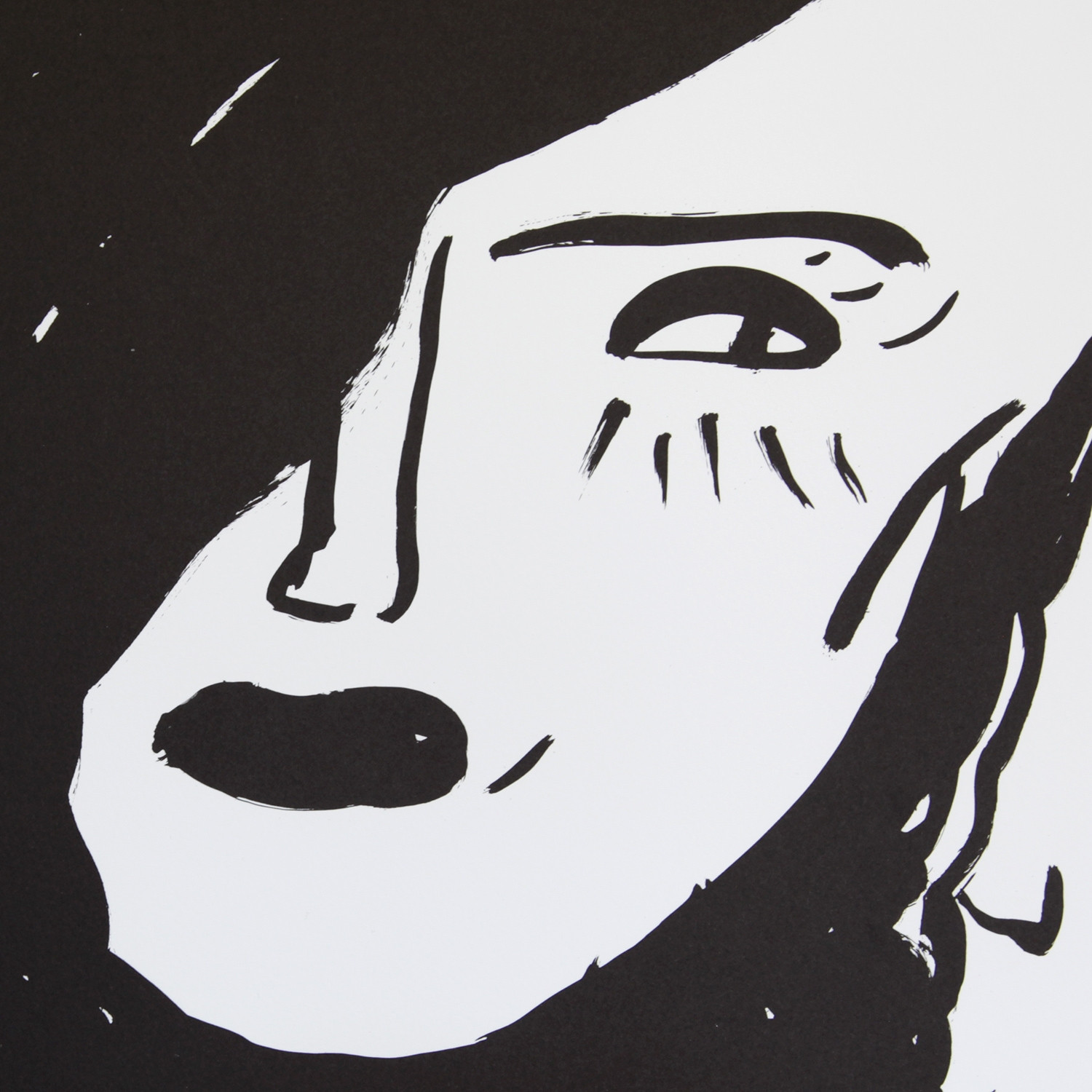 „The whole business about being an artist is you don’t have to do what you’re told to do. There are no rules.“ Das sagte Rose Wylie 2020 in einem Interview. Und in ihrer Kunst ist dieser Freiheitsgedanke augenscheinlich verwirklicht. Die Arbeiten der britischen Künstlerin wirken unmittelbar, ihre Lebendigkeit springt uns an. In ihrer Lithografieserie „Things around the House“ von 2016 zeigt sich dieses Spielerische, auch in Abgrenzung zum Zögerlichen, zum Konzeptuellen. Ganz unterschiedlich gestimmte Frauen, Insekten, teils flatternd, ein krabbelndes Spinnentier, eine Doppeltür mit Fenstern, geschlossen – Wylie konzentriert sich auf die Essenz von Dingen und Menschen, auf das, was ihr mehr oder weniger zufällig begegnet, wie es sich ihr zeigt. Zwei ihrer Fundgruben sind ihr Haus und ihre Umgebung in Kent. 1934 dort geboren, ist sie bis heute der Grafschaft treu geblieben. Sie begann früh zu malen, setzte lange aus, um ihre Kinder großzuziehen, begann erneut. Und nun hat sie Erfolg, großen, sehr späten Erfolg. Wylie scheint das nicht zu kümmern: „Suddenly, it all came together“, meint sie, „but the work is no different, and I’m no different.“