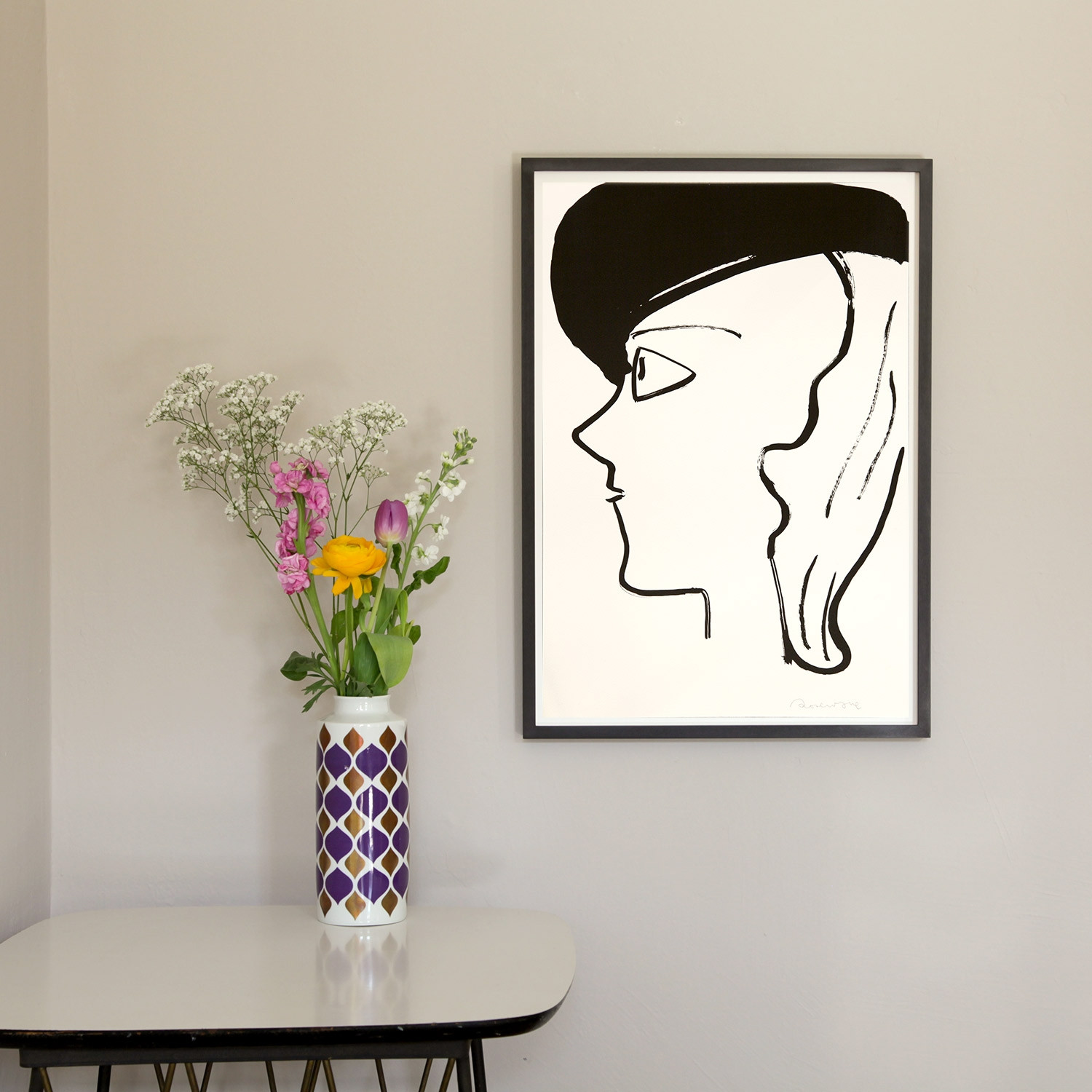 „The whole business about being an artist is you don’t have to do what you’re told to do. There are no rules.“ Das sagte Rose Wylie 2020 in einem Interview. Und in ihrer Kunst ist dieser Freiheitsgedanke augenscheinlich verwirklicht. Die Arbeiten der britischen Künstlerin wirken unmittelbar, ihre Lebendigkeit springt uns an. In ihrer Lithografieserie „Things around the House“ von 2016 zeigt sich dieses Spielerische, auch in Abgrenzung zum Zögerlichen, zum Konzeptuellen. Ganz unterschiedlich gestimmte Frauen, Insekten, teils flatternd, ein krabbelndes Spinnentier, eine Doppeltür mit Fenstern, geschlossen – Wylie konzentriert sich auf die Essenz von Dingen und Menschen, auf das, was ihr mehr oder weniger zufällig begegnet, wie es sich ihr zeigt. Zwei ihrer Fundgruben sind ihr Haus und ihre Umgebung in Kent. 1934 dort geboren, ist sie bis heute der Grafschaft treu geblieben. Sie begann früh zu malen, setzte lange aus, um ihre Kinder großzuziehen, begann erneut. Und nun hat sie Erfolg, großen, sehr späten Erfolg. Wylie scheint das nicht zu kümmern: „Suddenly, it all came together“, meint sie, „but the work is no different, and I’m no different.“