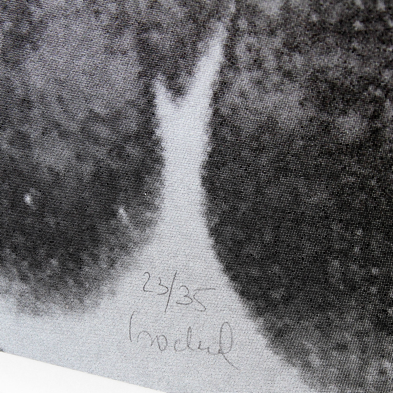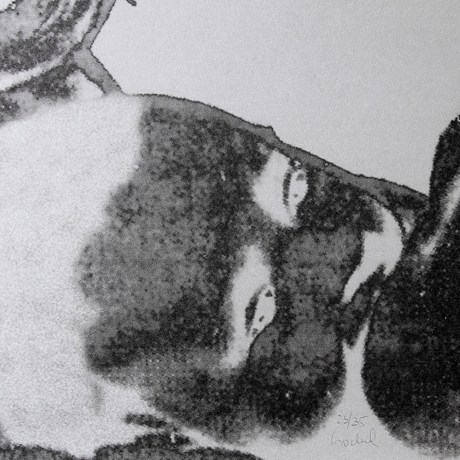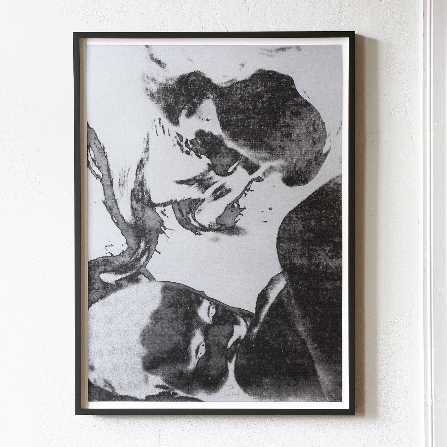 Rosemarie Trockel Ohne Titel, 1995 Material Siebdruck auf Karton Auflage 35 Maße 84 x 59,4 cm Auflage 35 mit e.a. nummeriert und signiert Details zum Rahmen Handgefertigter, umbragrauer Holzrahmen mit den Außenmaßen: 65,2 x 89,8 cm, 10mm Distanzleiste, inkl. rückseitiger Aufhängung Die neue Art, Kunst zu kaufen Handverlesene, exklusive Editionen Limitierte, signierte Auflagen Top-KünstlerInnen und Rising Stars Schnell registrieren, um Preis und Verfügbarkeit zu sehen. Jetzt kostenlos Mitglied werden Bereits Mitglied? Über die Edition Dass die „Wollbilder“ zu ihrem Markenzeichen geworden sind, darüber ist Rosemarie Trockel selbst nicht besonders glücklich. Weiblichkeit und Frauenstereotype sind dennoch wiederkehrende Themen in ihrem Werk. Interessant ist vor diesem Hintergrund die Selbstbefragung beim Anblick ihrer signierten Serigrafie aus dem Jahr 1995. Im Charakter an ein Fotonegativ erinnernd, umgibt die dargestellte Szenerie etwas Geheimnisvolles. Im Bild zu sehen ist unverkennbar eine Person. Doch wen zeigt Rosemarie Trockel hier, und vor allem: in welcher Situation? Welche Gefühle ruft die Gesamtkomposition in uns hervor? Da uns die Künstlerin die Deutungshoheit überlässt, geraten wir auf subtile Art und Weise in einen Dialog mit unseren eigenen Emotionen. Über die Künstlerin Sie ist eine der bedeutendsten und vielseitigsten deutschen KünstlerInnen überhaupt: Rosemarie Trockel, die in den 70er Jahren erst Anthropologie, Theologie und Mathematik studierte, bevor sie zum Kunst- und Designstudium nach Köln wechselte, fertigt Skulpturen, Zeichnungen, Installationen und Objekte, die aus dem Rahmen fallen – unvorhersehbar, rätselhaft und lebendig. Ihre industriell hergestellten „Wollbilder“ mit eingewebten Logos vom urdeutschen Wollsiegel bis zum Playboy-Bunny haben Rosemarie Trockel in den 80er Jahren bekannt gemacht. Aufsehen erregte 1997 auf der documenta X ihre Arbeit „Haus für Schweine und Menschen“, 1999 war sie die erste Künstlerin im Deutschen Pavillon auf der Biennale Venedig und international stellte sie u. a. im MoMA in New York, in Boston und Chicago aus. Doppelbödige Inhalte, voller listiger Provokationen und oftmals verdeckter Abgründe – Rosemarie Trockel macht es ihrem Publikum nie leicht, und zugleich ist ihre Kunst viel zu spannend und emotional, als dass man sich nicht auf eine Auseinandersetzung mit ihr einlassen möchte. Ausstellungen (Auswahl) 2015, Märzôschnee ûnd Wiebôrweh sand am Môargô niana më, Kunsthaus Bregenz 2014, Rosemarie Trockel, Aspen Art Museum 2013, A Cosmos, Serpentine Gallery London 2012, Tea Party Pavillon, Documenta 13 Kassel 2010, Verflüssigung der Mutter, Kunsthalle Zürich 2008, Favourite Things, Donald Young Gallery Chicago 2005, Post-Menopause, Museum Ludwig Köln 2000, Drawings, Centre Pompidou Paris 1998, Werkgruppen: 1986 – 1998, Kunsthalle Hamburg Lesenswerte Artikel / Links Rosemarie Trockel bei Sprüth Magers Beitrag vom Bayrischen Fernsehen zur Trockel-Ausstellung in der Kunsthalle Bregenz (2015) Die New York Times über Trockels Ausstellung im New Museum Der Guardian berichtet über Trockels Schau in der Serpentine Gallery, London Eines der raren Interviews mit der Künstlerin, erschienen im „Artforum“-Magazin (2003) Artikel in der FAZ: Trockel in New York Artikel in der FAZ: Rosemarie Trockel zum Sechzigsten Mehr Kunst entdecken A.R. Penck Fortschritt durch Integration, 1992 Candida Höfer Elbphilharmonie Hamburg Herzog & De Meuron Hamburg VIII 2016, 2020 Per Adolfsen Untitled, I, 2022 Coco Kühn Vierheit, verletzt, vergoldet, 2023 Janina Roider helio_final_01.psd, 2023, 2023