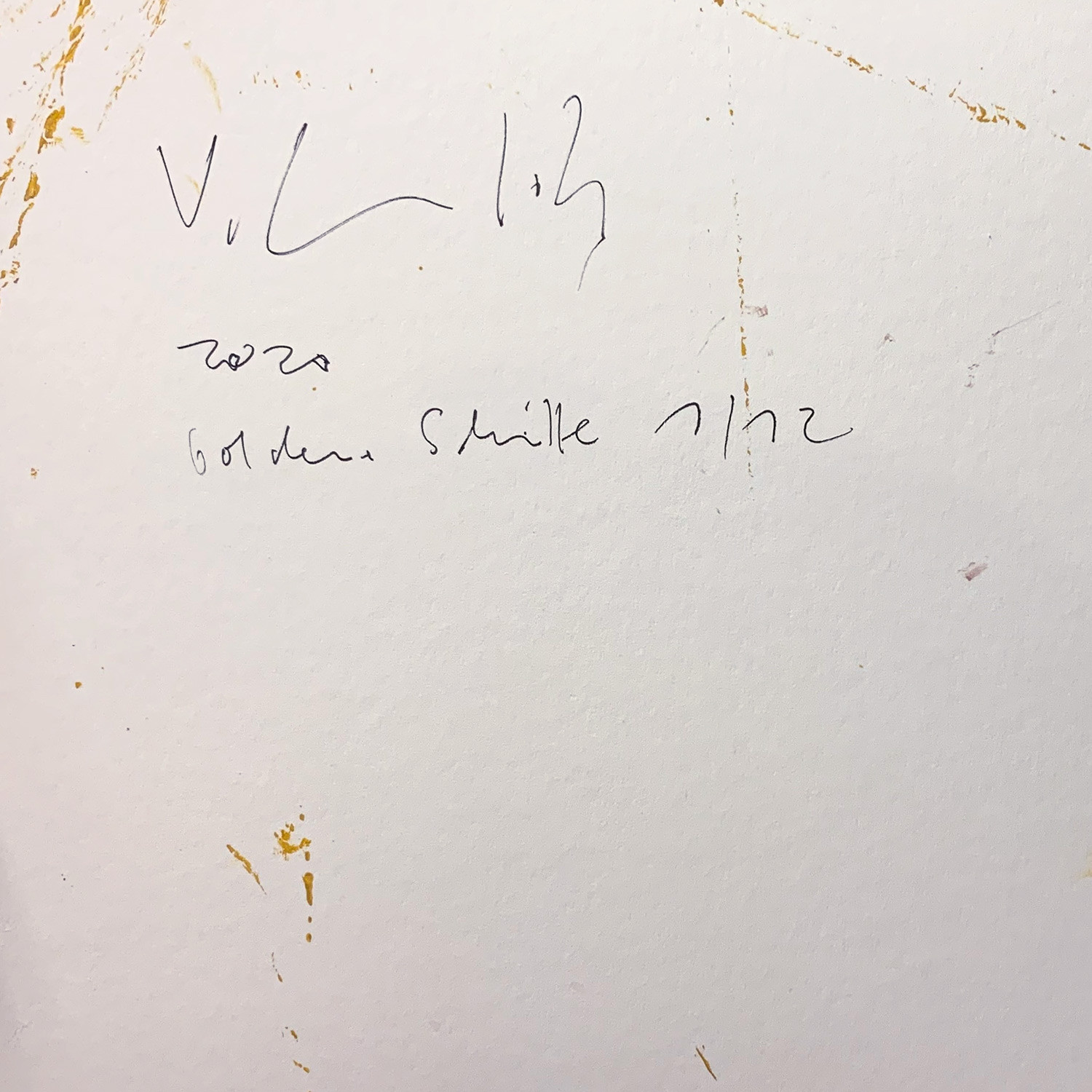 Via Lewandowsky Goldene Schnitte (Bis zur letzten Faser), 2020 Material Raufasertapete vergoldet und entfasert, Serie mit Unikatcharakter Herstellungsmethode rückseitig signiert und nummeriert Auflage 12 Maße 24 x 36 cm Auflage 12 + 3 A.P. Mit A.P. gekennzeichnet Details zum Rahmen Handgefertigter dreifach lasierter und gewachster Ahorn-Holzrahmen, inkl. 30mm Distanzleiste, die Arbeit ist hochgestellt montiert, Außenmaße ca. 37 x 49 cm inkl. Normalglas und rückseitiger Aufhängung, staubdicht verschlossen. Beigefügte Späne sind in einer Tüte an der Rückwand des Rahmens befestigt. Die neue Art, Kunst zu kaufen Handverlesene, exklusive Editionen Limitierte, signierte Auflagen Top-KünstlerInnen und Rising Stars Schnell registrieren, um Preis und Verfügbarkeit zu sehen. Jetzt kostenlos Mitglied werden Bereits Mitglied? Über die Edition „Die wie eine kunstvolle japanische Papierarbeit aussehende Tapete der Marke Erfurt deutet auf einen einsamen Kampf hin, der sich mit viel Geduld gegen die eigenen vier Wände gerichtet haben mag.“ So lautete der Ausstellungstext zu einer Variante von Via Lewandowskys „Bis zur letzten Faser“ aus dem Jahr 2010. Von dieser Arbeit aus entspinnt sich ein komplexes Geflecht persönlicher wie die Gesellschaft betreffender Gedanken. Und auch wenn diese – wie so oft bei dem aus Dresden stammenden, in Berlin lebenden Künstler – an kein Ende gelangen, eröffnen sie doch Pfade, die zu gehen sich lohnt. Ihre Hochzeit erlebte die Raufasertapete wohl in den 80er Jahren, heute ist sie ein Sinnbild für Spießigkeit und Konformität, allerdings mit längerer Geschichte: Sie wurde 1864 von dem Apotheker Hugo Erfurt erfunden. Die Wohnung als Schutzraum, als Schaufenster der eigenen Kreativität, als Verhandlungsort der eigenen Gefühle, auch im Sinne von Sisyphos, allerdings mit einem Hoffnungsschimmer. Denn die Edition besteht aus einem Stück tatsächlich bis zur letzten Faser auseinandergenommener Raufasertapete. Beide Schritte, die Veredelung und die Zerstörung, sind also Teil des Prozesses. Der Edition liegen die Fasern bei – und können bei Bedarf in das Werk hineingerieselt werden. Für was etwas gut ist, erschließt sich im Leben nicht immer sofort, aber die vergoldeten Holzzellen könnten darauf hinweisen, dass sich der Angang lohnt. Über den Künstler „Ist Ihre Kunst schön?“, wurde Via Lewandowsky 2007 in einem Interview gefragt. „Unbedingt, es ist die Schönheit des Missverstehens“, so seine Antwort. „Aber Vorsicht, zu viel Schönheit macht dick.“ Lewandowsky plädiert für eine Ästhetik des Scheiterns und feiert die Vergeblichkeit des Tuns. Wir haben es bei dem Berliner Künstler also mit einem Skeptiker zu tun, dessen Werke, zumeist Installationen, allerdings nicht nur Tragik, sondern auch Komik offenbaren. Ironisch und kritisch nähert er sich Gewissheiten, die seiner Betrachtung nur selten standhalten. So parodiert beispielsweise sein adaptierter Neonschriftzug „Der Sozialismus siegt“ – zu DDR-Zeiten auf einem Hochhaus in seiner Heimatstadt Dresden montiert – die einstige Utopie. Lewandowsky studierte von 1982 bis 1987 an der dortigen Hochschule für Bildende Künste Szenografie und eckte mit seinen sozialismuskritischen Aktionen und Happenings bei den Kulturfunktionären schnell an, sodass er im Sommer 1989, kurz vor dem Mauerfall, in den Westen flüchtete. Spätestens seit seiner Teilnahme 1992 an der documenta 9 ist der vielfach ausgezeichnete „Gegen-den-Strich-Denker“ Lewandowsky international gefragt. Ausstellungen (Auswahl) Gruppenausstellung „Bei uns“ bei Alexander Ochs Private, Berlin (verschoben auf Januar 2021) „Bon Voyage. Reisen in der Kunst der Gegenwart“, Ludwig Forum, Aachen (bis April 2021) „Meeting in Language. Lernen und Lehren von Sprachen in der Kunst“, Städtische Galerie Delmenhorst (bis Januar 2021) Lesenswerte Artikel / Links Webseite von Via Lewandowsky Künstlergespräch mit Via Lewandowsky über seine Installation „Windhauch, Windhauch“, Jüdisches Museum, Berlin (2011) Via Lewandowsky bei Galerie Ute Parduhn, Düsseldorf Mehr Kunst entdecken Jagoda Bednarsky Shadowland (Signature Edition) 6, 2020 Jagoda Bednarsky Shadowland (Signature Edition) 8, 2020 Michelle Jezierski Strain, 2020 Joseph Beuys Kosmische Wirtschaftsordnung, 1985