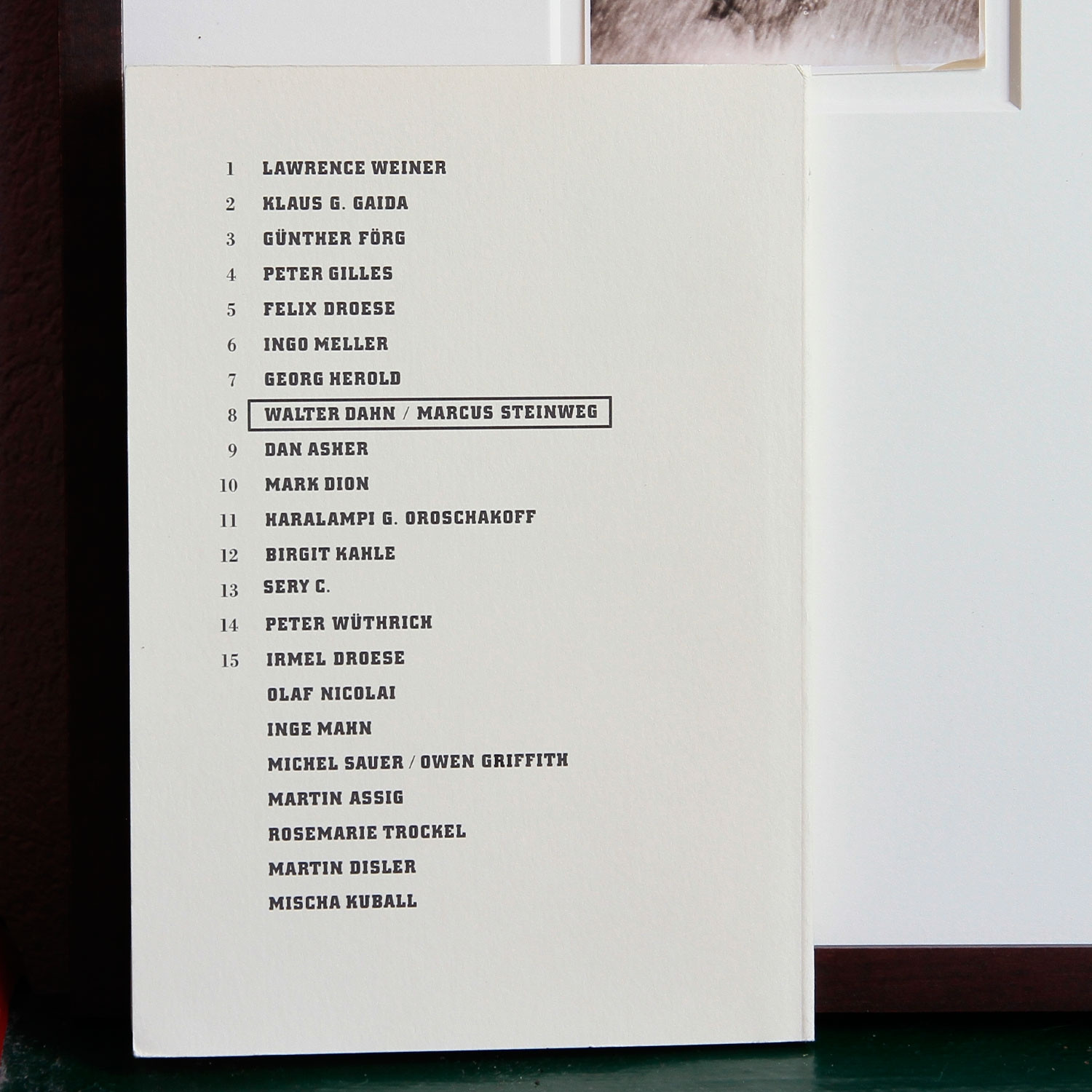Walter Dahn Édition Séparée Nr. 8 (Cowboy), 1997 Material Handgetontes s/w Foto, Unikat Herstellungsmethode 50 Unikate, rückseitig signiert und datiert Auflage 50 Maße 4,5 x 6,5 cm Spuren von der Tonung auf jedem Foto unterschiedlich; nicht nur unikatär getont, jedes Werk ist mit der Motorkamera von der Kinoleinwand (Marlboro-Reklame) abfotografiert worden Details zum Rahmen Handgefertigter schwarz (lüpertz) gewachster Natur-Ahornholzrahmen, Außenmaße ca. 25,6 x 31,6 cm. Inkl. Passepartout und inkl. rückseitiger Hängeleiste, staubdicht verschlossen. Die neue Art, Kunst zu kaufen Handverlesene, exklusive Editionen Limitierte, signierte Auflagen Top-KünstlerInnen und Rising Stars Schnell registrieren, um Preis und Verfügbarkeit zu sehen. Jetzt kostenlos Mitglied werden Bereits Mitglied? Über die Edition Wer bist du? Ich kann dich nicht erkennen. Aber eins weiß ich, du hast eine Passion! Dich zieht es in die unendliche Weite, ins Nirgendwo. Dein Pferd ist schnell und trägt dich überallhin. Die Prärie macht dir keine Angst, sie ist dein zu Hause. Du trägst einen Westernhut und Chaps. Dein Beruf ist Cowboy. Walter Dahns „Édition Séparée Nr. 8” ist ein Handkoloriertes Schwarz-Weiß-Foto eines Porträts von einem Reiter auf seinem Pferd. Die Darstellung ist unscharf, es wirkt als läge ein Schleier über dem Bild. Das Foto gibt Rätsel auf. Zu erkennen ist die Person nicht. Stattdessen werden wir als Betrachter auf unsere eigene Wahrnehmung zurückgeworfen. Aus dem Porträt eines Cowboys wird ein Bild das von Geschwindigkeit handelt. Über den Künstler Walter Dahn ist ein Maler, der in seinen Werken die Unmöglichkeit der Malerei thematisiert. Seit Jahrzehnten forscht Walter Dahn im Medium der Malerei, er tut dies nicht nur als Künstler, sondern auch als Professor der Freien Kunst an der Hochschule für Bildende Künste in Braunschweig. Walter Dahn beschränkt sich nicht, weder im Motiv seiner Malerei noch in den medialen Möglichkeiten. Die Malerei verbindet er mit der Fotografie, der Zeichnung, dem Objekt. Auch Video und Installation gehören zu seinem Repertoire. Sein Werk ist stets überraschend, weckt neue Impulse: „Ich versuche mich offen zu halten und so genau wie möglich zu sein, damit das Bild als lebendiges Wesen zu seinem Recht kommt.“ Dahn wurde 1954 in der Nähe von Krefeld geboren, er lebt und arbeitet in Köln. In den 1970er Jahren studierte Dahn als Meisterschüler von Joseph Beuys an der Düsseldorfer Kunstakademie. Ende der 1970er Jahre provozierte Dahn und seine Künstlerkollegen der „Mühlheimer Freiheit“ mit schrägen, unkonventionellen, expressiven Bildideen. Es war ein Affront gegen die etablierte Kunst und das Bildungsbürgertum. So gehörte Dahn in 1980er Jahren zu den Vertretern der „Neuen Wilden“, der letzten großen Kunstbewegung des 20. Jahrhunderts. Walter Dahn wird von der Galerie Sprüth Magers in Berlin, London und Los Angeles vertreten. Er ist nicht nur als Maler sondern auch als Musiker bekannt. Ausstellungen (Auswahl) 2019: Walter Dahn. As Life Travels On, Kestnergesellschaft, Hannover, Hannover 2018: Die Erfindung der Neuen Wilden, Ludwig Forum für Internationale Kunst, Aachen 2017: Walter Dahn. Fokus Papier, Kunstmuseum Basel, Basel 2016: Walter Dahn. Moving Forward in reverse. Malerei auf Papier 1972-2015. Galerie Philip Rosen, Köln 2015: Walter Dahn 1980-83 / 2014:2 Räume, Galerie Sprüth Magers, Berlin Lesenswerte Artikel / Links Diesjährige Ausstellung von Walter Dahn, 2019 in der Kestnergesellschaft Hannover Walter Dahn bei Galerie Sprüth Magers, Berlin Interview mit Walter Dahn beim Kölner Stadtanzeiger Mehr Kunst entdecken Markus Oehlen Old Venlo, 2002 Jack Pierson YELLOW ROAD, 2018 Michael Sailstorfer P 99, 2016 Jacques Schumacher Selbstbildnis mit Stielaugen, 2013