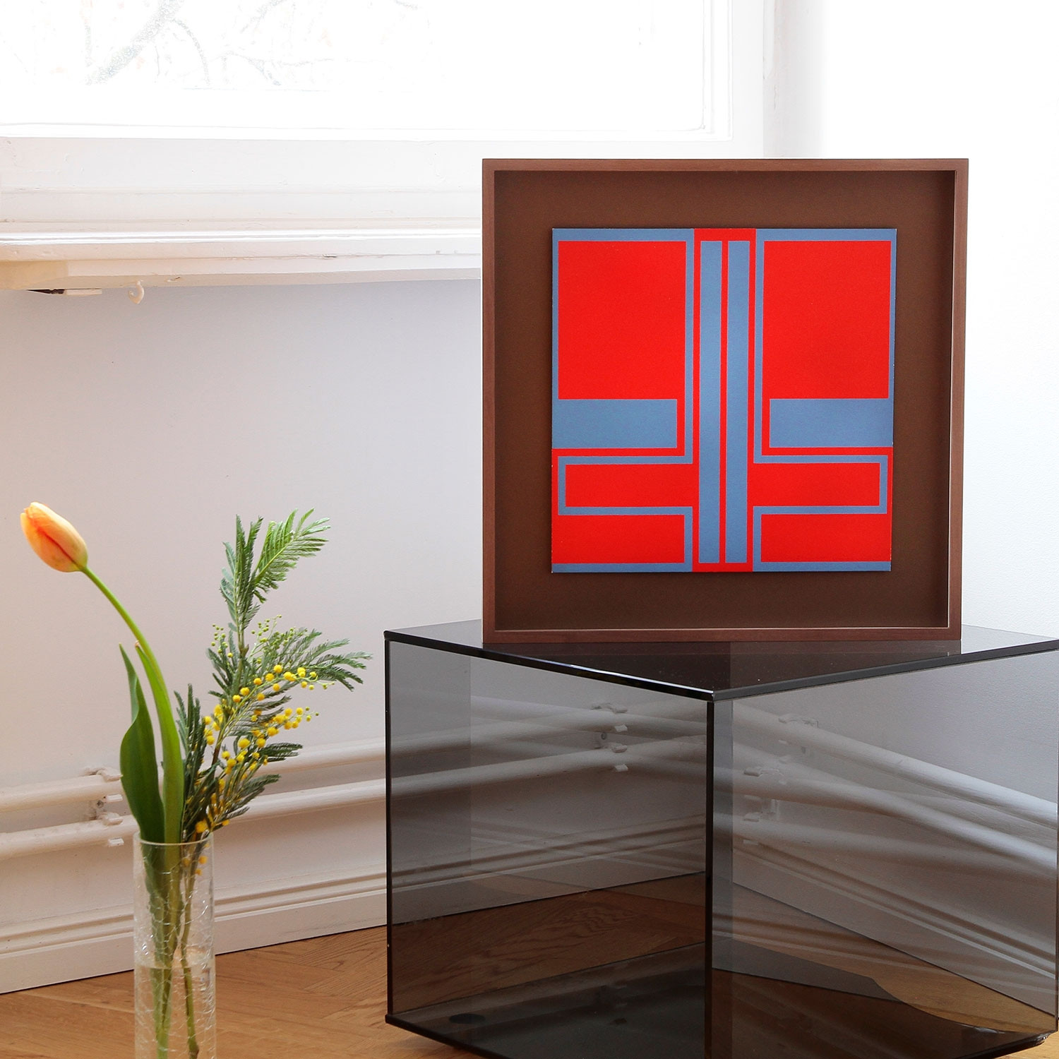 Willy Müller-Brittnau Construction, 1966/1977 Material Siebdruck auf Karton Herstellungsmethode Auf der Vorderseite signiert Auflage 230 Maße 28 x 28 cm Details zum Rahmen Handgefertigter Nussbaum-Holzrahmen, mit 8mm Distanzleiste auf braunem Farbpapier, Außenmaße ca. 39,2 x 39,2 cm, inkl. Normalglas und rückseitiger Hängeleiste, staubdicht verschlossen. Die neue Art, Kunst zu kaufen Handverlesene, exklusive Editionen Limitierte, signierte Auflagen Top-KünstlerInnen und Rising Stars Schnell registrieren, um Preis und Verfügbarkeit zu sehen. Jetzt kostenlos Mitglied werden Bereits Mitglied? Anfrage senden Über dieEdition „Es gibt wohl inmitten der Langeweile wenig Langweiligeres als die krampfhafte Bemühung ,fortschrittlicher‘ Kreise um den verharmlosten und salonfähig zurechtgestutzten Avantgardismus. Neben den Ahnungslosen rasen die Ewig-Verspäteten von Vernissage zu Konzert und bedienen sich aller Hilfsmittel zur Beseitigung der Verdauungsbeschwerden beim vorsichtigen Genießen der ‚modernen‘ Kunst“ ‒ so beginnt das 1958 von 30 Künstlern und Intellektuellen unterschriebene „Manifest gegen den Avantgardismus“. Treibende Kraft dahinter ist der aus Ungarn stammende Basler Kunsthändler, Sammler und Psychoanalytiker Carlo Laszlo. Es ist bezeichnend, dass es auch Laszlo ist, der nur zwei Jahre später und in Fortsetzung dann noch einmal 1965 und 1977 ein Sammelportfolio ediert, das unter dem Titel „La Lune en Rodage“ insgesamt 180 Kunstwerke führender Künstler der europäischen Avantgarde zwischen den 1920er und den 1970er Jahren präsentiert. Dazu gehört auch das visuell eindrucksvolle Werk des Schweizer Künstlers Willy Müller-Brittnau, das an die Aufbruchstimmung und den Willen zur Erneuerung jener Jahrzehnte erinnert. Über den Künstler In den Werken, die Willy (später Willi) Müller-Brittnau (1938‒2003) in der von ihm als „konkret“ bezeichneten Phase der 1960er und 1970er Jahre schuf, erreichte der Schweizer Künstler die größtmögliche Illusion von Plastizität. Mit diesen Arbeiten erregte er auch international Aufsehen. Inspiriert von der Pariser und New Yorker Kunstszene sowie von Künstlern wie Matisse, Arp und Kelly, hatte er zunächst mit Collagen begonnen, bevor er die Autonomie der Farben in den Vordergrund rückte und kurz darauf die geometrischen Formen für sich entdeckte. Ob in dem mit der leuchtenden Kraft von Rot und Blau gestalteten, auf Symmetrien beruhenden Siebdruck „Construction”, ob in seinen Werkgruppen mit Quadraten, ja selbst in den Arbeiten, in denen die Farbe durch zentral positionierte weiße Flächen an den Rand gedrängt wird: Müller-Brittnaus Farbfelder scheinen zu vibrieren, sie entwickeln eine energetische Kraft. So erscheint es nur konsequent, dass den Künstler die Wirkung und gegenseitige Steigerung der Farbflächen durch all die Jahrzehnte seines Schaffens hindurch begleiteten. Ausstellungen (Auswahl) Bereits im Jahr 1966 nahm Willy Müller-Brittnau an der Ausstellung „Konkrete Schweizer Kunst“ im Kunsthaus Luzern teil. 1986 war er bei der XLII. Biennale in Venedig zu Gast. Zahlreich sind zudem seine Beiträge im Bereich „Kunst am Bau“, etwa Arbeiten für das SBG-Devisenzentrum in Zürich (1983/84) und den Hauptbahnhof Winterthur (1986). Lesenswerte Artikel / Links Webseite mit Kontakt zur Witwe und Nachlassverwalterin Doris Müller Artikel zu Willy Müller-Brittnau im Lexikon zur Kunst in der Schweiz Künstlerseite von Willy Müller-Brittnau im Museum Haus Konstruktiv, Zürich Mehr Kunst entdecken Lars-Gunnar Nordström Composition, 1987 Verena Löwensberg Composition, 1966 Tal R Deaf Institute, 2014