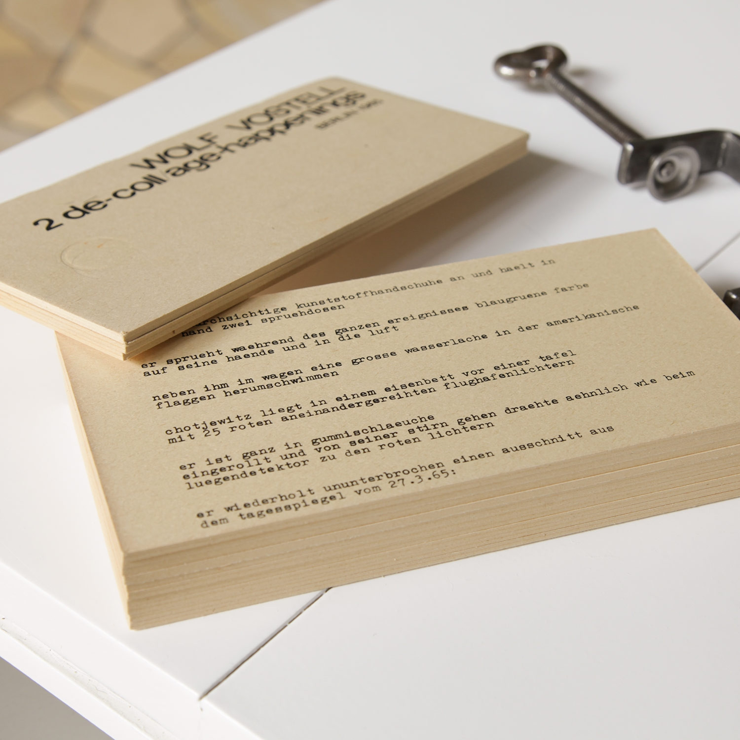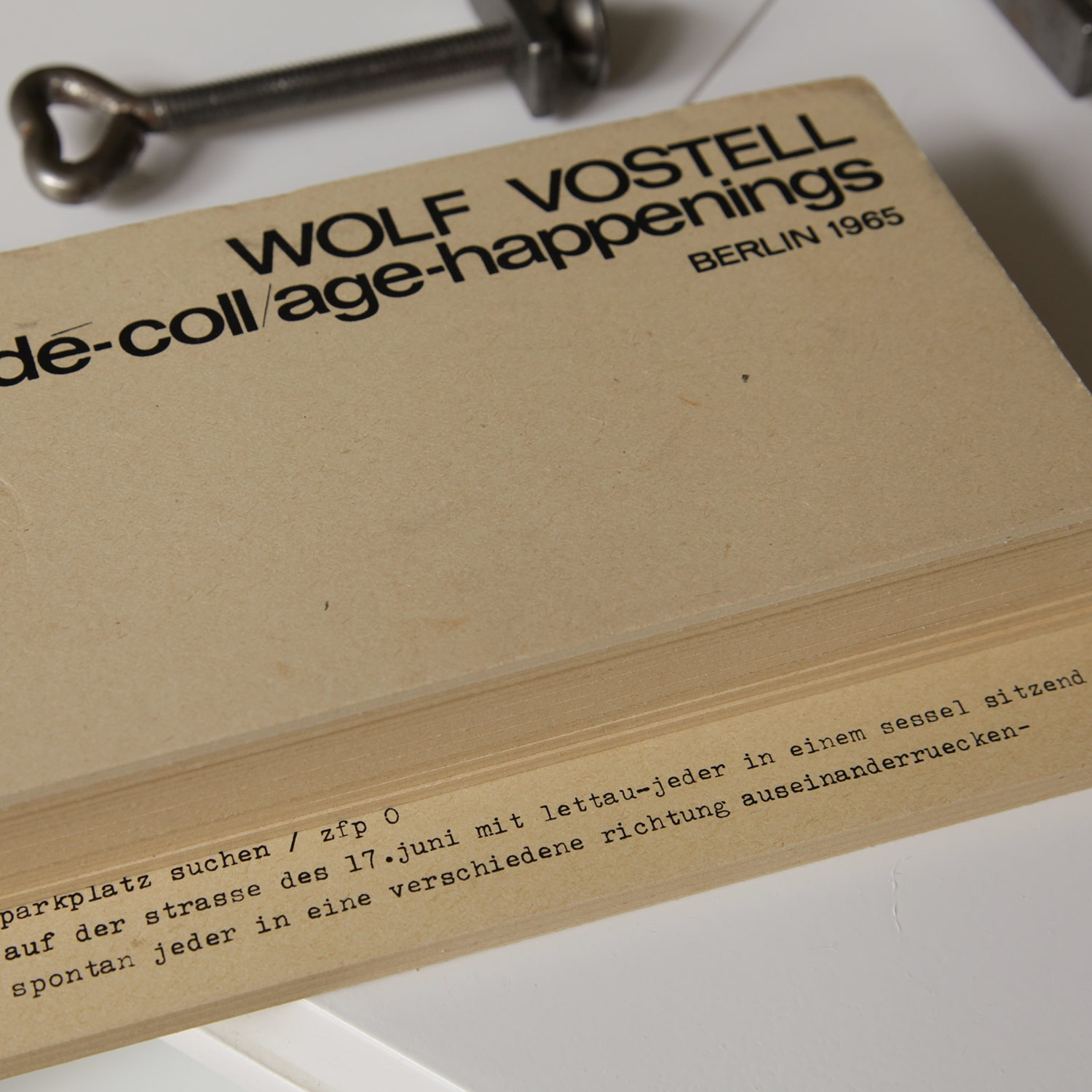 Wolf Vostell Klammerbuch, 1966 Material Siebdruck auf Karton, Klammern, 14 kartonierte Texttafeln und Schraubzwinge Herstellungsmethode Das Klammerbuch besteht aus 14 kartonierten Texttafeln und wird durch eine Schraubzwinge zusammengehalten. Die Texte geben die Konzeptionen der beiden Happenings wieder und enthalten die Protokolle des Geschehenen. Auflage 150 Maße ca. 24 x 12 x 18 cm Auflage 150 signiert Die neue Art, Kunst zu kaufen Handverlesene, exklusive Editionen Limitierte, signierte Auflagen Top-KünstlerInnen und Rising Stars Schnell registrieren, um Preis und Verfügbarkeit zu sehen. Jetzt kostenlos Mitglied werden Bereits Mitglied? In den Warenkorb Über den Künstler und die Edition Er gilt als Mitbegründer der Fluxus-Bewegung, die gattungsübergreifend arbeitete, weder die Kunst vom Leben trennte noch das Kunstobjekt in den Mittelpunkt stellte: der Künstler Wolf Vostell, 1932 in Leverkusen geboren, gestorben 1998 in seiner Wahlheimat Berlin. Er wird neben Nam June Paik zudem als Pionier der TV- und Videokunst genannt. Und auch die ersten Happenings in Europa und Deutschland gehen auf ihn zurück. So verwundert es kaum, dass er zu den ersten zwei Künstlern gehörte, mit dem der Berliner Galerist und Kurator René Block startete, als er 1966 die Edition Block ins Leben rief. Block, selbst ein Vorreiter, gehörte zu den frühesten Herausgebern von Multiples und Druckgrafiken zeitgenössischer Künstlerinnen und Künstler – viele davon sind inzwischen in den Kunstgeschichtskanon eingegangen. Von ihrer Zusammenarbeit erzählt Wolf Vostells „Klammerbuch“ von 1966, 14 kartonierte Tafeln, durch eine Schraubzwinge zusammengehalten, welche die Texte zu zwei Berliner Happenings des Künstlers enthalten und protokollieren, was dort passierte. Näher dran am damaligen avantgardistischen Kunstgeschehen geht also kaum! Das Museum of Modern Art (MoMA) in New York verfügt über eine umfangreiche Sammlung von Arbeiten Wolf Vostells. Weitere Werke befinden sich u.a. im Centre Pompidou Paris, Museo Reina Sofia in Madrid, Museum Ludwig in Köln, Zentrum für Kunst und Medientechnologie (ZKM) in Karlsruhe und der Neuen Nationalgalerie in Berlin. Ausstellungen (Auswahl) Die Wanderausstellung „Boris Lurie and / und Wolf Vostell – Art after the Shoah / Kunst nach der Shoah“ macht nach dem Kunstmuseum Den Haag, dem Kunsthaus Dahlem in Berlin und dem Ludwig Museum Koblenz im Ludwig Múzeum Budapest Station (30.03.-13.08.2023) Werke von Wolf Vostell sind aktuell in der Ausstellung „Da un atomo all’altro“ in der Fondazione MUDIMA in Mailand zu sehen Virtuelle Galerie aus der Sammlung The Wolf Vostell Estate Lesenswerte Artikel / Links Webseite von The Wolf Vostell Estate [Homepage des Museo Vostell Malpartida](: https://www.vostell.de/museum-vostell-malpartida/) Video-Channel über Wolf Vostell Mehr Kunst entdecken Marcel Dzama Where All Harmonies Are Tuned, 2011 Antoni Tàpies Clau del Foc XIII, 1973 Christo & Jeanne-Claude Package on a Hunt, 1988